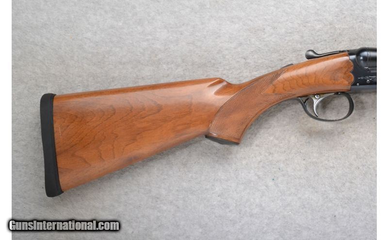 Description: This Ithaca Model 100 is a Side by Side shotgun in 12 Ga. It has 26 inch barrels with extractor and a solid rib. A red high visibility front sight and a brass bead middle sight. With a 2 3/4 inch chamber it has fixed Imp. Cyl. and Mod. chokes. The butt stock is a checkered grip walnut pistol grip with a black cap. The forearm is a checkered grip walnut. The receiver is lightly engraved. By SKB. 12 Gauge SOLD Chambers: 2 3/4 inch. Metal Condition: Excellent. Wood Condition: Good. Some light handling marks and a couple of micro cracks behind the receiver. Bore Condition: Bright and shiny. Barrels: 26 inch barrels with extractor and a solid rib. Triggers: Single with barrel selection button. Stock Dimensions: LOP 13 inches. Fore End: Checkered grip walnut. Butt Pad: Black rubber pad. Weight: 6 lb. 10 oz. Sights: Red high visibility front. Brass middle bead. Chokes: Fixed Imp. Cyl. and Mod. Item Location: Richfield, WI |