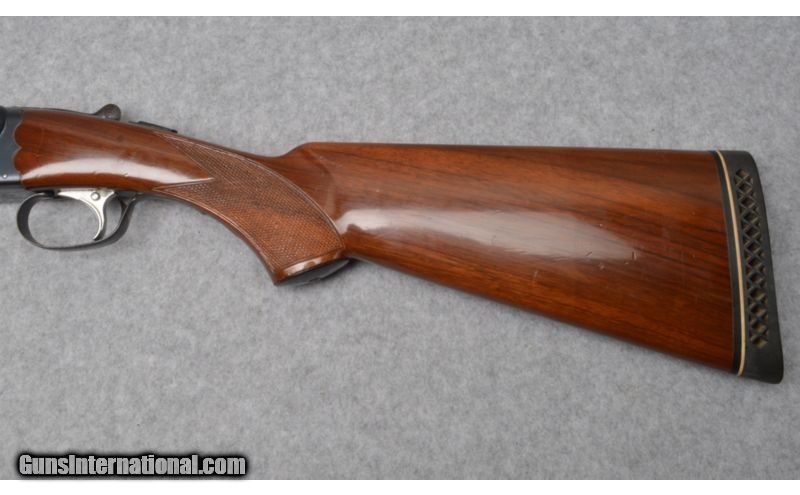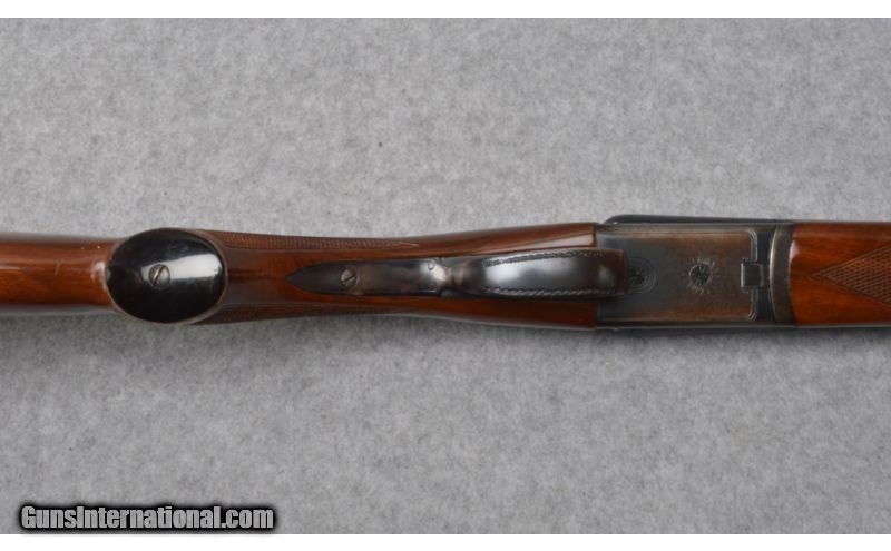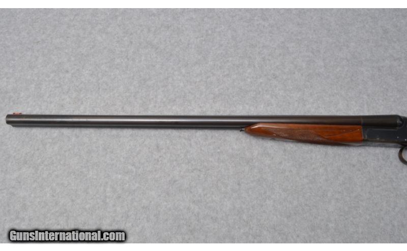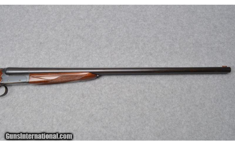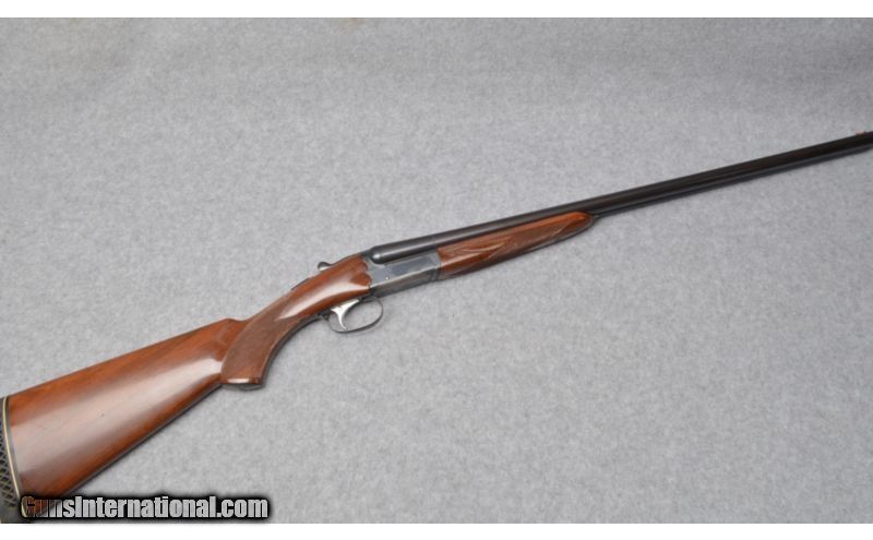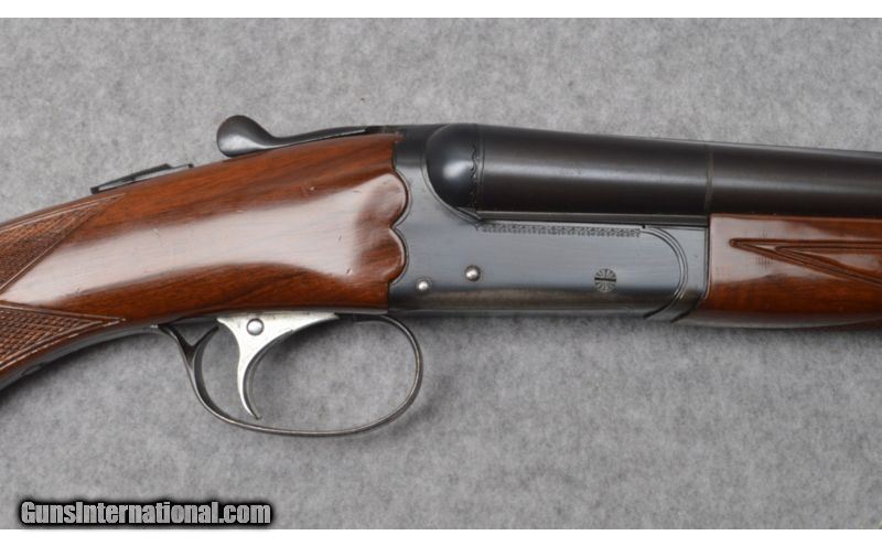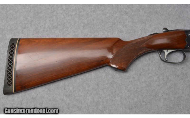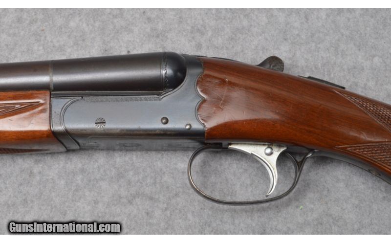 Description: This is an Ithaca side by side shotgun in 20 Ga. Overall condition is very good. The raised rib barrels retain the majority of the blue with a few spots that have been touched up. On the bottom of the receiver there is some blue loss with a fine patina. Looks like where the gun was carried in the field and wore the finish away. The stock is in good shape with a few handling and use marks. The barrel is marked made by SKB for Ithaca. SOLD Caliber Info: 20 Ga. Chambers: 2-3/4" and 3" with extractors. Metal Condition: Very good. Wood Condition: Very good. Bore Condition: Bright and shiny. Barrels: 25" blue with raised rib. Triggers: Serrated single trigger. Stock: Walnut with checkered pistol grip and black plastic grip cap. Stock Dimensions: 15" length of pull. Fore End: Matching checkered walnut splinter fore end. Butt Pad: Black ventelated type recoil pad. Weight: 6 lb 1 oz. Sights: Orange rod on the raised rib. Chokes: Fixed improved cylinder x improved cylinder. Item Location: West Chester, OH |