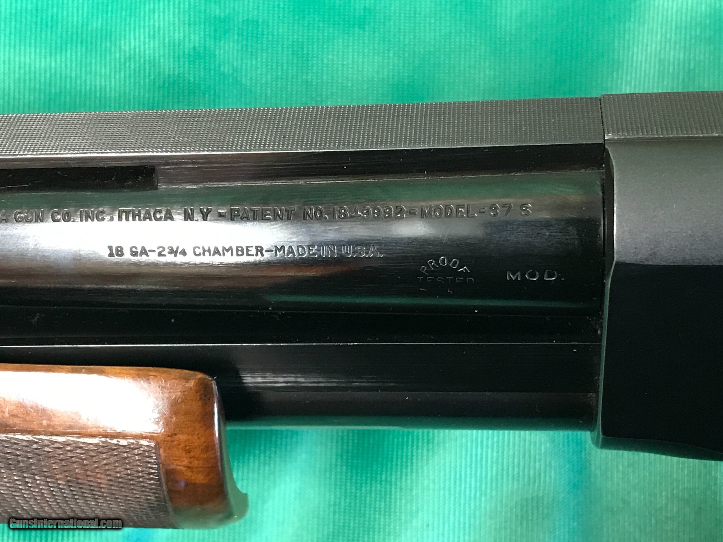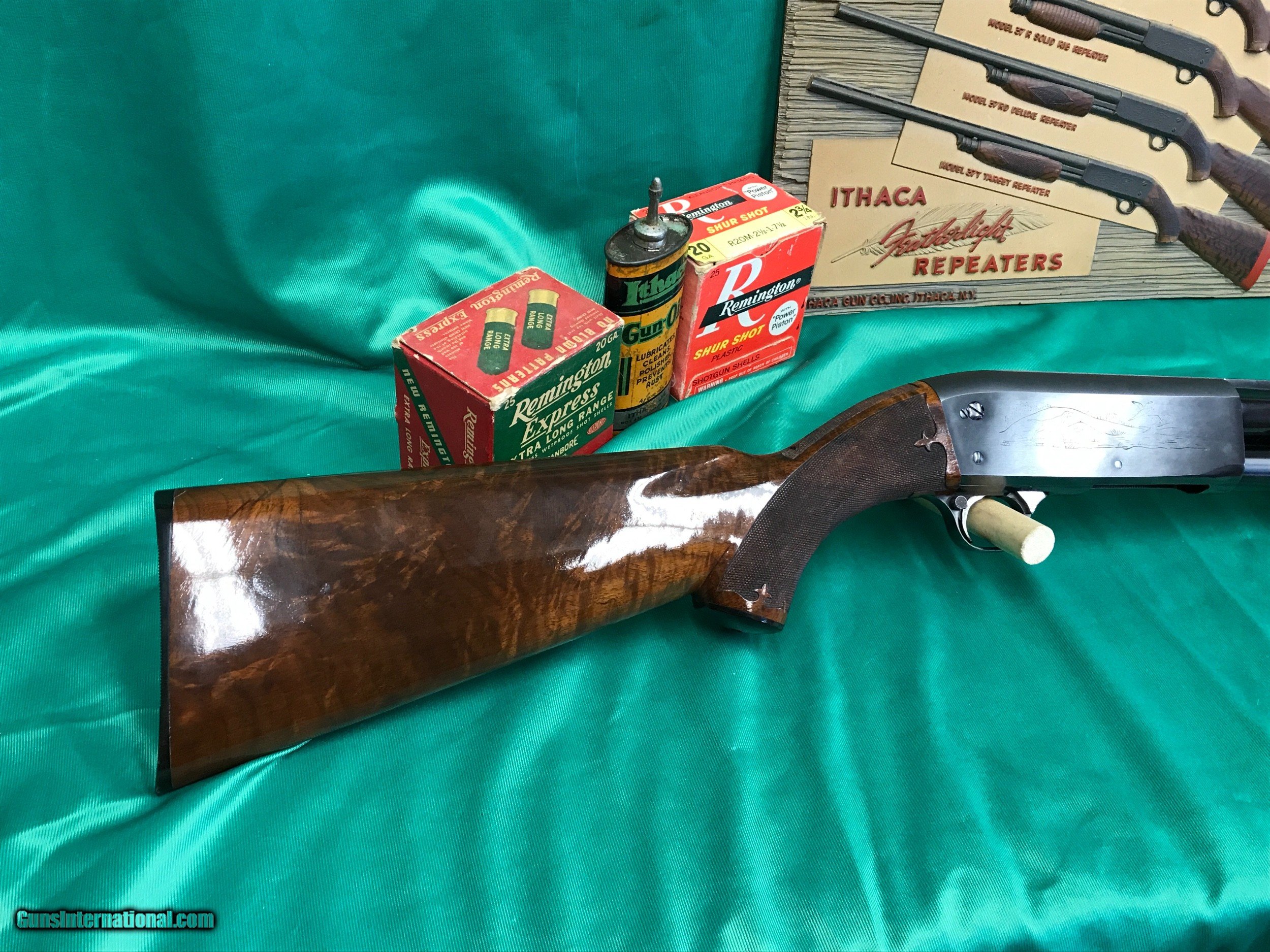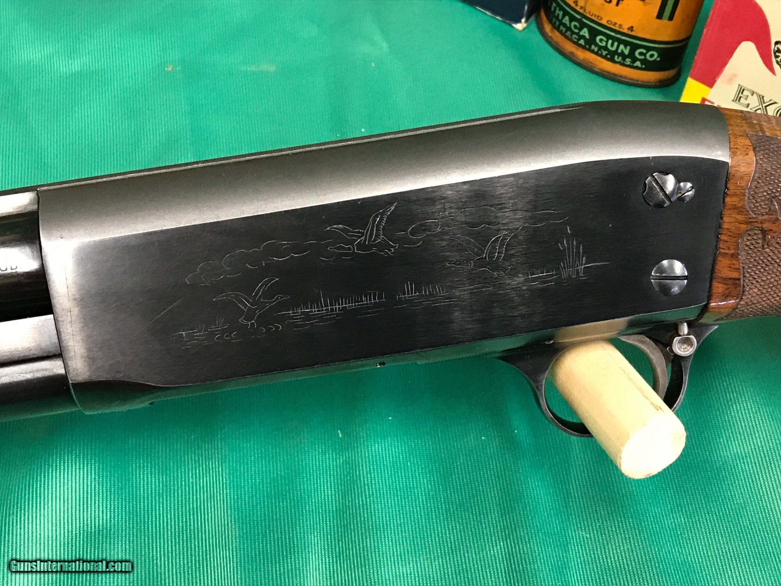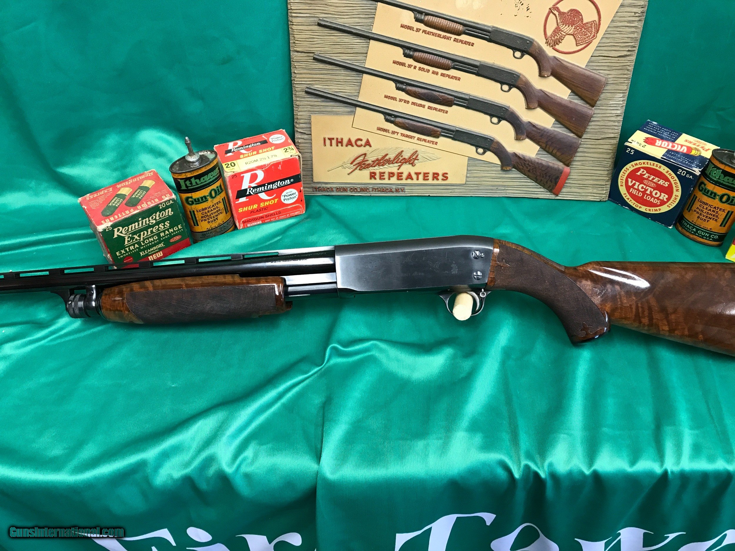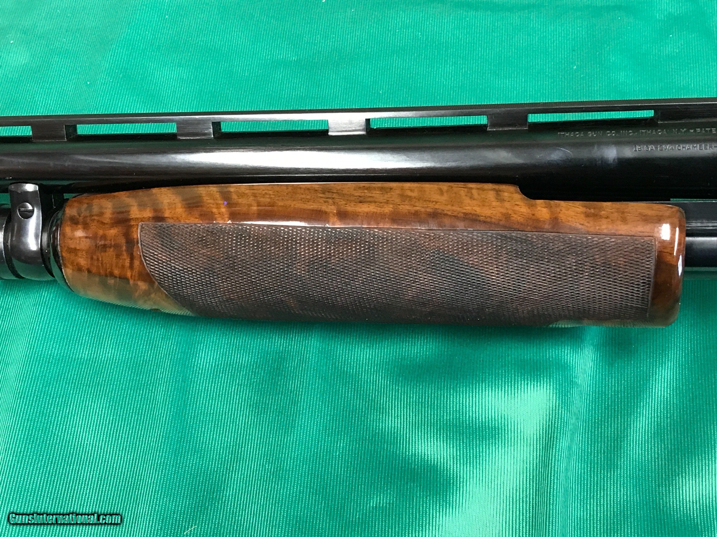 Description: We have a beutiful 16 GA Model 37S that was built in 1949. The gun features a 28'' Modified barrel with an Ithaca Knick rib , jeweled bolt and shell carrier , Ithaca factory Fluer -de- lis wood , LOP is 14''. This gun was upgraded at the Ithaca Gun Factory in the 1950's. Kieth Houghtling checkered the wood. This gun was bought directly from the original owner who was a prominent Ithaca Gun collector who was from the Ithaca area. This is a very unique and very hard gun to buy in this condition . Any questions please call or e-mail 607-227-4088. Thank you, Brian Hunt. SOLD |