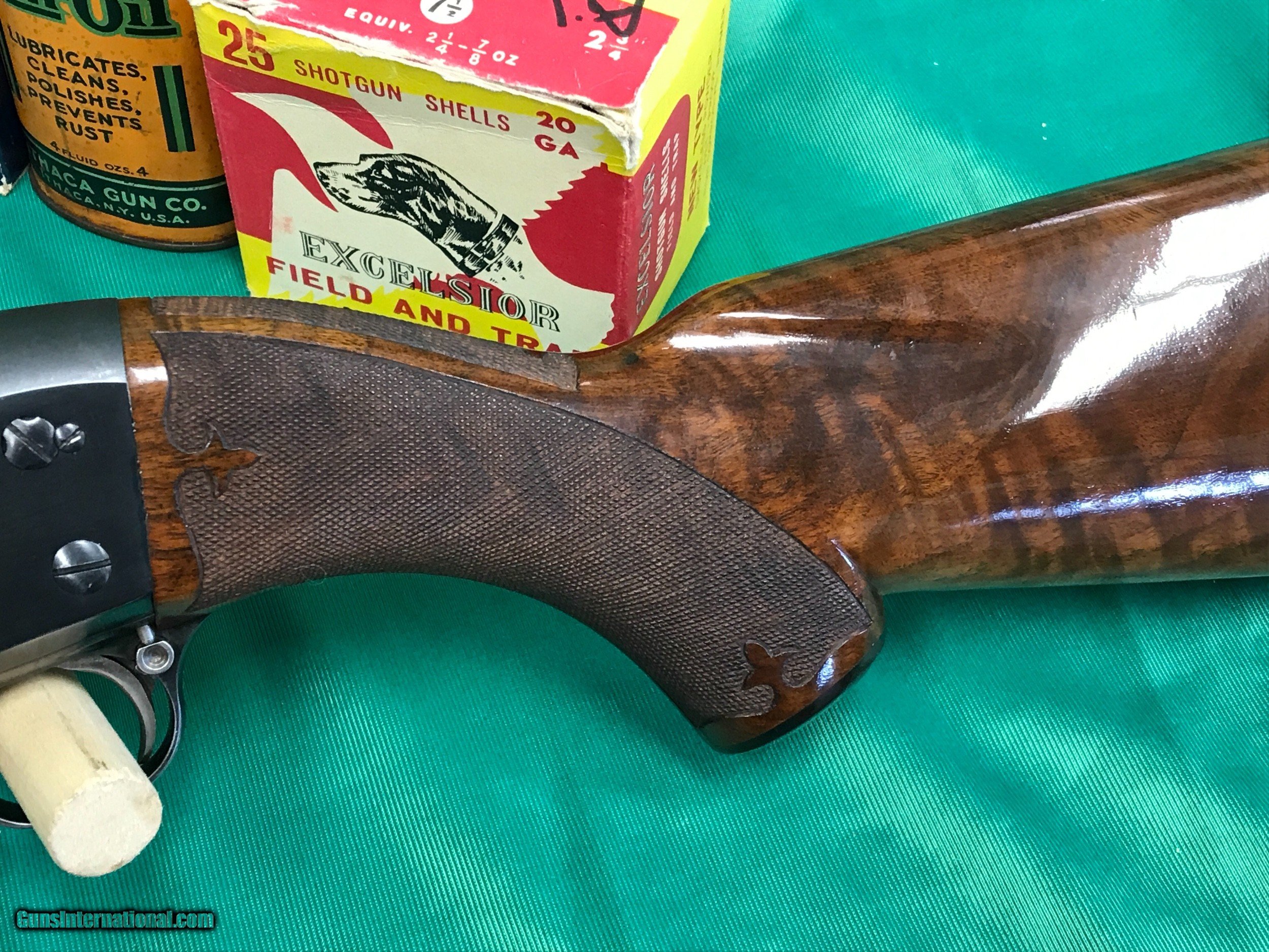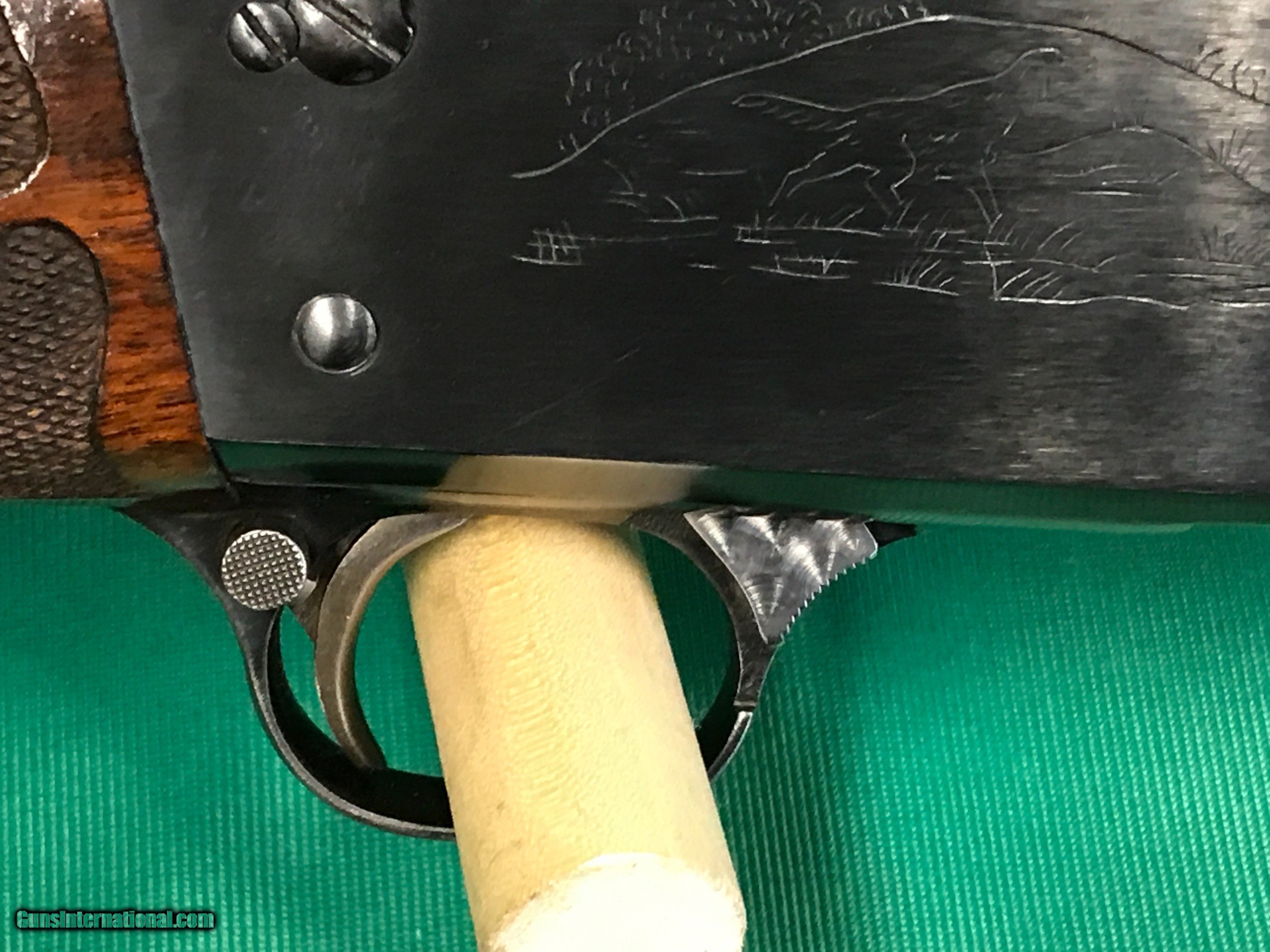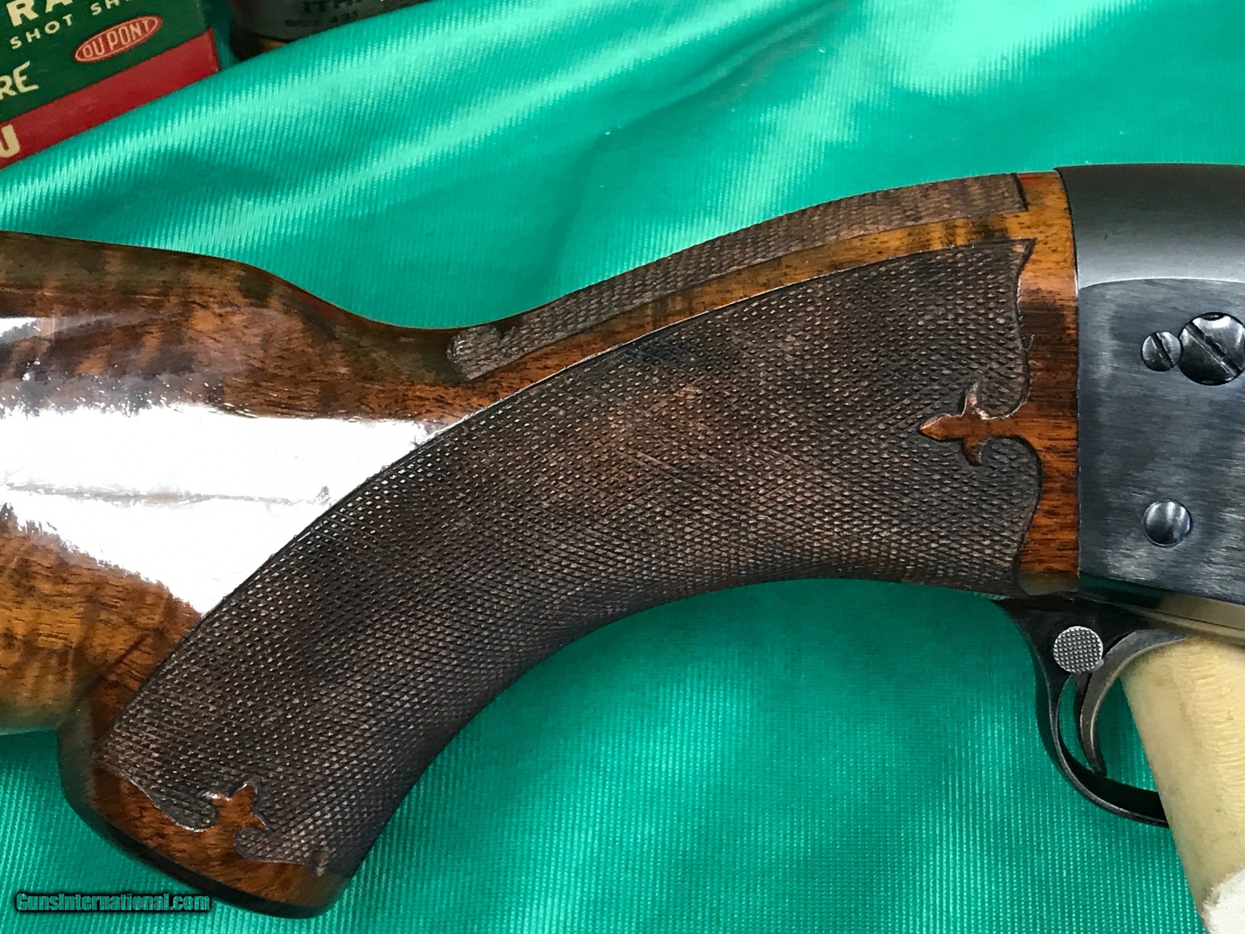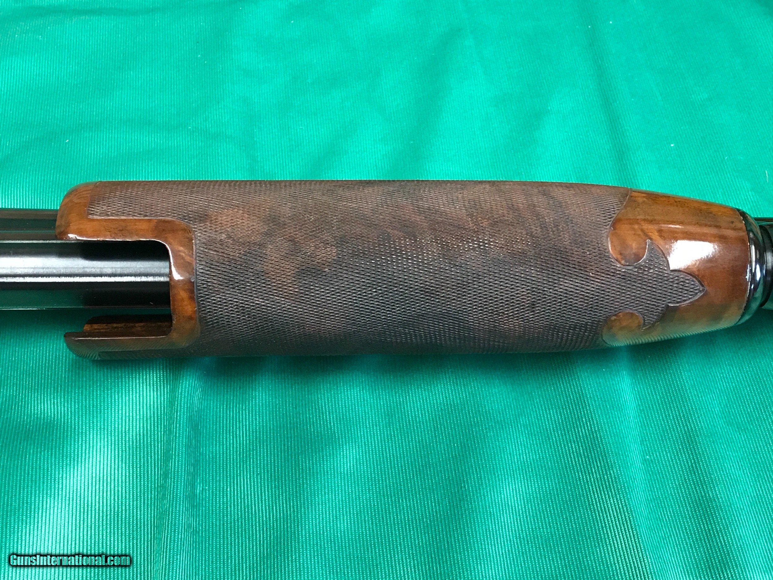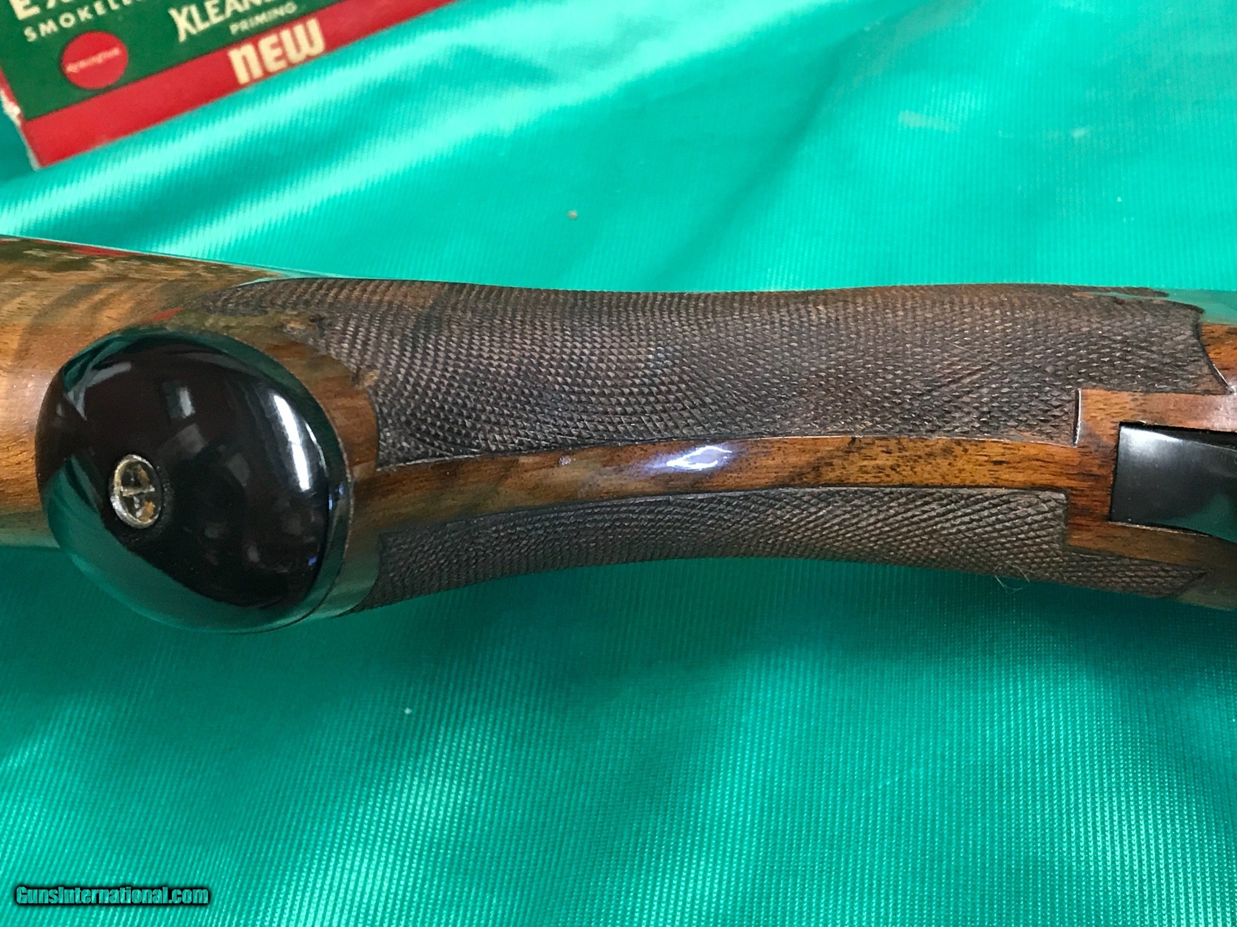 Description: We have a beutiful 16 GA Model 37S that was built in 1949. The gun features a 28'' Modified barrel with an Ithaca Knick rib , jeweled bolt and shell carrier , Ithaca factory Fluer -de- lis wood , LOP is 14''. This gun was upgraded at the Ithaca Gun Factory in the 1950's. Kieth Houghtling checkered the wood. This gun was bought directly from the original owner who was a prominent Ithaca Gun collector who was from the Ithaca area. This is a very unique and very hard gun to buy in this condition . Any questions please call or e-mail 607-227-4088. Thank you, Brian Hunt. SOLD |