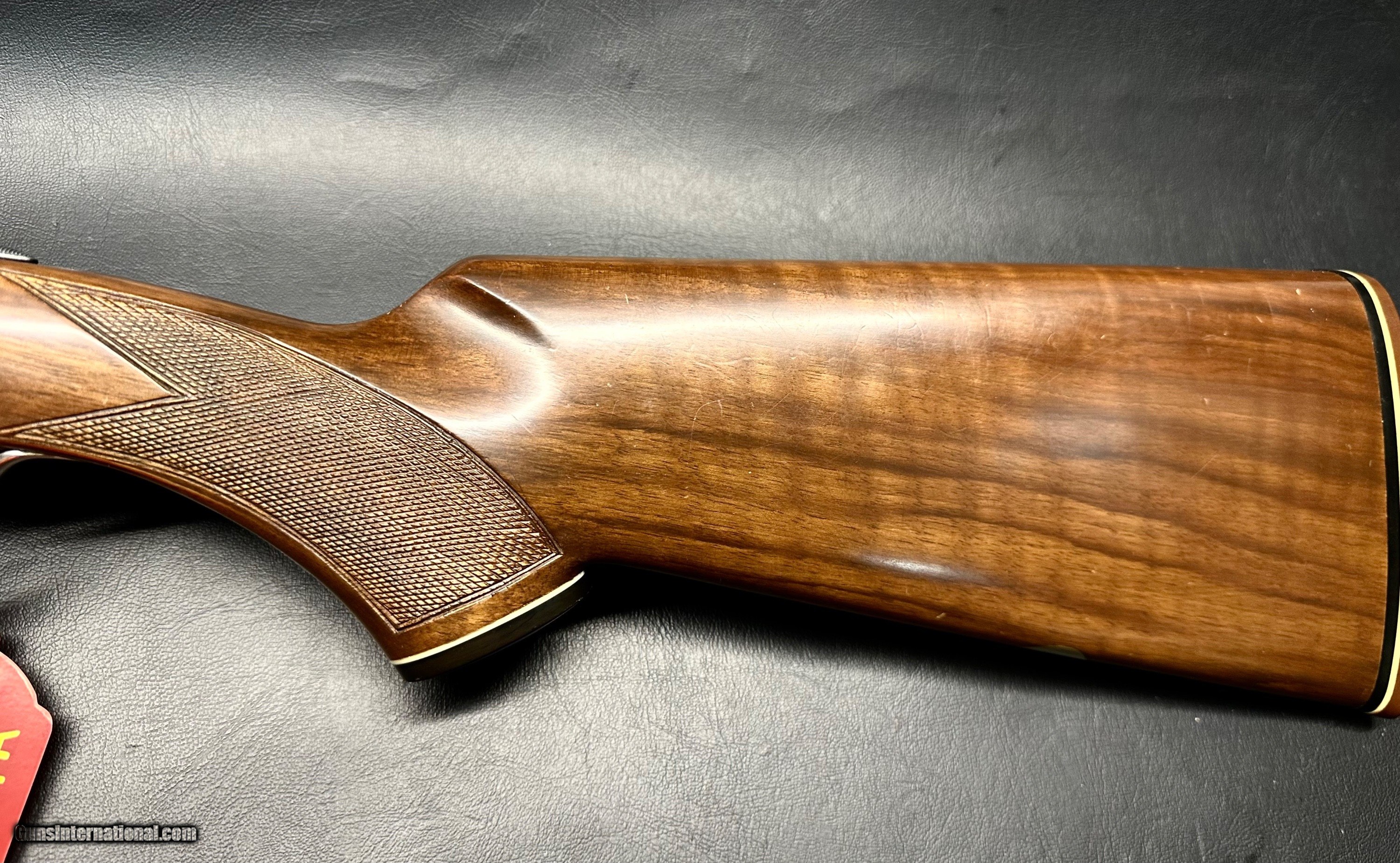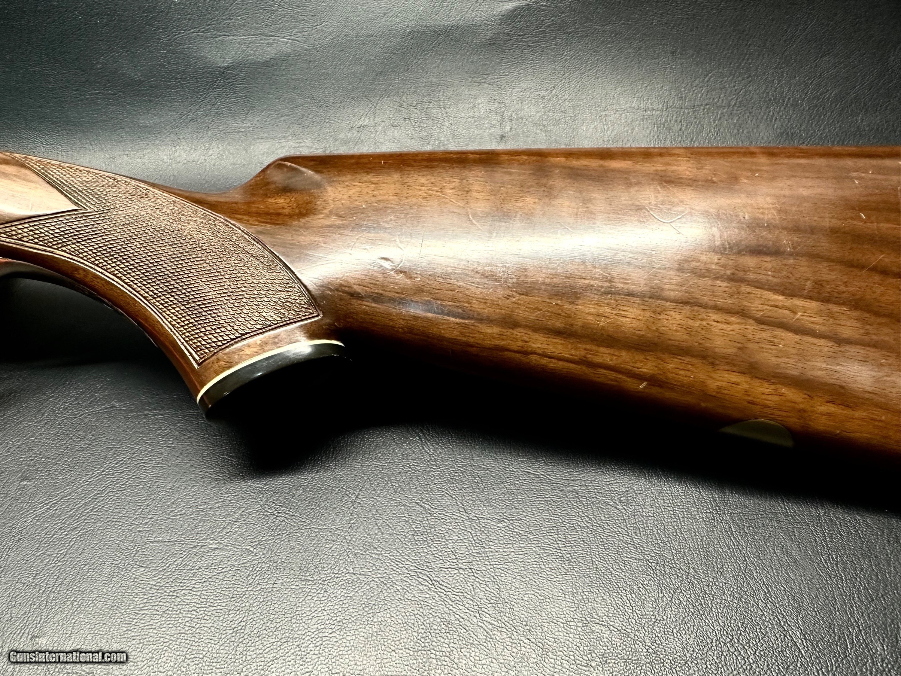 Description: Very nice Ithaca model 600 made for Ithaca by SKB THis shotgun is chambered in 20 ga with 3" Chambers. LOP is just under 14-1/4" Features include a single selective trigger and auto ejectors. Fairly straight grained stock with a light amount of figure in the butt stock. Nickle finish with gold plated trigger. Mirror bores barrels are marked Modified and Improved. No cracking in the stock. Some light handling marks appropriate for age. Vented Ribbed barrel. Front and Mid bead. Points nice. Flat 45.00 shipping No Credit Card Fees SOLD Shotgun Gauge: 20 Gauge Manufacturer: Ithaca / SKB Model: 600 Serial Number: S6611077 Barrel Length: 26 Condition: Very Good Metal Condition: Very Good Wood Condition: Very Good Bore Condition: Excellent Action: Break Open LOP: 14-1/4 Item Location: Buxton Maine |