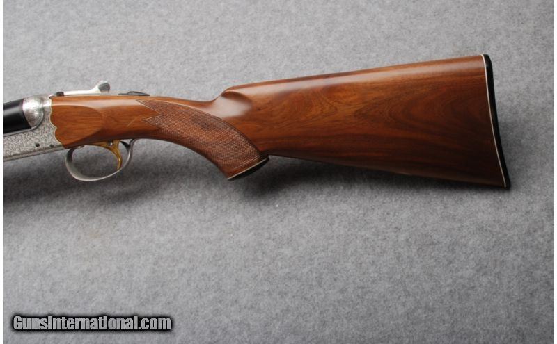Description: SOLD Caliber Info: 12 Gauge Chambers: 2 3/4 Metal Condition: Very good with a couple of light handling marks Wood Condition: Very good with handling wear throughout Bore Condition: Bright and shiny Barrels: 28 Stock: Checkered buttstock w/pistol grip Butt Pad: Checkered black plastic plate Weight: 7lb Sights: Front orange bead, mid metal bead Chokes: Fixed: Full, Mod Item Location: East Hartford, CT |