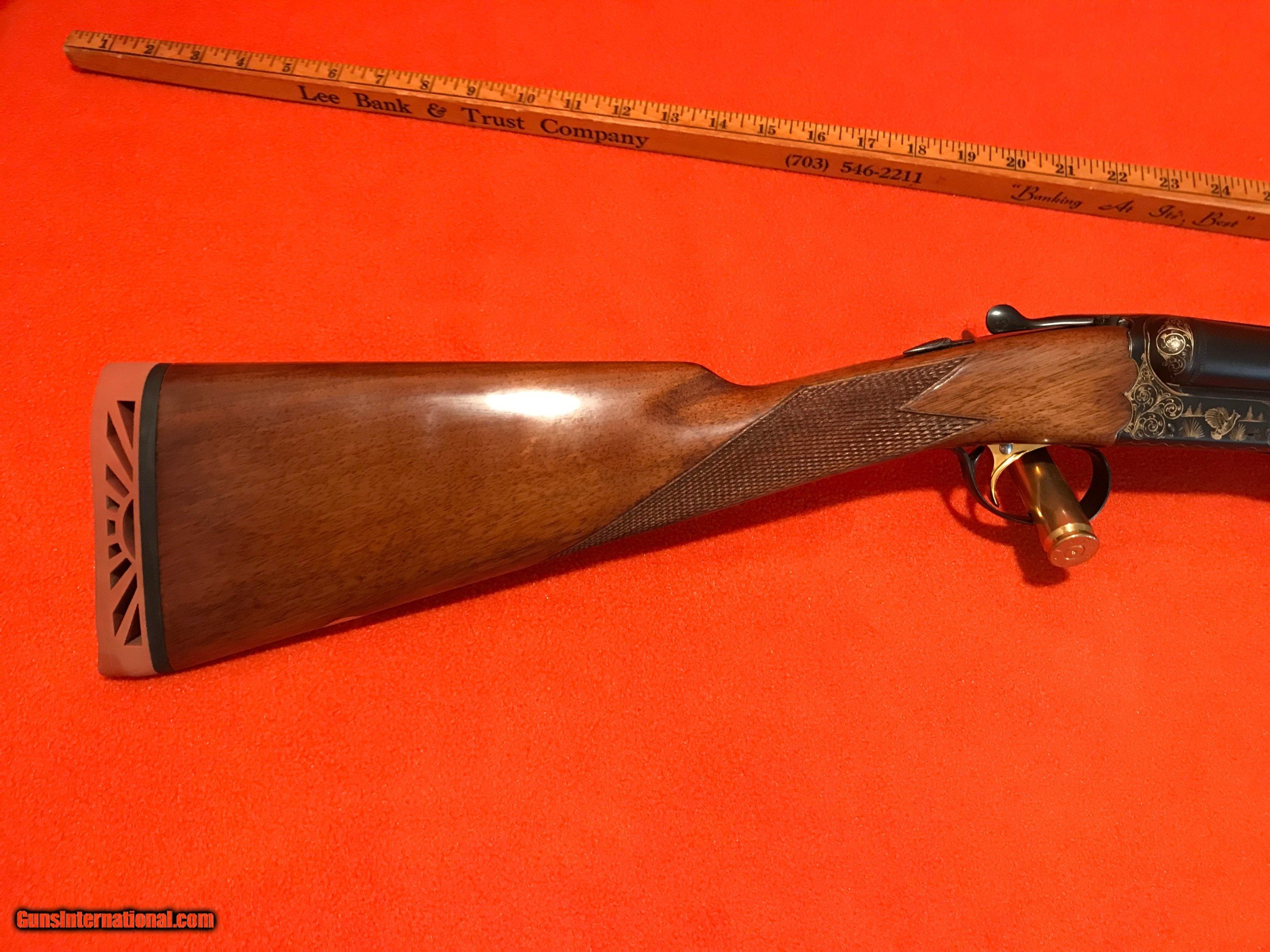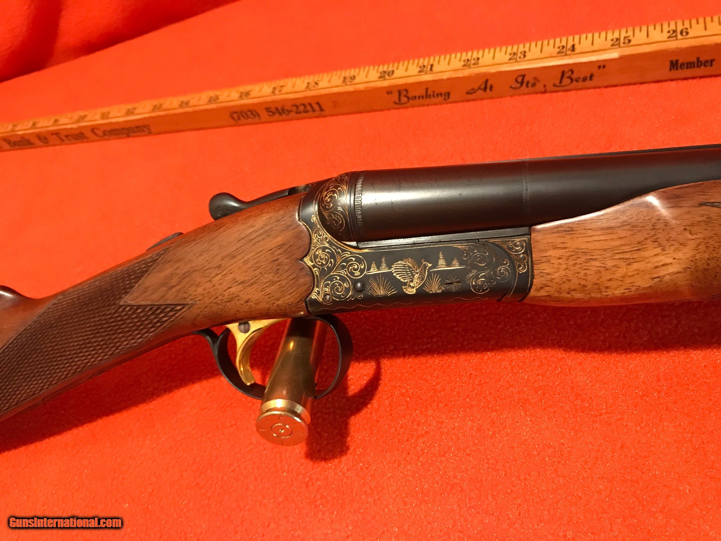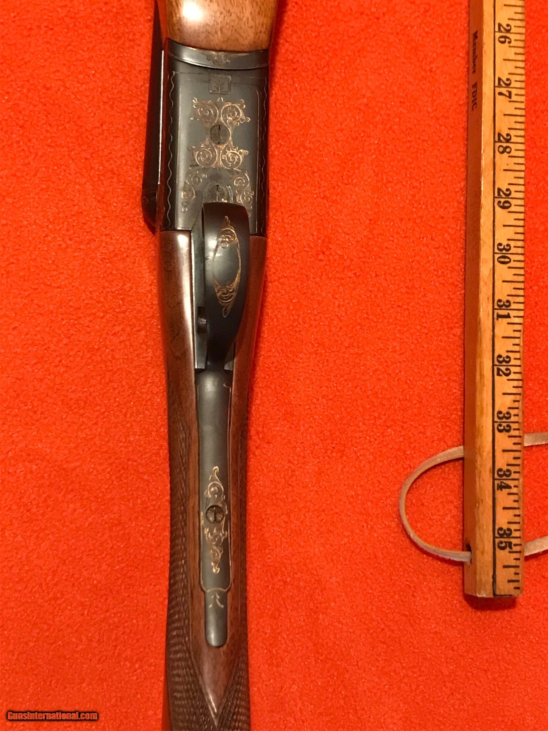 Description: This is a beautiful Ithaca 280 Gold Inlay Perfect Wood Beaver Tail Fore grip 28" Barrel Full / Mod 14" LOP SOLD Manufacturer: ITHACA Model: 280 Serial Number: 5281223 Ejectors: yes Condition: 98% Metal Condition: 98% Wood Condition: 100% Bore Condition: Bright Triggers: single Gauge Info: 12 Choke Left: Full Choke Right: Mod |
