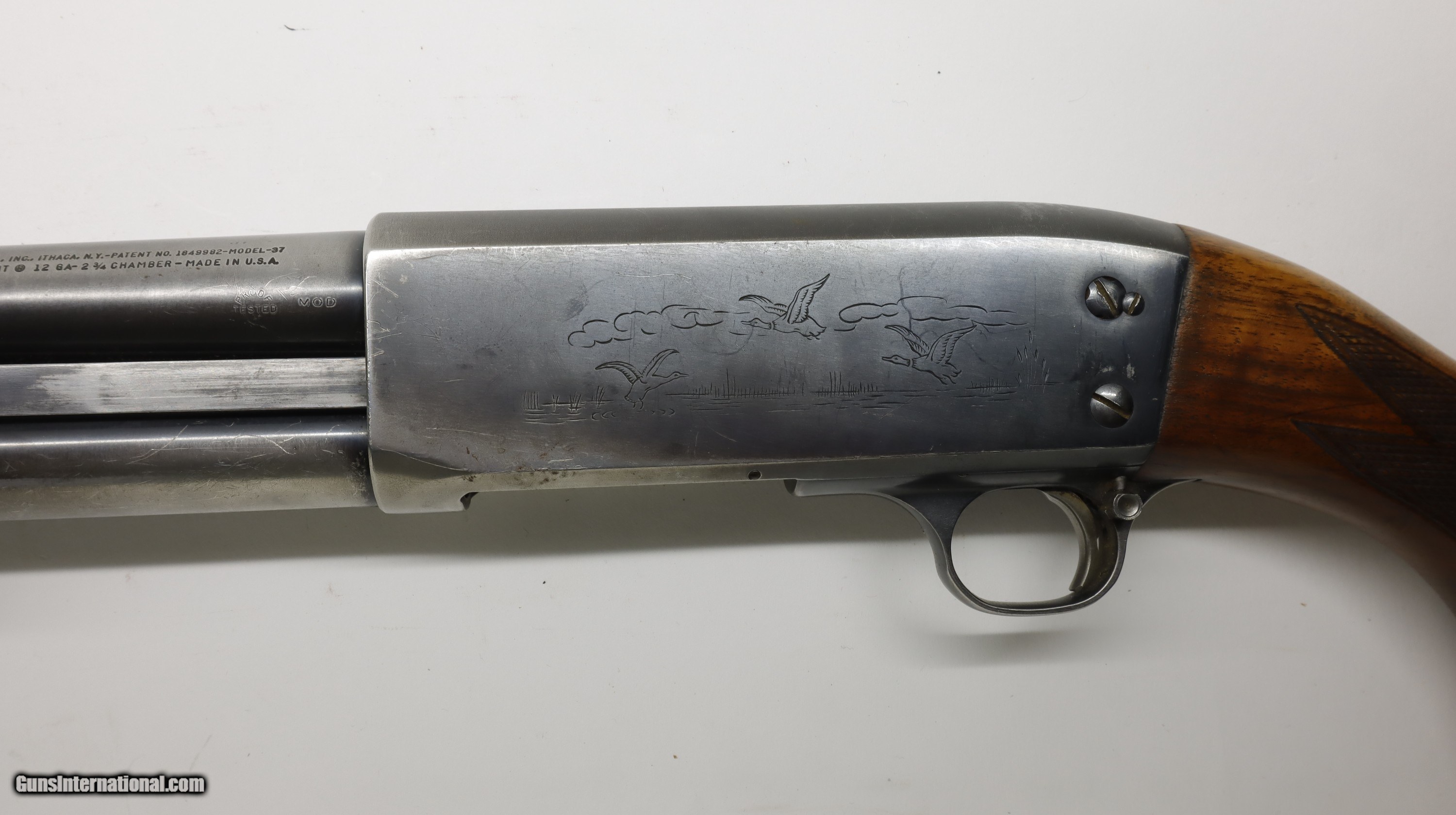 Description: Ithaca 37 Featherlight, 12ga, 28", 2.75" chamber, fixed MOD choke. SN is 4712xx. Made in 1952. Factory finish on both wood and metal, LOP is 13 3/4". Nice classic gun! We will trade for silver and gold. We accept personal check, any certified funds, Ven-mo or Z-elle. We can also take your credit card, +3%. Email me if you would like these pictures sent to you, they will come through bigger and better than on the listing page here. We do offer Layaway. Our standard terms are 25% down, 90 days. Initial deposit is not refundable. Email me with any questions. Please check your local laws to confirm it is legal to own in your state! Buyer pays $60 shipping and insurance in a brand new PLANO hard case to your FFL in the lower 48. AK, HI or PR is extra. I will ship to California, as long as it is legal, NO PROBLEM! All my guns come with a non-firing, 3 day unconditional return privilege, from the day UPS delivers to your dealer. Buyer pays shipping both ways if the gun comes back. Please make sure to make it to your FFL to inspect within the 3 days. I am a licensed FFL, and will include a copy of my FFL with the gun for your dealer’s records. I will ship to a C&R if the gun is eligible. I will ship to California, but you need to confirm the gun is legal where you are, California or other. WE BUY AND CONSIGN GUNS AND GUN COLLECTIONS! We will travel to pick up collections! I am always looking for good clean, old original Winchesters to buy, consign, or trade, especially Pre '64's model 70's and model 54's. WE ALSO TRADE FOR CLASSIC CARS AND TRUCKS! We also trade for gold and silver. SOLD Shotgun Gauge: 12 Gauge Manufacturer: Ithaca Model: 37 Barrel Length: 28 Condition: Used |