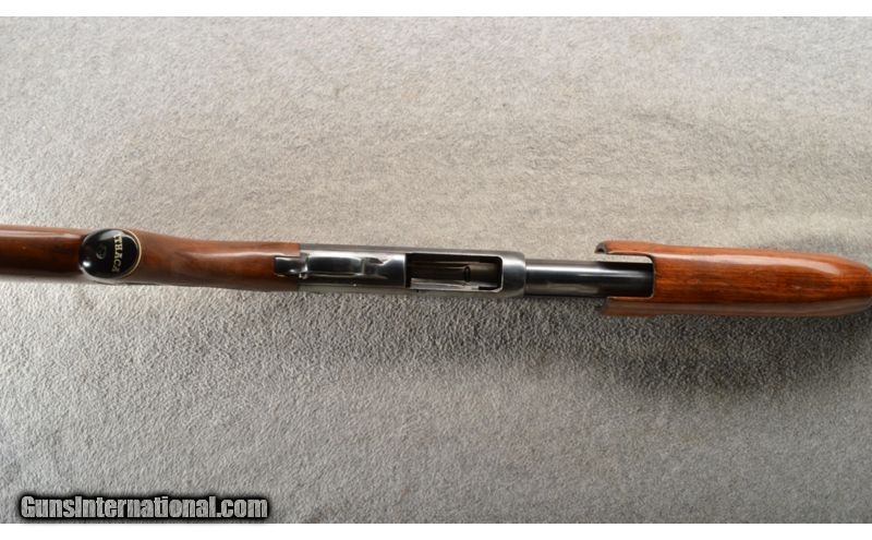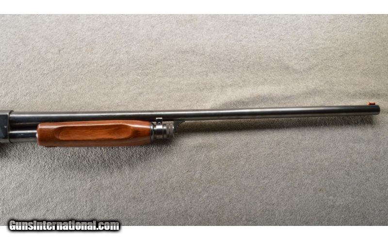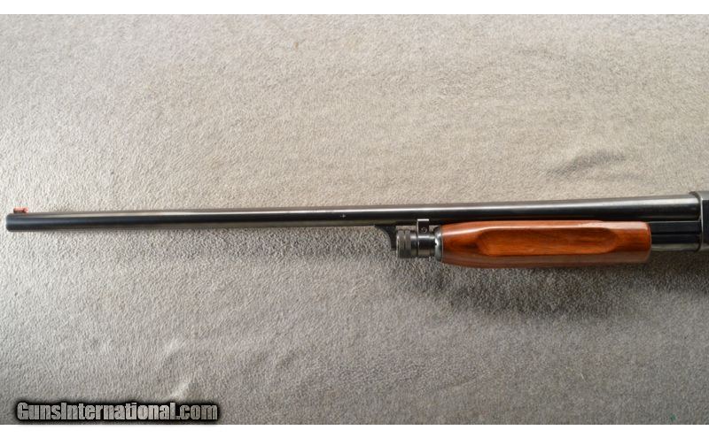 Description: This is a very nice field used Ithaca 37 FWT 12 gauge with a fixed MOD choke. The blue is very strong with some wear under the pump handle and a few small scuffs. The walnut stock is also quite nice with a few small dings. The bore is bright and shiny. 12 Gauge SOLD Chambers: 2 3/4 inch pump action repeater. Metal Condition: Very good. Wood Condition: Very good Barrels: 28 inch blue. Triggers: Single silver color. Stock Dimensions: 14 3/8 inch LOP. Fore End: Matching walnut with finger grooves. Butt Pad: Morgan black rubber butt pad. Sights: Ithaca red bar front sight. Chokes: Fixed MOD. Item Location: Owatonna, MN |
