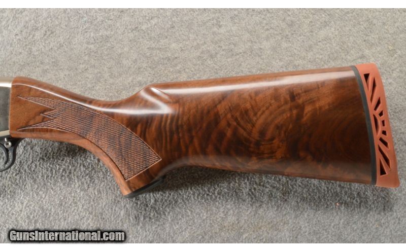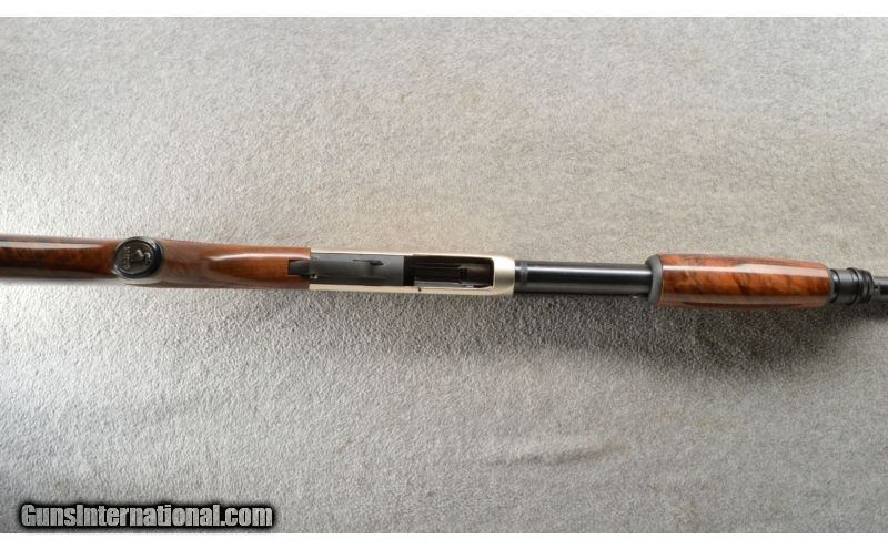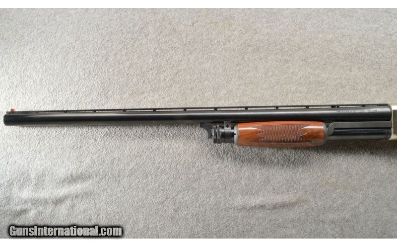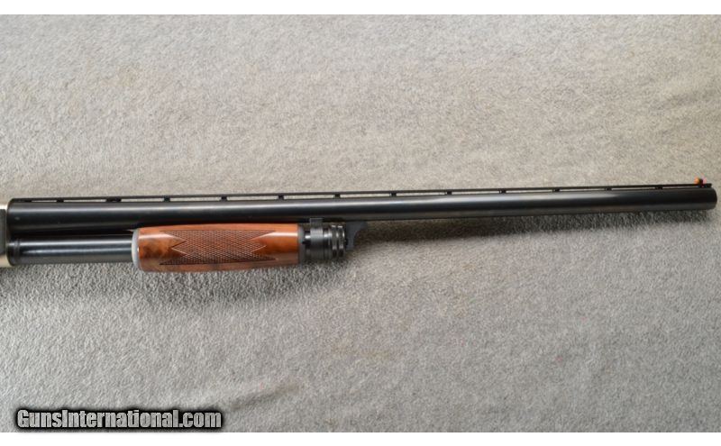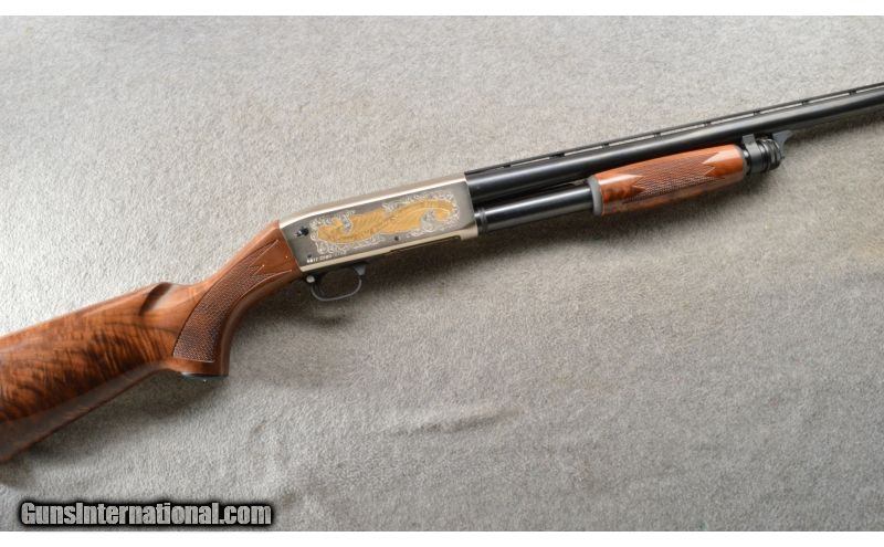 Description: This is an as new in box Ithaca Model 37 NWTF Dinner Gun from 2000. The shotgun remains unfired since leaving the factory. This sharp looking shotgun has a 26 inch blue barrel with a vent rib, coined finish receiver with gold inlays and high grade walnut. The shotgun has the Classic Ithaca sunrise red rubber butt pad. SOLD Manufacturer: 2000 Caliber Info: 12 Gauge. Chambers: 2 3/4 and 3 inch pump action repeater. Metal Condition: ANIB. Wood Condition: Excellent with a very small mark on the right side of the butt stock. Bore Condition: ANIB. Barrels: 26 inch blue with a vent rib. Triggers: Single blue. Stock: Very nice high grade walnut with a checkered pistol grip. Stock Dimensions: 14 inch LOP. Fore End: Matching checkered walnut (short round style). Butt Pad: Ithaca Red rubber sunrise butt pad. Weight: 7 Lbs. 12 Oz. Sights: Red bar front sight bead on the vent rib. Chokes: Screw in, comes with a MOD. Extras: Comes in the factory box. Item Location: Owatonna, MN |