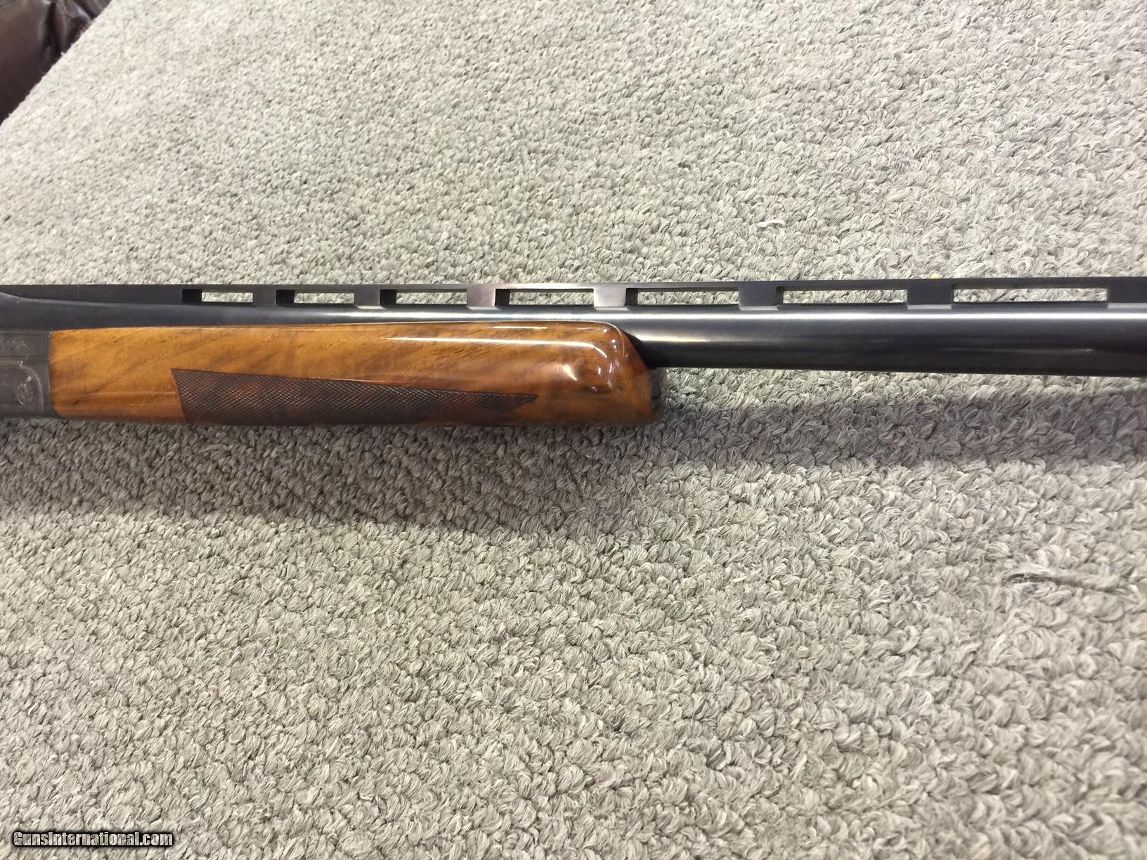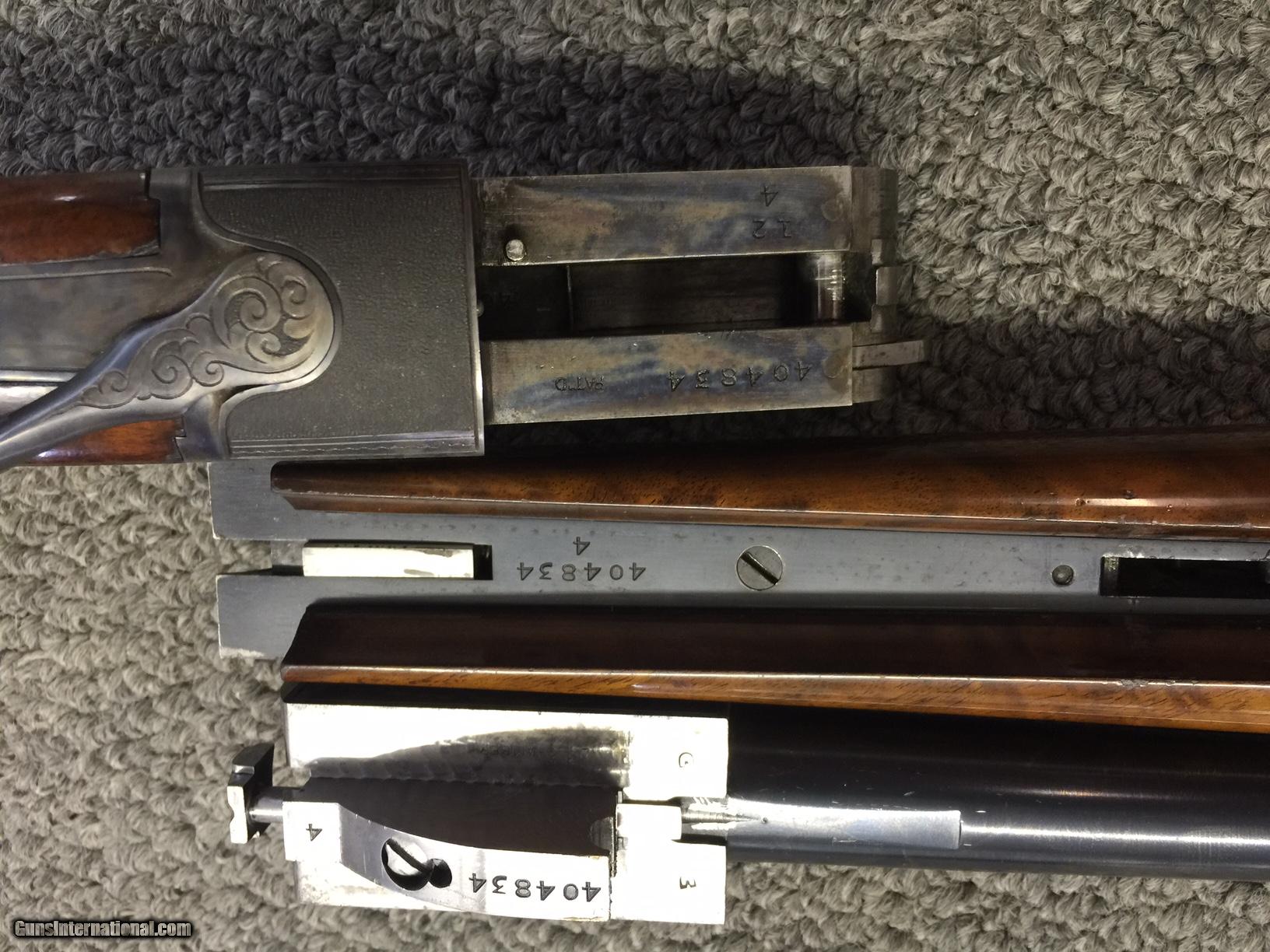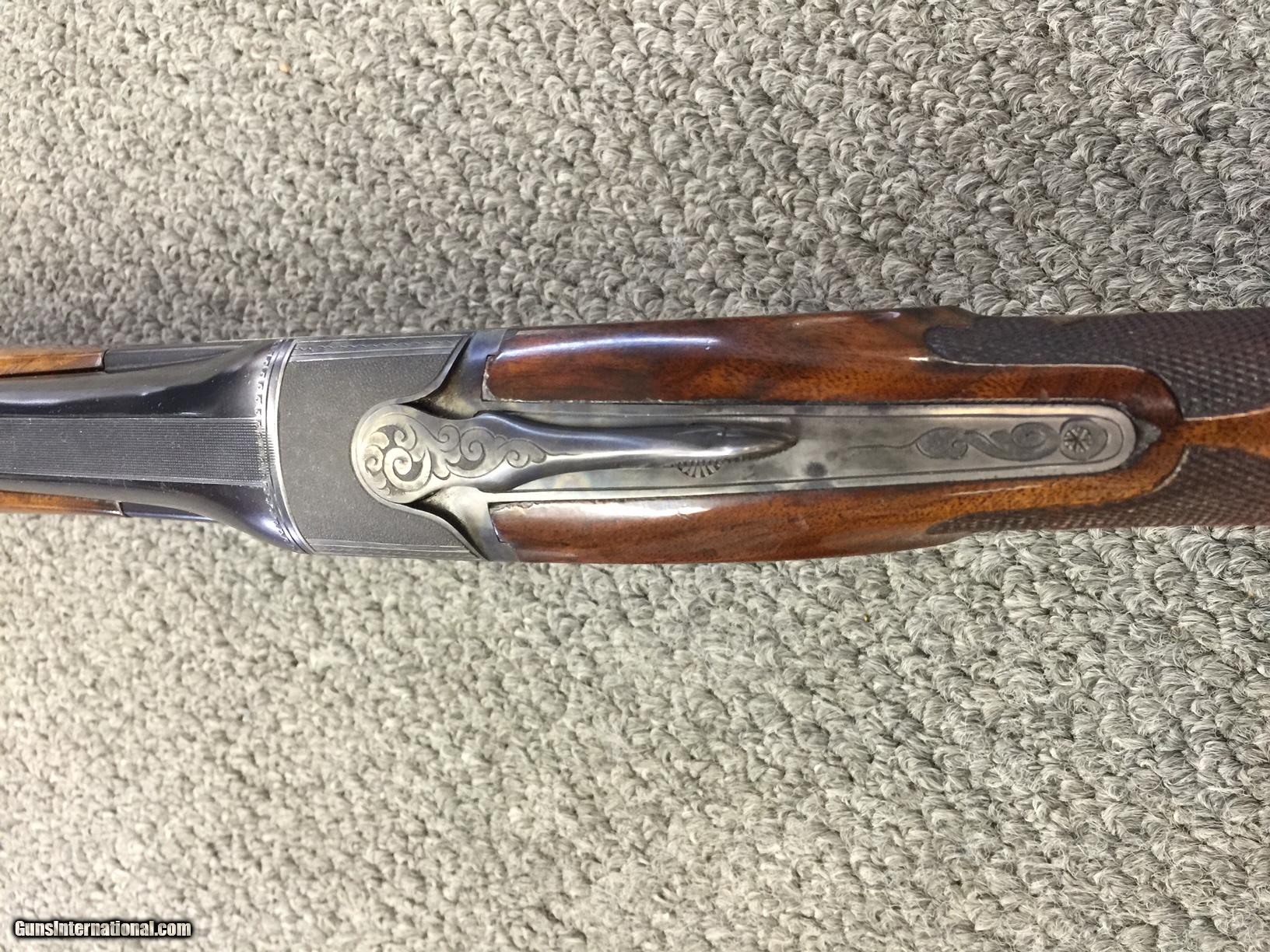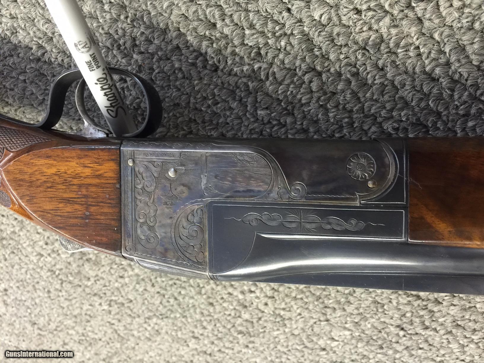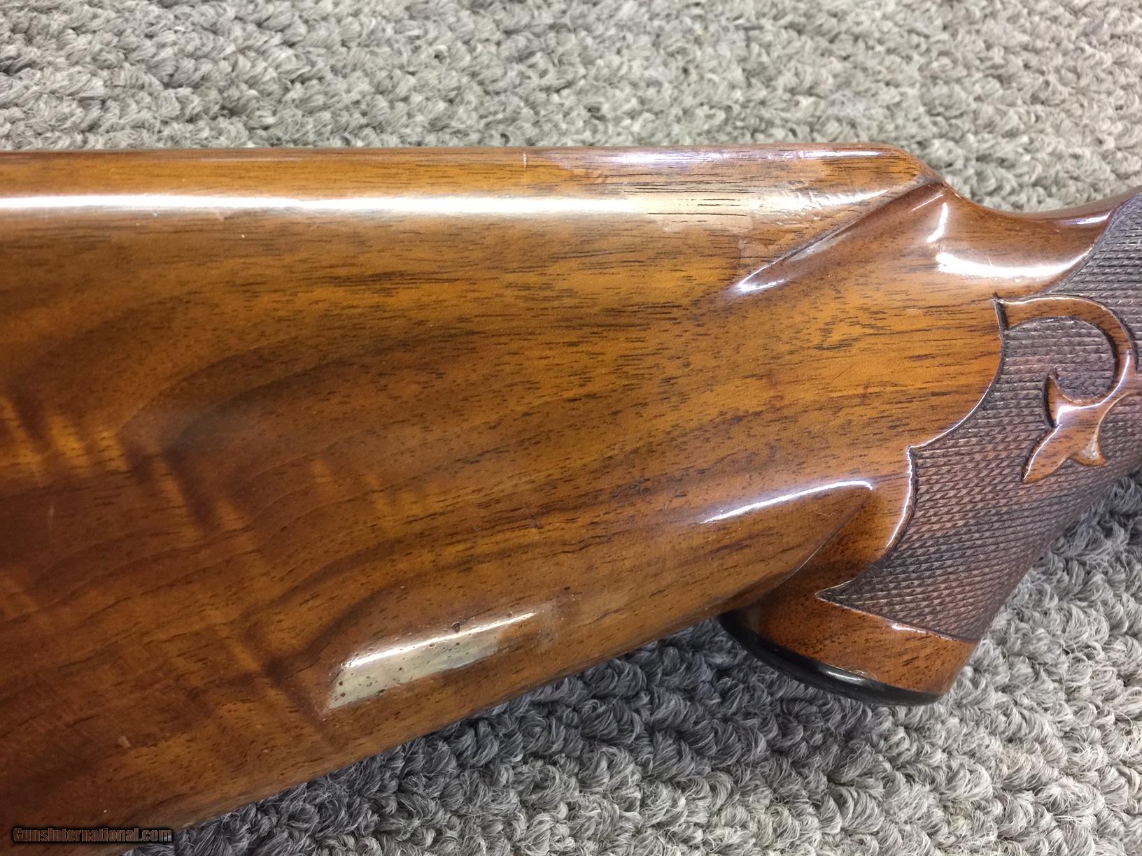 Description: SOLD PENDING FUNDS==This Ithaca 4-E Single is a true low mileage gun. The Knick Model ruled the traps for many years and this one is capable of shooting alongside any modern gun. The gun has 95% blue and 80% colors--conservatively. The barrel is 32 inches ling with an unaltered bore and full choke. The wood is unaltered down to the original pad that is quite pliable. There is a small area where the stock finish has flaked off. Call it 90% and you'll be pleased. Nice figure and dimensions. 14 1/2 x 1 1/2 x 1 7/8 inches. I've had the gun of over 15 years. A previous owner pro-ported the barrel. I know--don't shoot the messenger!! Because of that one issue. I'm pricing this gun LOW. It's a screaming deal. No trades and the price is firm--so don't ask. Try to find a cleaner gun like this ANYWHERE for $1595--DELIVERED LOWER 48. Sorry about the upside down pix. They were rightside up i my computer!!! SOLD |