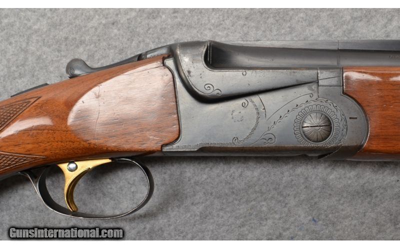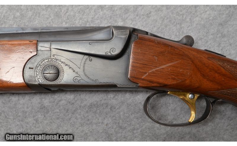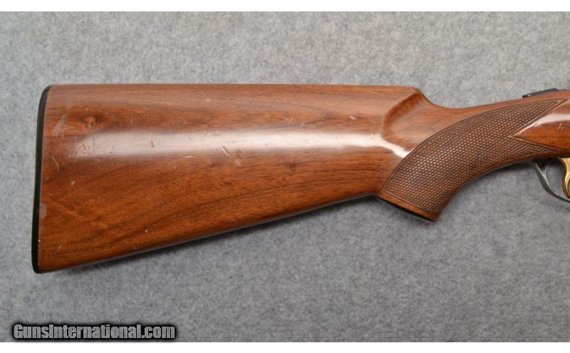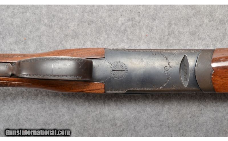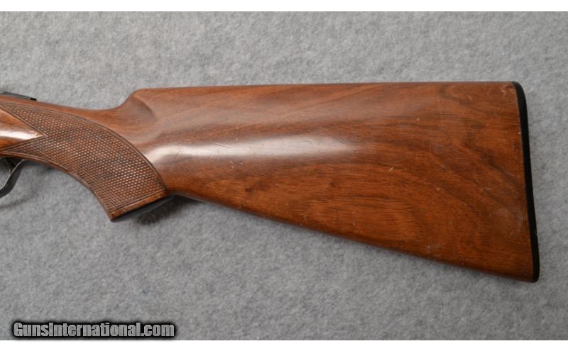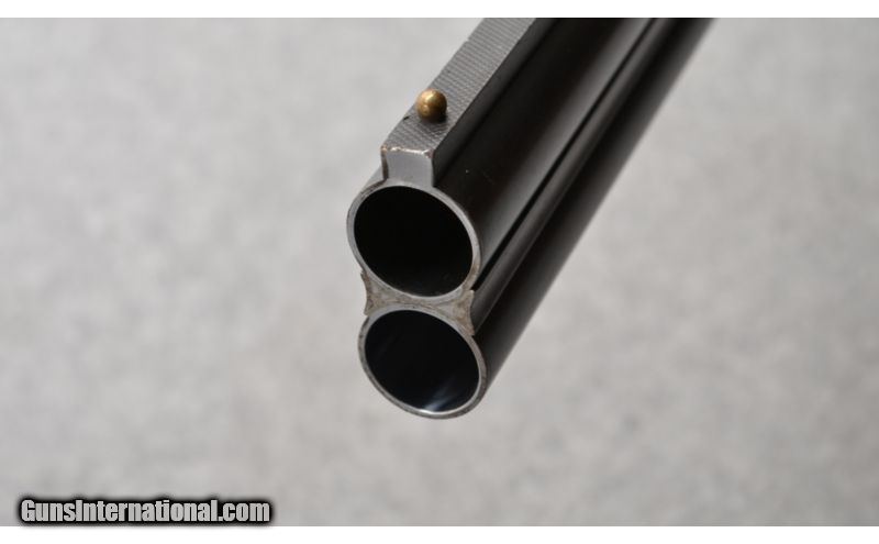 Description: Ithaca model 500 12 gauge, 30 inch barrels, 2 3/4 inch chambers with ejectors. Choked under barrel modified and over barrel full, with matte vent rib and single metal bead. The bores are bright, however the under barrel has a couple of light dings right in front of the fore end. Action has some blue wear and the metal has turned a dull gray along with some brown patina. The barrels have some light scratches and blue wear. The stock and fore end have light handling marks, dings, dents, and scratches. Some are through the finish. SOLD Caliber Info: 12 GA Chambers: 2 3/4 inch chambers with ejectors. Metal Condition: Action has some blue wear and the metal has turned a dull gray along with some brown patina. The barrels have some light scratches and blue wear. Wood Condition: The stock and fore end have light handling marks, dings, dents, and scratches. Some are through the finish. Bore Condition: Bores are bright. The under barrel has a couple of light dings right in front of fore end. Barrels: 30 inch barrels. Triggers: Single selective trigger. Stock: Walnut checkered pistol grip stock. Stock Dimensions: 14 1/8 inch LOP, 1 3/4 inch DAC, 2 1/2 inch DAH Fore End: Walnut checkered fore end with finger grooves. Butt Pad: Factory black hard plastic butt plate. Weight: 8 lbs 1 oz Sights: Matte vent rib with single metal bead. Chokes: Under barrel choked Modified. Over barrel choked Full. Item Location: Mitchell, SD |