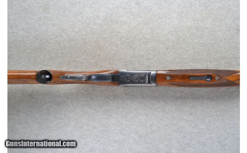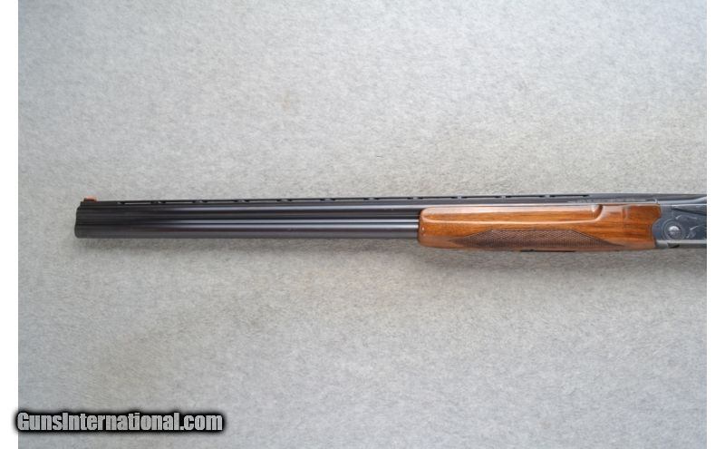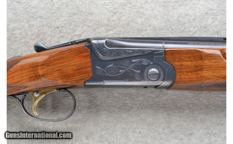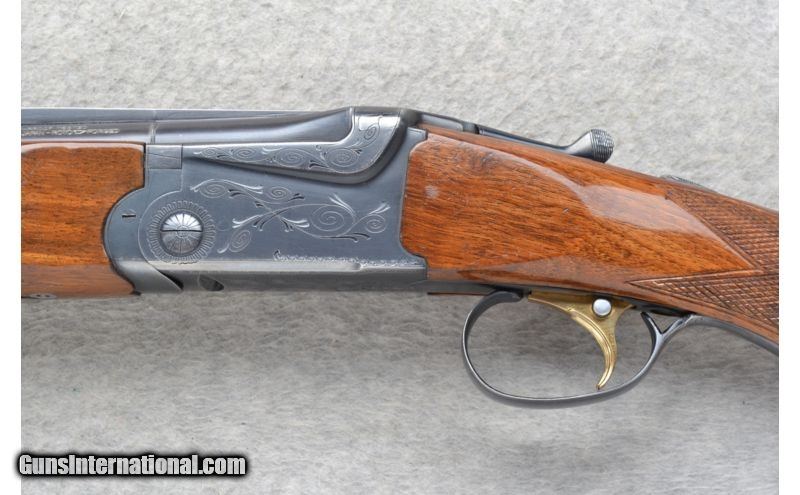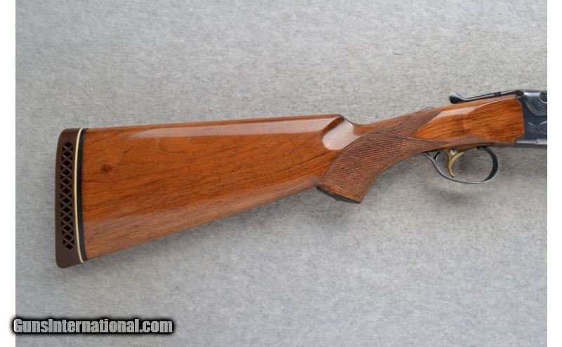 Description: This Ithaca Model 500 Is an over and under 20 Ga. shotgun. It has 26 inch barrels with a top barrel ventilated rib. In 3 inch chambers it has ejectors and fixed Mod. and Imp. chokes. The stock is a checkered walnut pistol grip and checkered walnut semi-beavertail forearm. The golden single trigger has a barrel selection button. The receiver is lightly engraved. SOLD Manufacturer: Made in Japan. Caliber Info: 20 Ga. Chambers: 2 3/4 inch or 3 inch Over/ Under with ejectors. Metal Condition: Very good with minor handling marks and minor blue wear. Wood Condition: Good. Has multiple handling marks. Bore Condition: Very clean, bright and shiny. Barrels: 26 inch blued with a top barrel ventilated rib. Triggers: Single grooved golden. With barrel select button. Stock: Checkered grip walnut pistol grip with a black cap. Stock Dimensions: LOP 14 1/2 inches. Fore End: Checkered grip walnut semi-beavertail. Butt Pad: Pachmayr White Line rubber recoil pad. Weight: 6 lbs. 10 oz. Sights: Red tube high visibility front. Chokes: Fixed Mod. & Imp. Item Location: Richfield, WI |