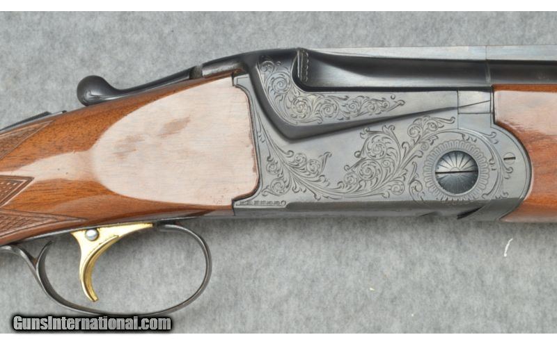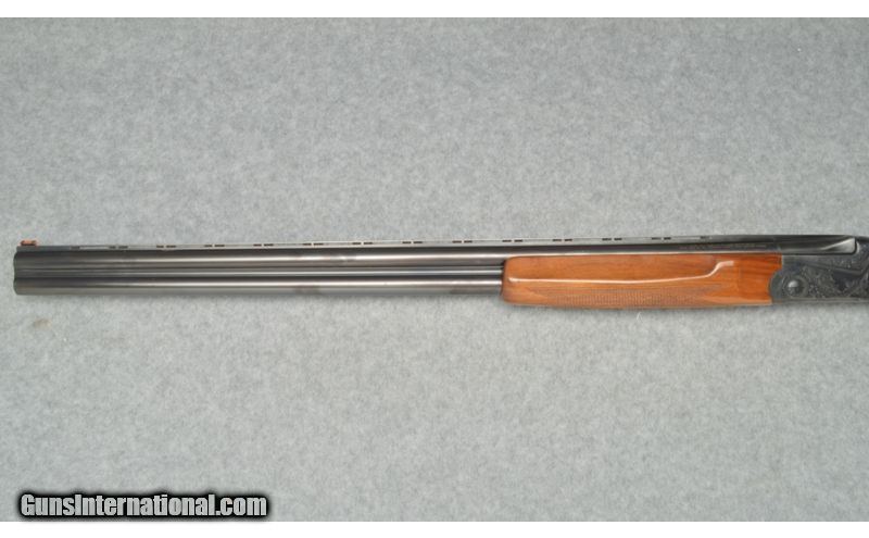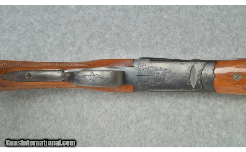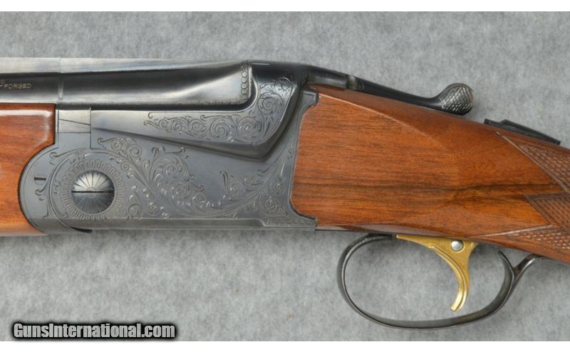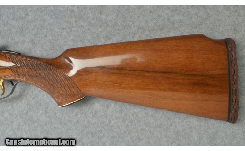 Description: This Ithaca 600 is in excellent condition with 30 inch blue vent rib over under barrels that have very clean and bright bores. The stock is in very good condition with some very minor field mark. The metal is in excellent condition with no mark and looks great with the engrave receiver. The butt pad is wore but has no chips. This shotgun was custom built for Ithaca by SKB. Over all this is a very good looking shotgun that would be great for shooting trap or hunting and even would look great in a collection. SOLD Caliber Info: 12 Ga Chambers: 2 3/4 inch over under chamber with a break action and extractors. Metal Condition: Excellent. Wood Condition: Very good. Bore Condition: Clean and bright. Barrels: 30 inch blue vent rib over under barrels. Triggers: Single gold plated trigger. Stock: Walnut wood stock with checkering on the pistol grip. Stock Dimensions: 14 1/4 inch LOP. Fore End: Matching walnut fore arm with checkering. Butt Pad: Ithaca brown butt pad. Weight: 8 Lbs. Sights: One silver bead sight in the middle and a front red fiber sight. Chokes: Mod / Full fixed chokes. Item Location: Sun Prairie, WI |