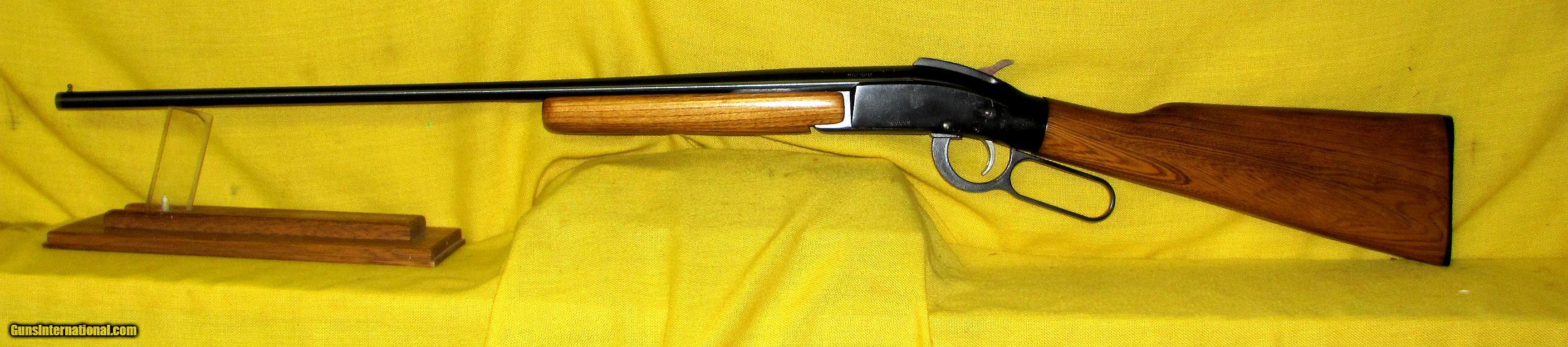 Description: ITHACA model 66 in .410 GA CAL., with 26" barrel. Color BLUE. ITHACA MODEL 66, .410 GAUGE LEVER ACTION SINGLE SHOT SHOT GUN, 26” BARREL WITH FULL FIXED CHOKE WITH MIRROR BORE, STOCK AND FORE GRIP EXCELLENT, 98% FACTORY FINNISH, SERIAL # 166032, OUR NEW STOCK # D31885 Condition 98%. Serial number 166032. SOLD |