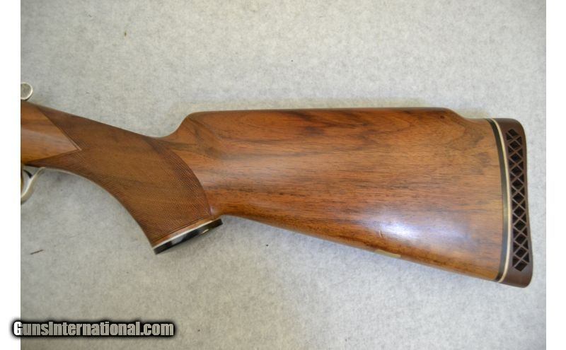 Description: The receiver and breech area of the barrel have some very attractive factory engraving. The trigger guard and fore end release have the beginnings of some patina; though the fore end release might have some minor pitting.The wood checkering is in good condition and the clarity of it would seem to indicate that it still has the original finish. While in very good condition is does have a small number of very minor handling dents; though none seem to have gone through the finish. The plate on the stock where one might be inclined to have their initials engraved has yet to be used. SOLD Caliber Info: 12 Gauge Chambers: 2 3/4" Shells Metal Condition: Very good; see pictures & description Wood Condition: Very good; see pictures & description Bore Condition: Excellent; shines down the whole length Barrels: 32" Ported barrel with wide ventilated rib and shell ejector Triggers: Gold colored with serrated surface Stock: Checkered wood with cheek riserand black grip cap Stock Dimensions: 14 1/2" LOP Fore End: Wide beavertail with wrap around diamond checkering Butt Pad: Ithaca-SKB marked ventilated brown rubber Weight: 8lbs Sights: White front bead and stainless post middle Chokes: Fixed full choke Item Location: Green Bay, WI |