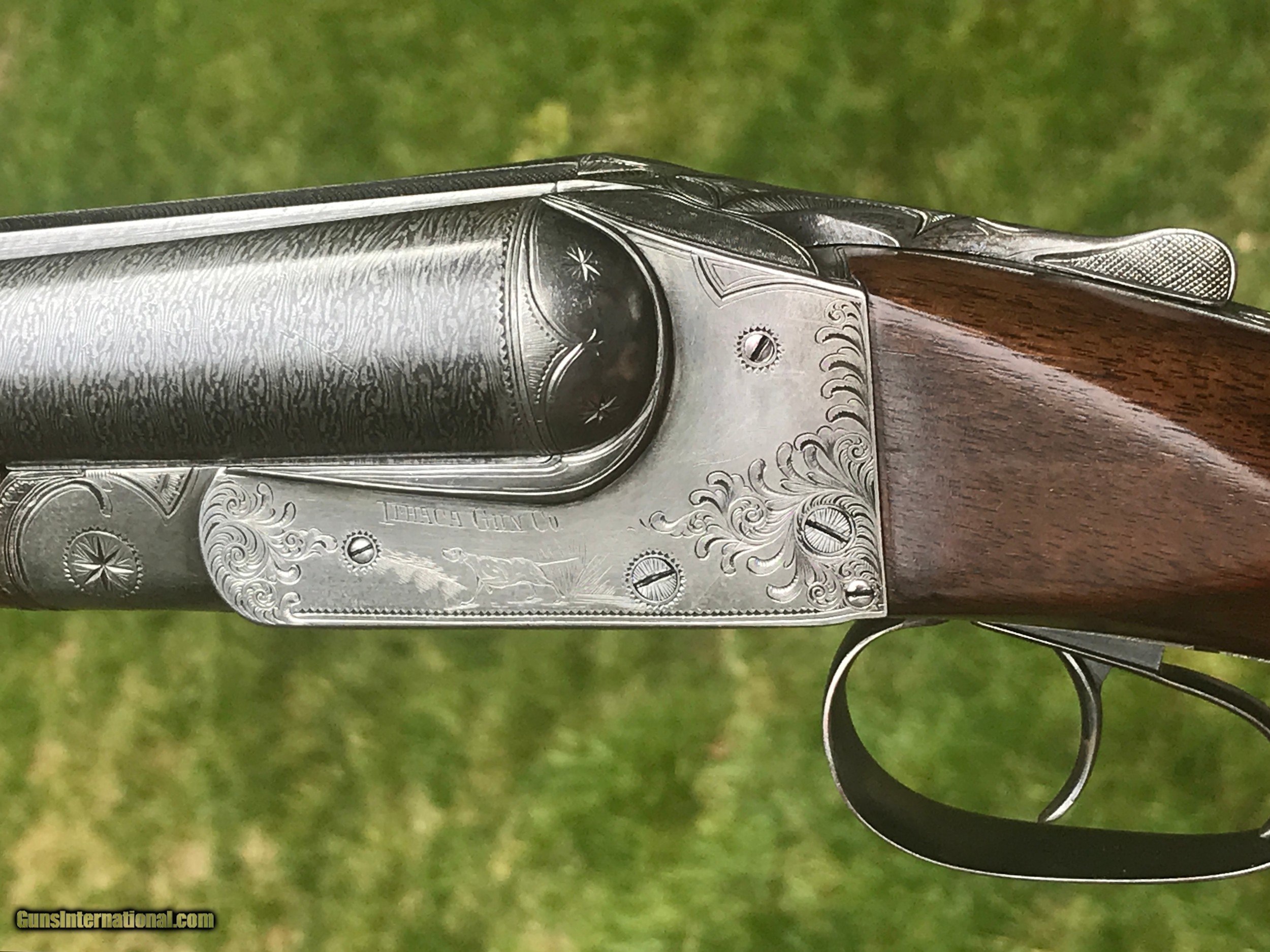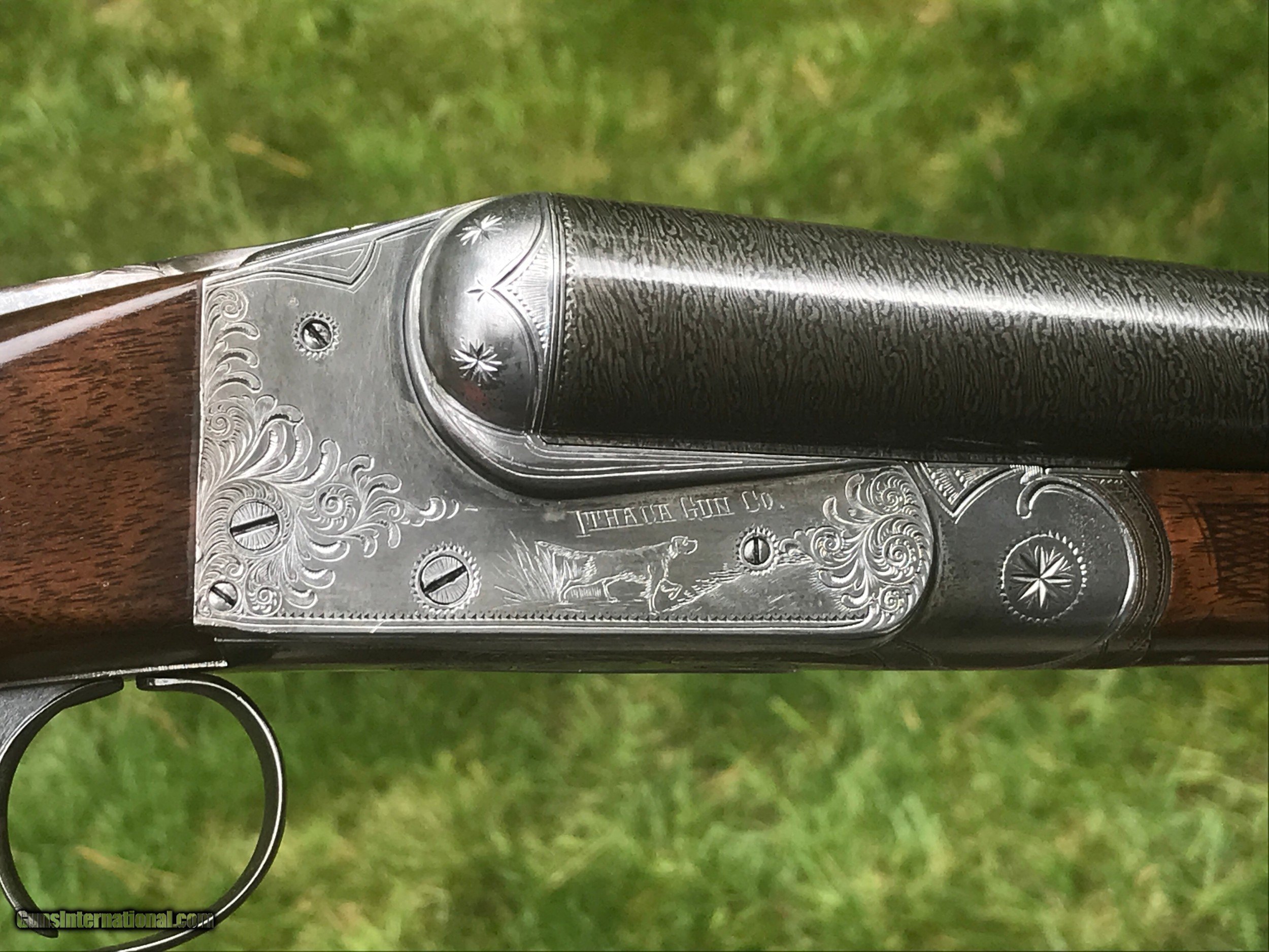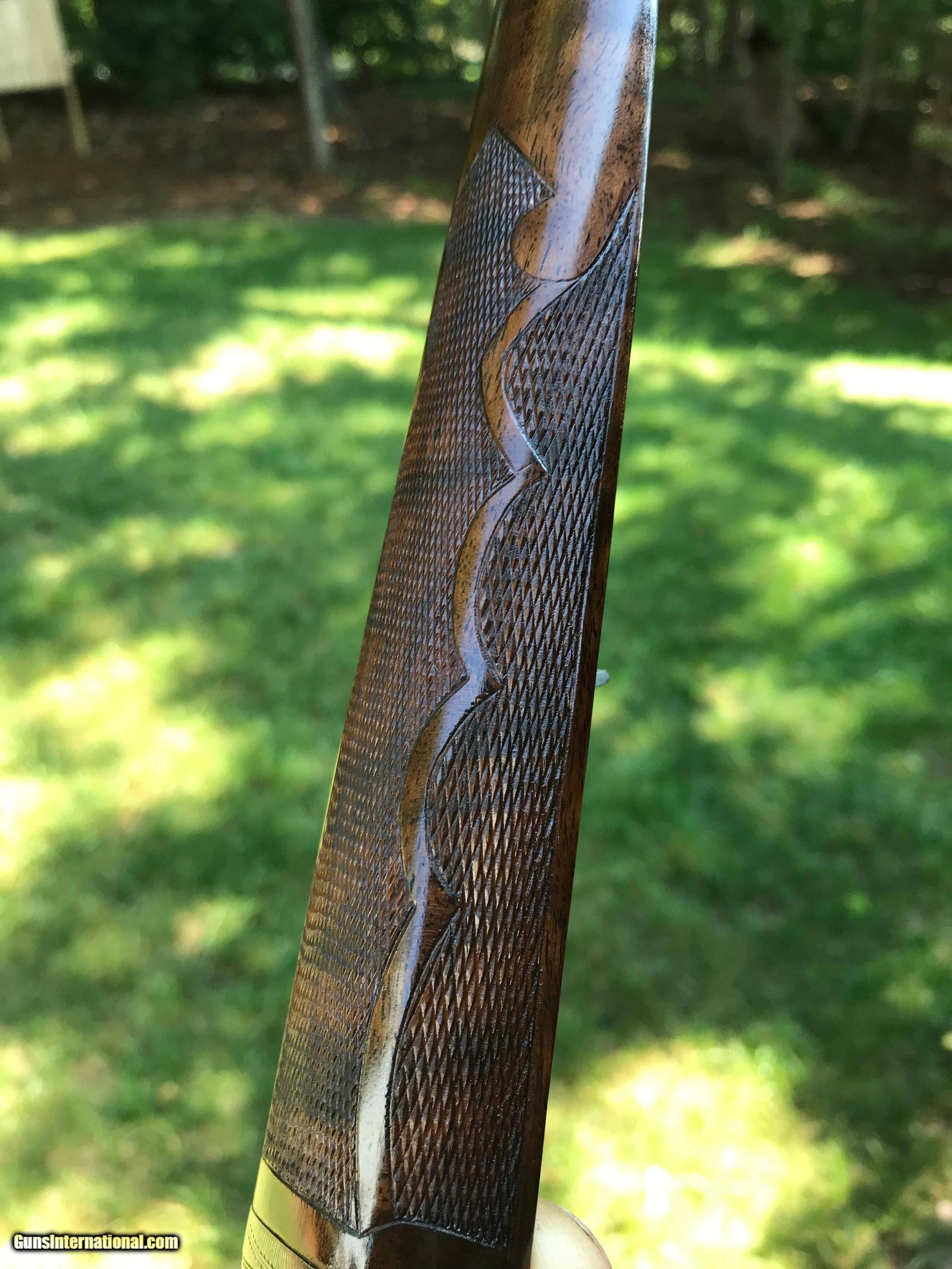 Description: 30” chain link Damascus barrels with superb bores Factory 2 3/4” chambers Cyl/Mod chokes DAC 1 7/8” DAH 3 1/4” LOP 14 1/4” to factory buttplate Capped pistol grip stock All numbers match 6 lbs 15 oz Stock refinished with hand rubbed TimberLuxe oil finish. Checkered to factory Grade 3 pattern. No stock cracks or blemishes of any kind. Barrels retain original finish which were refreshed to increase pattern contrast. Barrel and action are tight on face. Action completely disassembled, ultrasonic cleaned, lubricated, and reassembled. Gun is in fantastic condition. Shipping and insurance to FFL in cont. US will be flat $30. SOLD Manufacturer: Ithaca Model: Crass Serial Number: 41157 Chambers: 2 3/4 Ejectors: No Condition: Excellent Metal Condition: Excellent Wood Condition: Excellent Bore Condition: Excellent Barrel Type: Damascus Triggers: 2 Gauge Info: 12ga Stock Comb: 1 7/8 Stock Heel: 3 1/4 Butt Pad: Factory LOP: 14 1/4 Weight: 6lbs 15oz Manufacture Date: 1900 Choke Left: Mod Choke Right: Cyl Engraving: Yes |