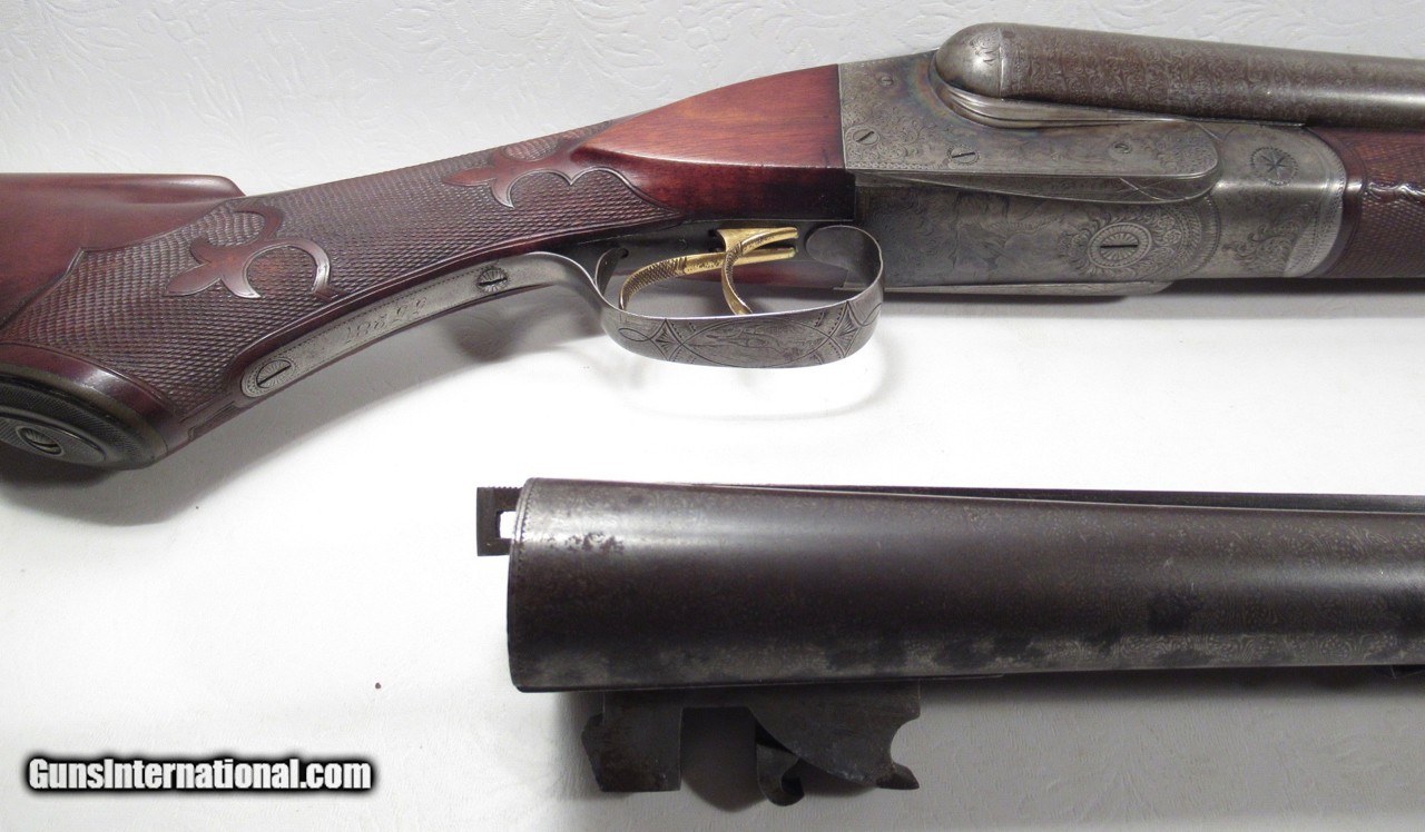 Description: SALE PENDING--Ithaca Crass 12 Gauge; Serial No. 55287; Made 1900; 2 Barrels Numbered to Gun; 30” F&F – 28” F⁣ Both Sets 2¾” Chambers; this is a Grade 4 Gun; Extractors; BEAUTIFUL Damascus Patterns with some roughness on 30” set; MINT bores; Twin IVORY Beads; BEAUTIFUL Engraving; GOLD plated triggers; some Case Colors Present; OUTSTANDING - near PERFECT Wood; 14 ¼” pull to Original Butt plate; 1 ¾” DAC – 3” DAH; 120 Year-Old Classic American Double; LIQUIDATING PERSONAL COLLECTION; Price: $1,900 + $60 S&H; Price includes insured shipping; return policy: three days inspection from the date the items received; full refund of shipping both ways ONLY IF THE ITEM IS MISREPRESENTED. SOLD Manufacturer: Ithaca Model: Crass Grade 4 Serial Number: 55287 |