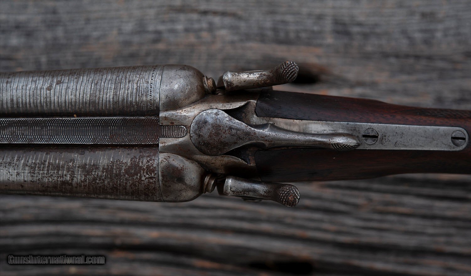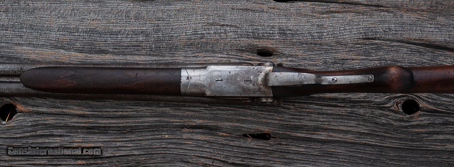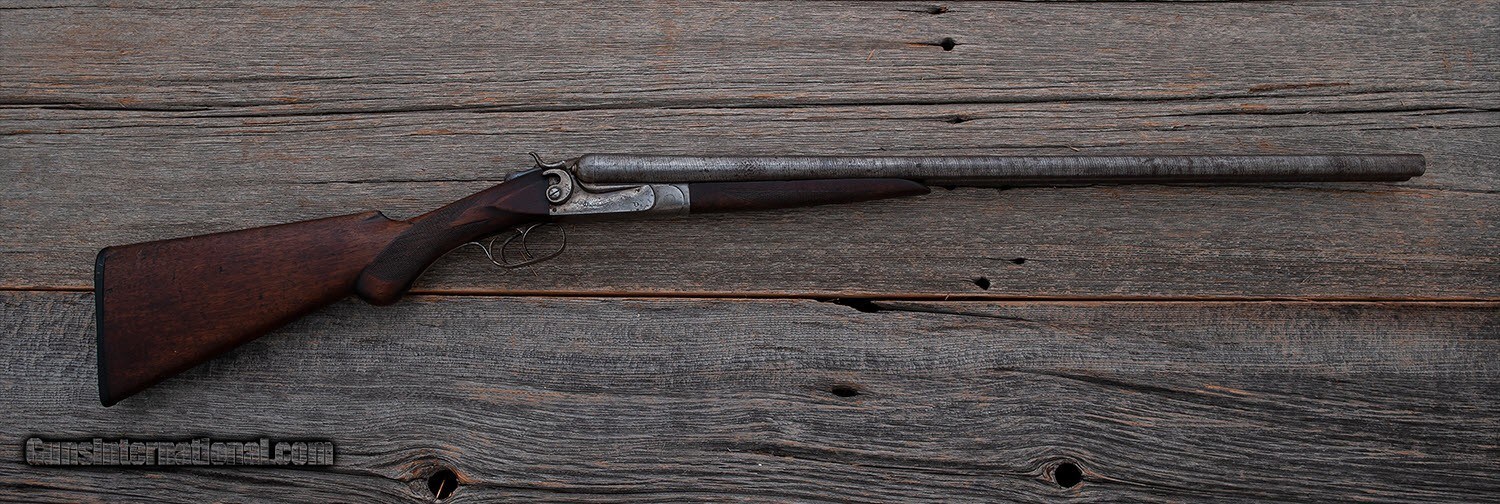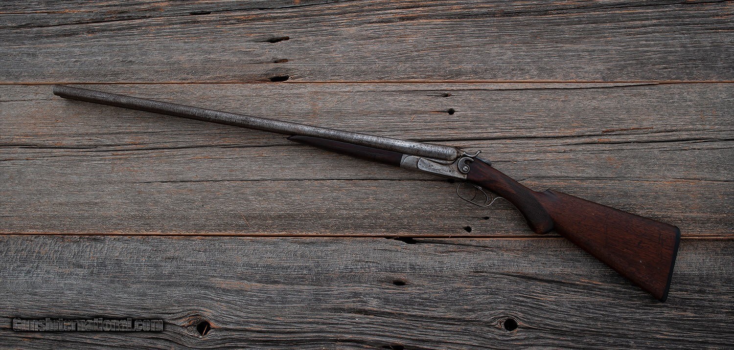 Description: Ithaca - Damascus Hammergun - 12 ga - Item Number: ITH104402 Shotgun type: SxS Action: Hammer Ejectors: No Trigger: Double Grip: Rounded Pistol Grip Forend: Checkered Lop: 13 7/8 " Pad thickness: 0.25 " Type of butt: Factory Drop comb: 1 3/4 " Drop heel: 2 7/8 " Cast amount: 1/8 " Cast: Off Weight: 7 lbs, oz Manufactured in: USA Finish: Brush Overall condition: Fair Stock condition: Fair Metal condition: Fair Stock: Original finish Metal: Original finish Type of Case: none Extra barrels: 0 Barrel info: Gauge: 12 ga Chamber: 3 " Length: 28 " Chokes: F/F Rib type: Concave Comments : Good project or display gun. SG-128 SOLD |