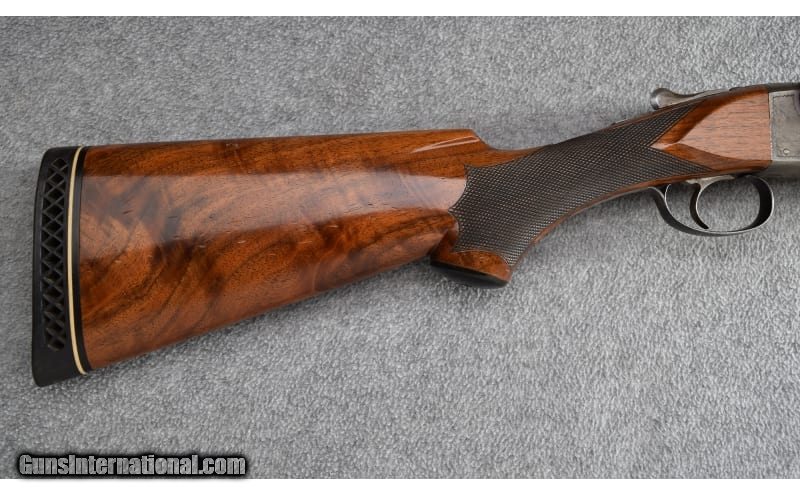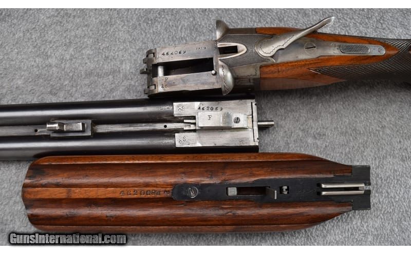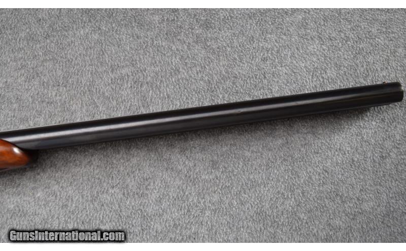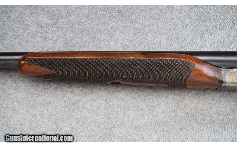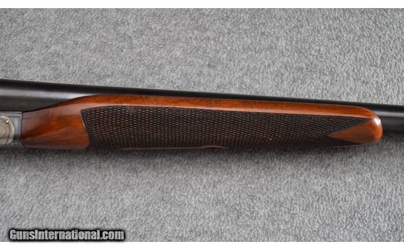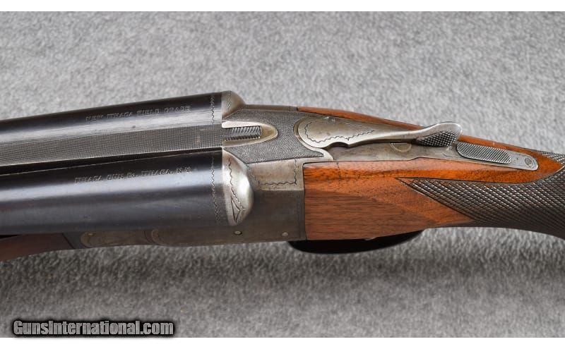 Description: This Ithaca Field Grade was manufactured in 1936 and remains in very good overall condition. Wood is solid except for two hairline cracks on either side of beavertail forend. Light nicks and scratches all over. Beautifully figured stock. Barrel blue appears original showing light use and wear. Case coloring on receiver is very worn. Bore is excellent however barrels do not ring. This is an ejector gun with good function. Nice old gun. 16 Gauge SOLD Chambers: 2 3/4' Metal Condition: Very Good Wood Condition: Very Good Bore Condition: Very Good Barrels: 26' Solid Rib Triggers: Single Selective Safety Stock Dimensions: 14 1//8' LOP -1 1/2' DAC - 2/14' DAH Fore End: Checkered Walnut Pistol Grip With Metal Pistol Grip Cap - Checkered Walnut Beavertail Forehand Butt Pad: Vented Pachmayr Whiteline Weight: 7.5 lb Sights: Single Front Bead Chokes: Improved and Modified Item Location: Wheeling |