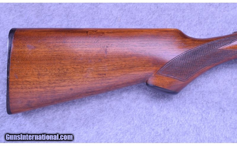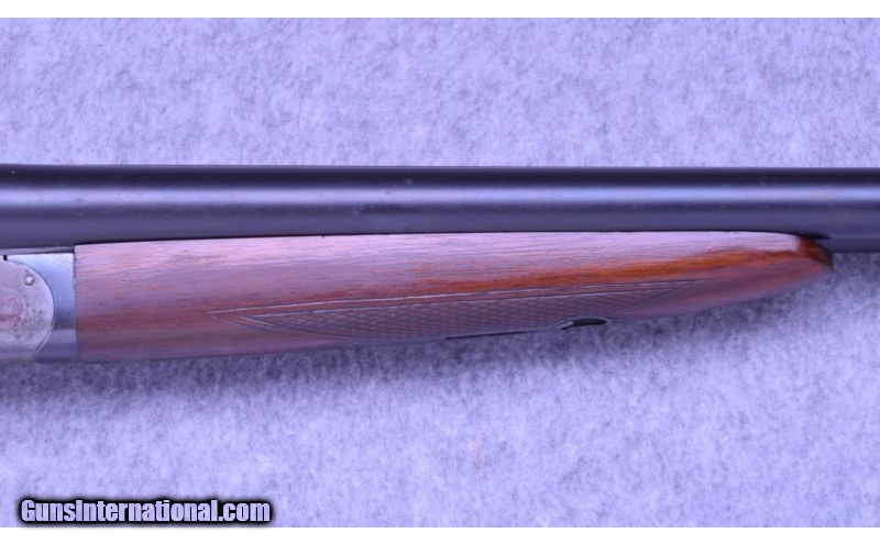 Description: Receiver shows visible case color with a bit of carry wear to the underside. Wood shows normal aging with a few light use marks. Bores are bright and excellent. SOLD Manufacturer: S/N 442XXX Caliber Info: 20 GA Chambers: 2 3/4" with Extractors Metal Condition: Very Good Wood Condition: Very Good Bore Condition: Excellent Barrels: 26 Triggers: Double Stock: Checkered Walnut Pistol Grip wtih Black Cap Stock Dimensions: 14" LOP Fore End: Checkered Walnut Splinter Forend Butt Pad: Black Hard Rubber Weight: 6 LB Sights: Single Front Bead Chokes: Modified/Full - Fixed Item Location: Wheeling, WV |
