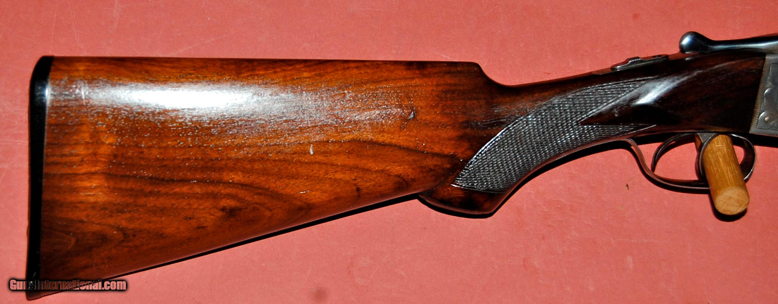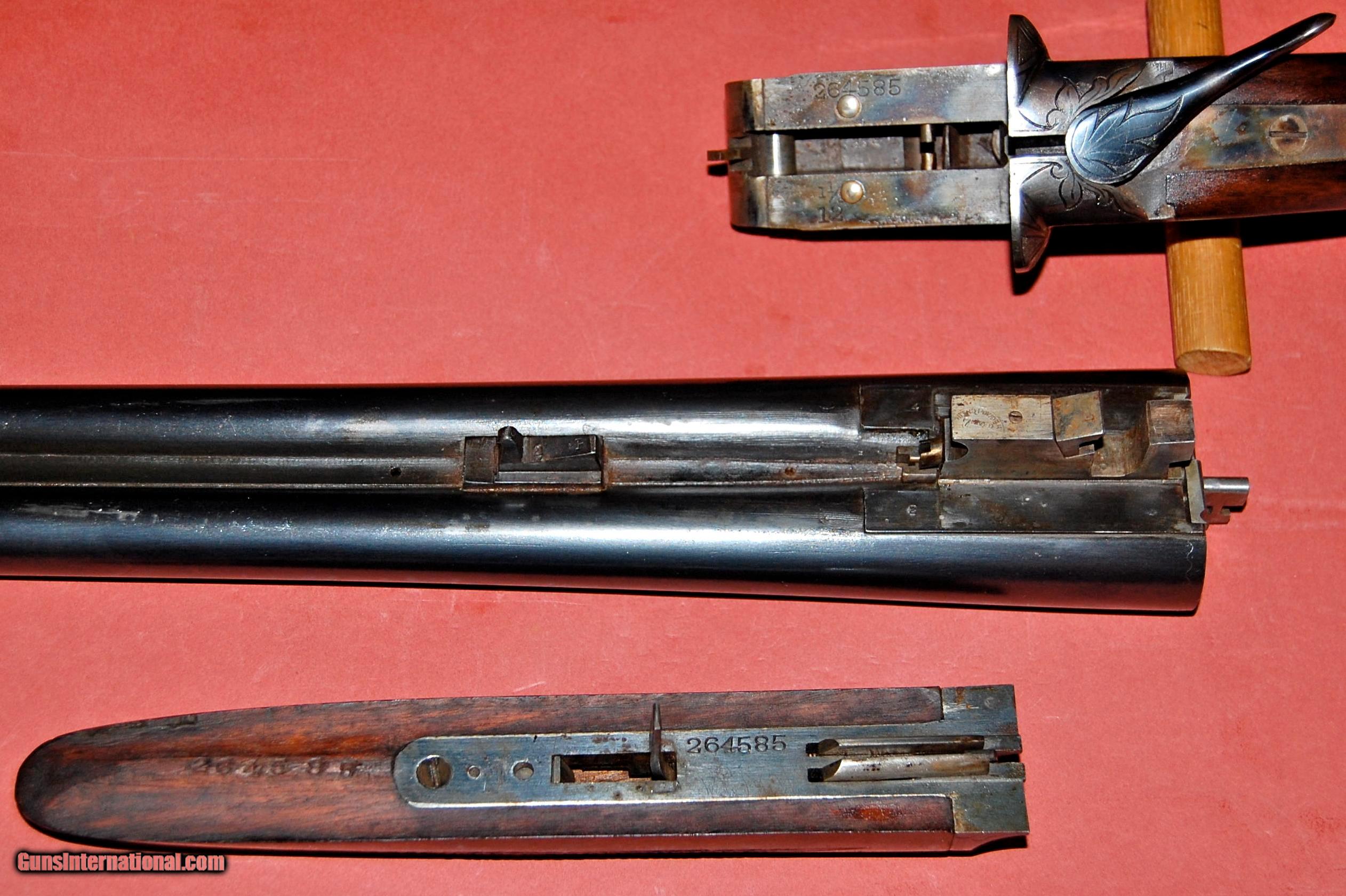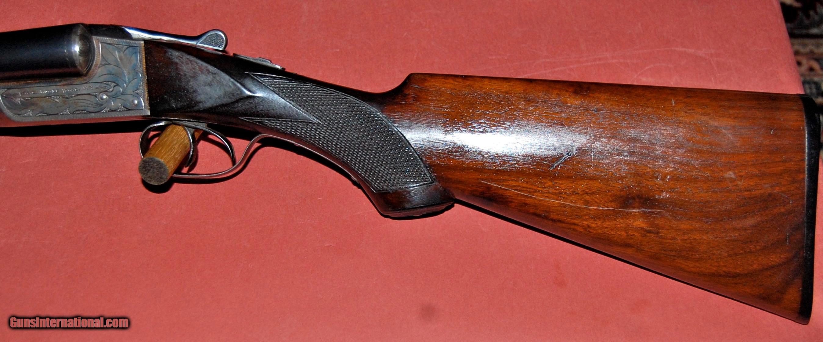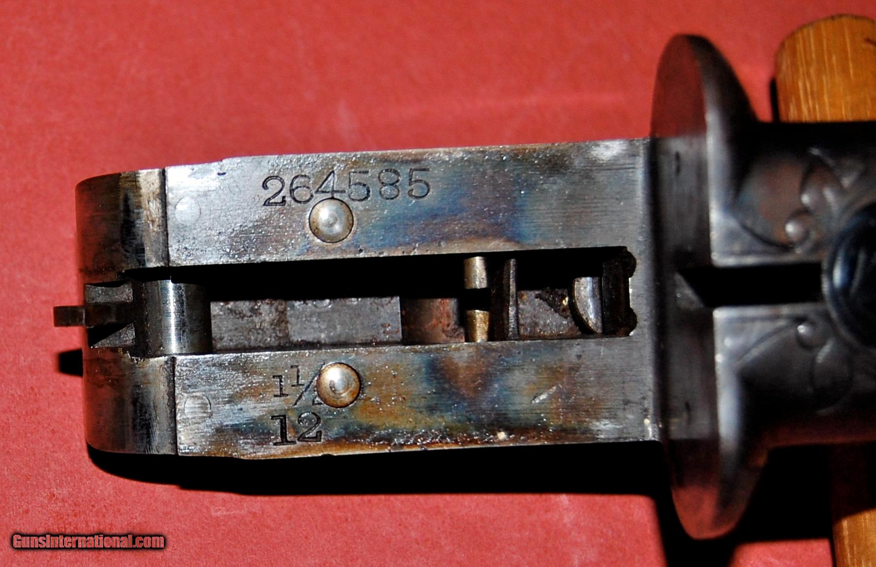 Description: Very rare and high condition Ithaca Flues 11/2 grade 12 gauge.Built in 1915,this gun has rare 30" Krupp steel ejector barrels choked modified (.014") and full (.040").The 11/2 grade was only built with fluid steel barrels for 2 years according to Snyders book "Ithaca Gun From the Beginning".The outbreak of WWI cut off the supply of barrels and the 11/2 grade was combined with the grade one to make a new grade one.This gun is not only rare,but it is in remarkable all original condition.It retains at least 80% of the original case colors,98% of the original barrel blue,and 98% of the original wood finish.The bores are mint and free of any rust,dents,or pits.The wood is sound with no cracks or damage.The ejectors are strong and well timed.The stock dimensions are 141/8" LOP over the original Ithaca buttplate,13/4" at comb,and 3" at heel.It would make a super pheasant or dove gun or a vintager clays gun.This is a rare Ithaca with hard to find options and collector condition.My poor photography skills do not do justice to this fine Ithaca.C&R eligible. SOLD Curio/Relic: Yes Manufacturer: Ithaca Model: Flues 11/2 Serial Number: 264585 Chambers: 23/4 Ejectors: yes Metal Condition: e Wood Condition: excellent Bore Condition: mint Barrel Type: krupp steel Action: double barrel Triggers: Double Gauge Info: 12ga Stock Dimensions: 141/8"x13/4"x3 Weight: 7-6 Manufacture Date: 1915 Choke Left: Full (.040") Choke Right: modified (.014") |