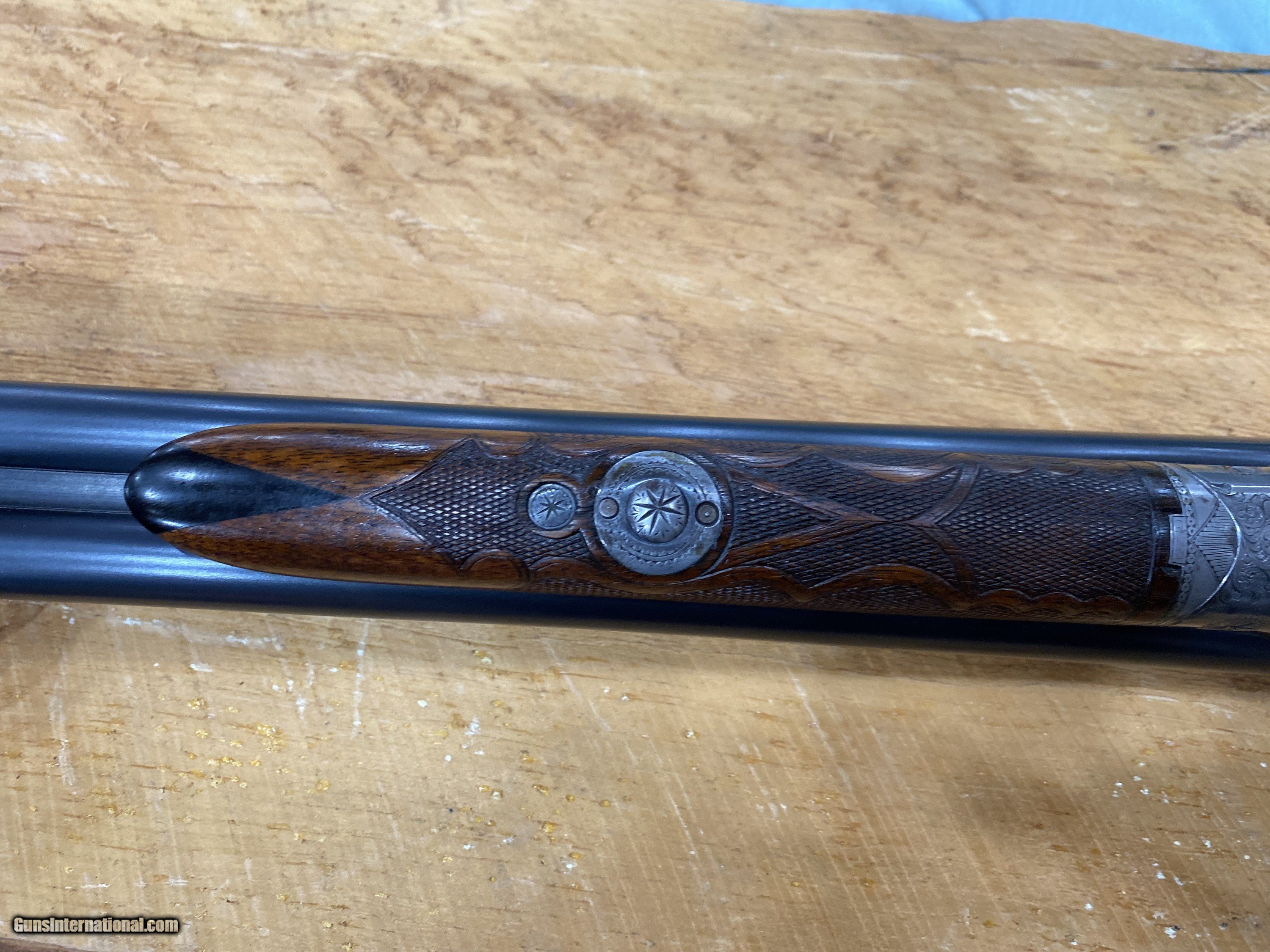 Description: Ithaca Flues 16 Gauge Grade 4E. Chokes are full and IM. Very nice example of an early flues grade 4. 26" Krupp steel barrels. Gold plated trigers. Barrels retain nearly all of the original bluing. Receiver and triger gard beautifully ingraved with some of the orignal case coloring intact. Checkering on stock is excellent. Date of manufacture is about 1914. Bright shiny bores, no dents or dimples. Double ivory bead sights. Shotgun Gauge: 16 Gauge Manufacturer: Ithaca Model: Flues Serial Number: 248040 Barrel Length: 26 Price: $5,995.00 Shipping: $50.00 Contact Seller |