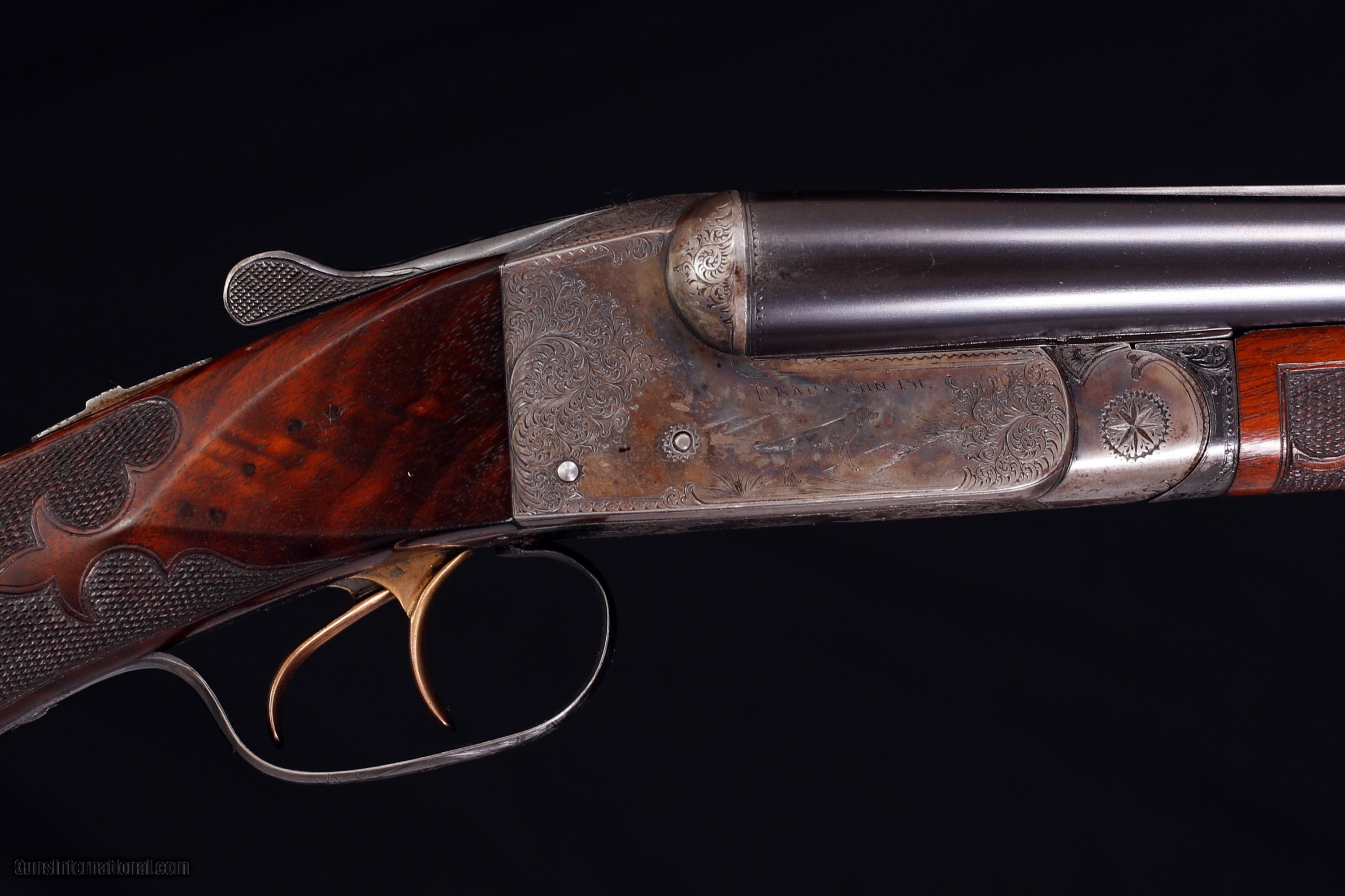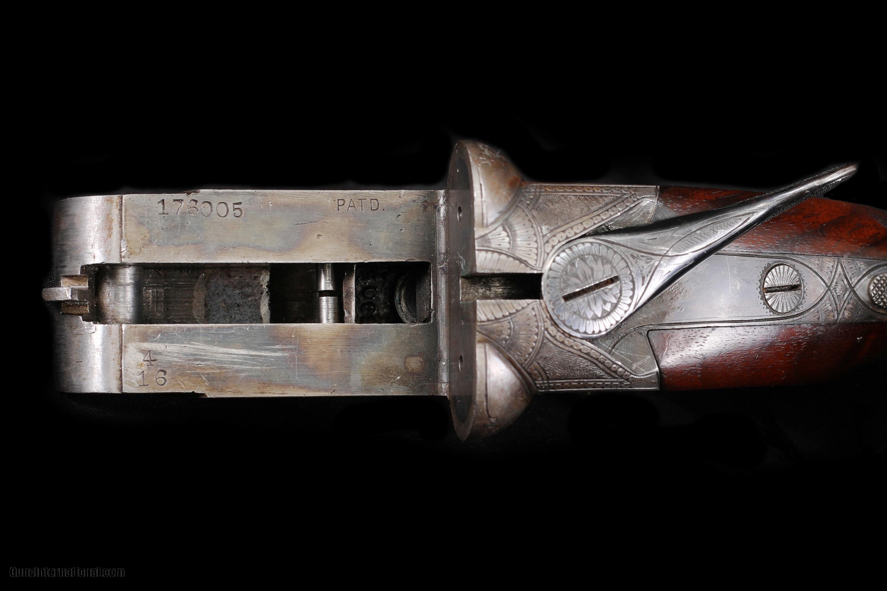 Description: Really a beautiful Ithaca Flues Model Grade 4E 16ga gun. Gun made with 28" Krupp Fluid Steel barrels, beautifully checkered splinter forend with push button opener. Frame is beautifully engraved in the Grade 4 pattern of the era. Capped pistol grip buttstock is very nicely checkered and has its original buttplate. Gun remains in beautiful untouched all original condition. Barrels with nearly all of their original blue. Stocks are beautiful and original with nearly all of their original finish with only minor handling marks. Frame with about 80% original case color. Really a crisp Flues. This fine gun is priced at $3895 plus shipping to your FFL. Please dont hesitate to contact me with any questions or reasonable offers at (704) 280-2382 or via PM on this site. SOLD Curio/Relic: Yes Shotgun Gauge: 16 Gauge Manufacturer: Ithaca Model: Flues Grade 4 Serial Number: 176005 Barrel Length: 28 Chambers: 2-3/4 Ejectors: Yes Condition: Excellent Metal Condition: Excellent Wood Condition: Excellent Bore Condition: Brilliant and shiny Barrel Type: Krupp Stock Comb: 1-7/8 Stock Heel: 3-1/4 Fore End: Splinter Butt Pad: Original HRBP LOP: 13-3/4 Weight: 6lbs. 9oz. Choke Left: .028 Choke Right: .026 Minimum Wall Thickness Left: Over .025 Minimum Wall Thickness Right: Over .025 |