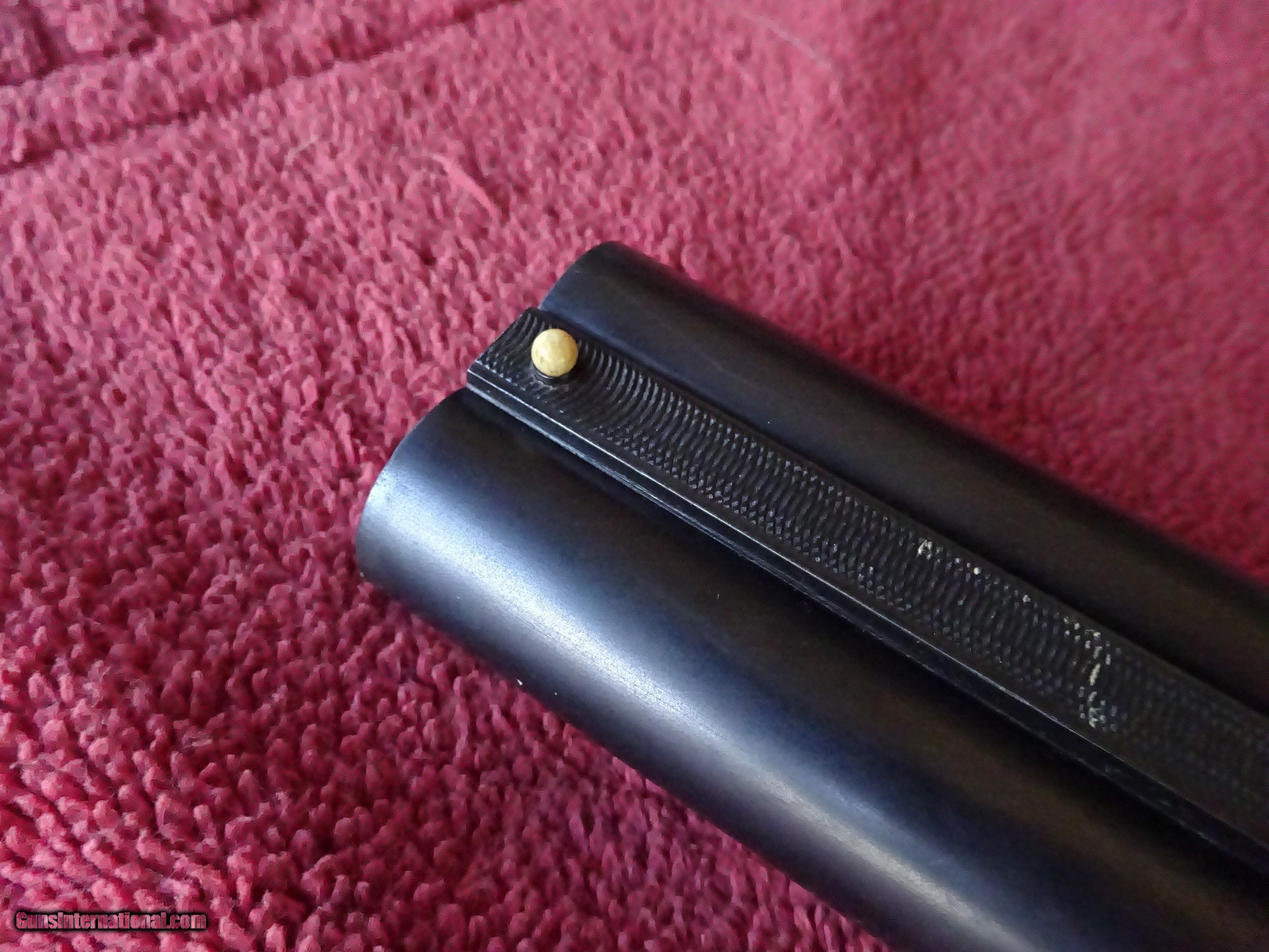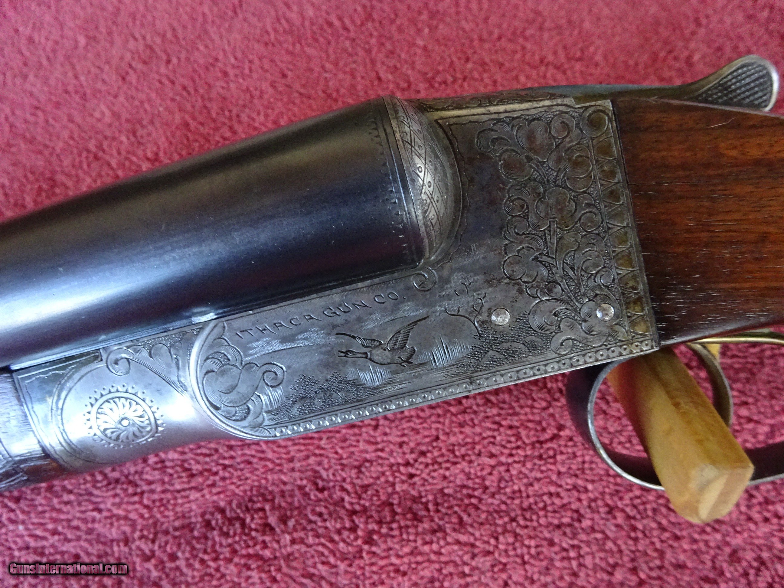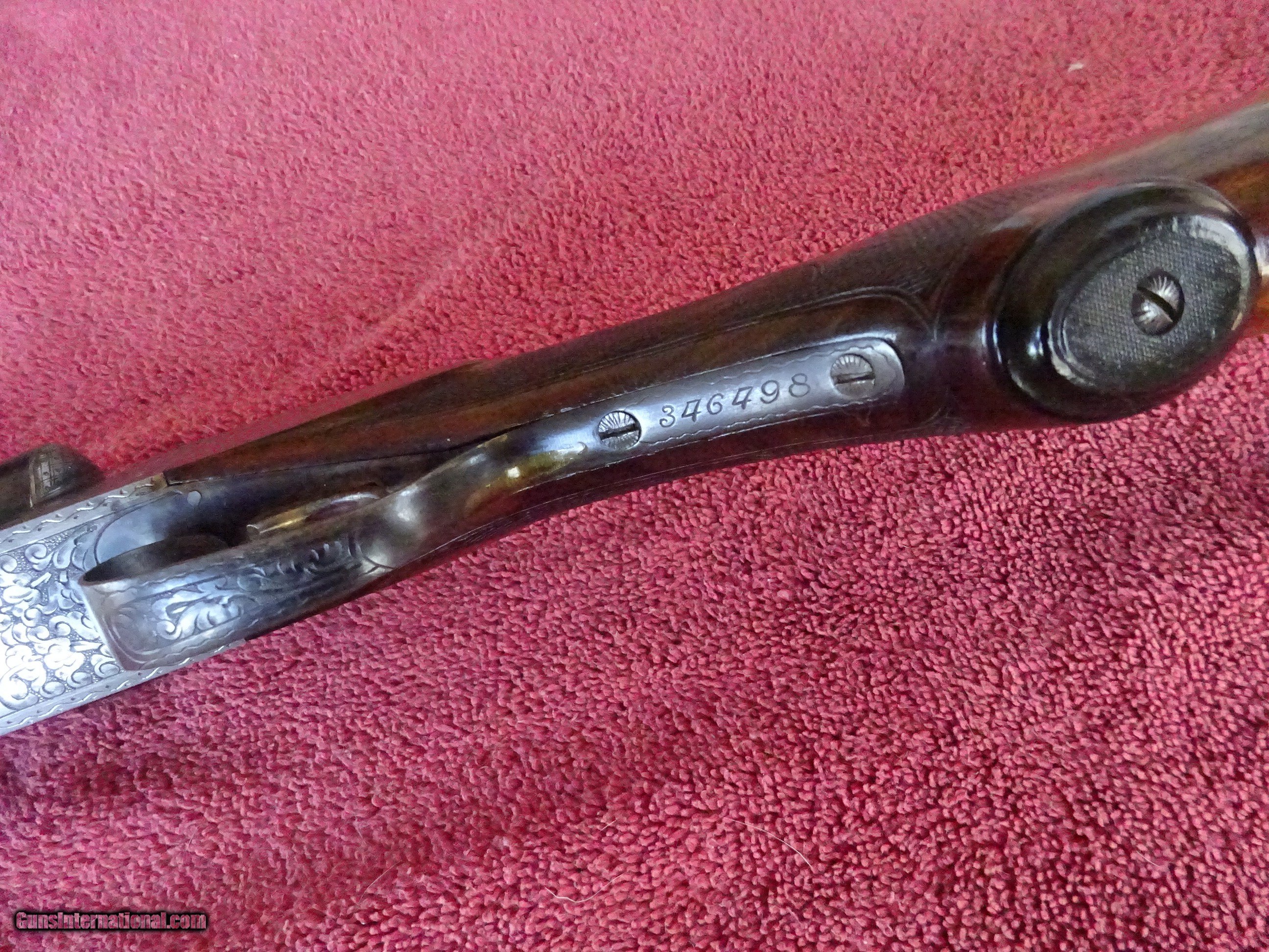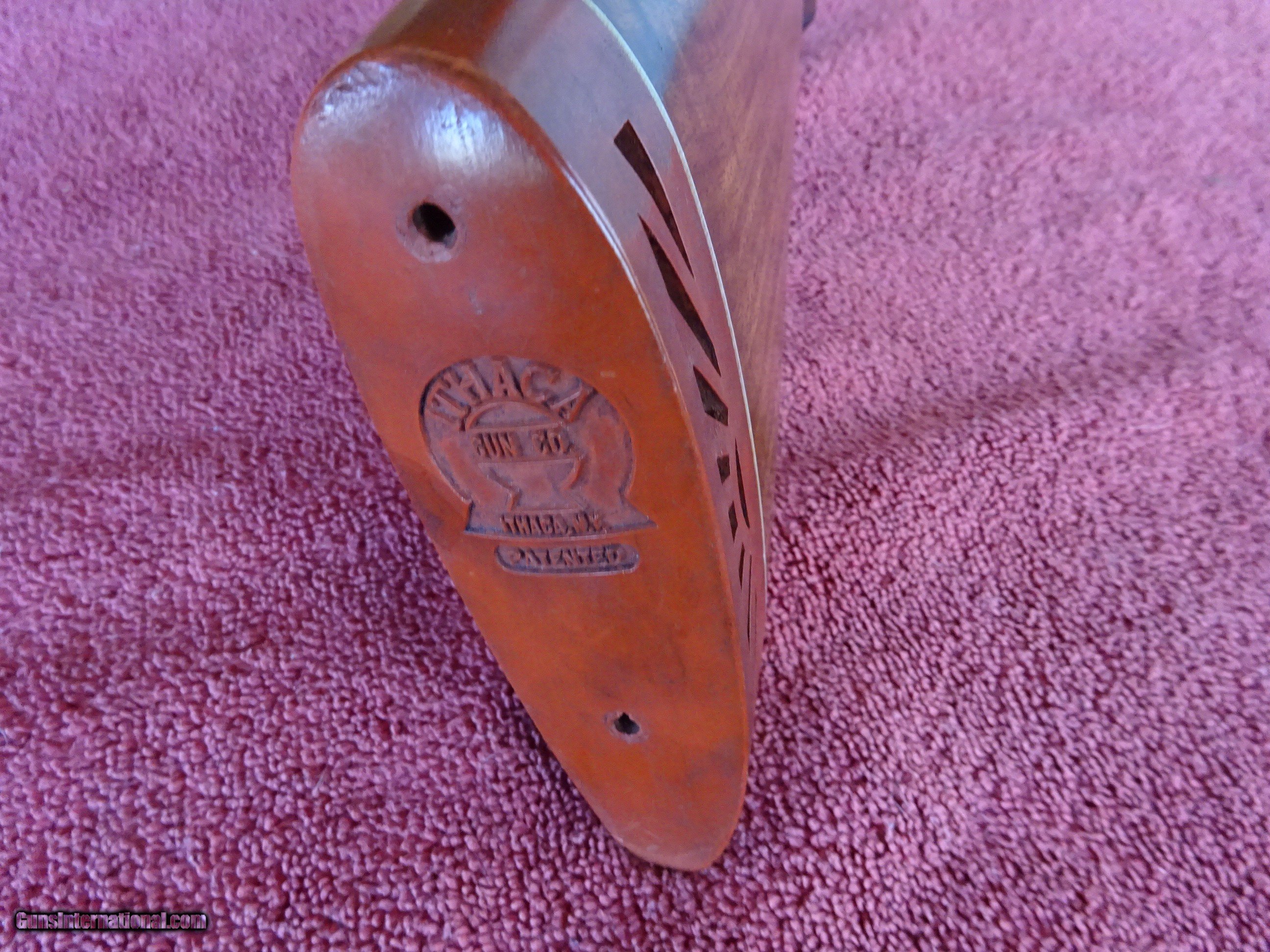 Description: ITHACA FLUES GRADE FOUR 12 GUAGE. 28" BARRELS, MODIFIED AND FULL, 2 3/4" CHAMBERS, SINGLE IVORY SIGHT. EXCELLENT BRIGHT BLUE, MIRROR PERFECT BORES, AUTOMATIC EJECTORS. BOXLOCK FRAME WITH ATTRACTIVE ENGRAVING, A STANDING ROOSTER PHEASANT ON RIGHT SIDE, MALLARD IN FLIGHT ON LEFT SIDE PLUS DEEP CUT ACANTHUS SCROLLWORK, INTRICATED BORDERS, ENGRAVED SCREWS AND GOLD PLATED TRIGGERS. CASE COLOR IN THE PROTECTED AREAS, ALL THE ENGRAVING IS SHARP AND CRISP WITH NO WEAR. TOP LEVER TO THE FAR RIGHT, TIGHT ON FACE. PISTOL GRIP STOCK, SPLINTER FOREARM, VERY FINE CHECKERING WITH FLUER DI LIS PATTERN ON BOTH THE GRIP AND FOREARM. GOLD SHIELD INLAY, EXCELLENT WOOD AND CHECKERING. ORIGINAL GRIP CAP AND ITHACA MARKED SUNBURST PAD, 1 1/2" X 2 5/8" X 14", 7 POUNDS 9 OUNCES. MADE IN 1922. A CLASSIC VINTAGE SPORTING CLAYS GUN. $2450.00 + $70.00 Insured shipping to an FFL address. Layaway is available. See all Pats gun listings on this site! We also have hundreds of ORIGINAL gun company advertising & memorabilia pieces available for sale on our site SPORTINGCOLLECTIBLES. We have no reprints or reproductions. Email for more information. If you need to call, morning or evening is best, and please note the Seller's Inventory number. SOLD Curio/Relic: Yes |
