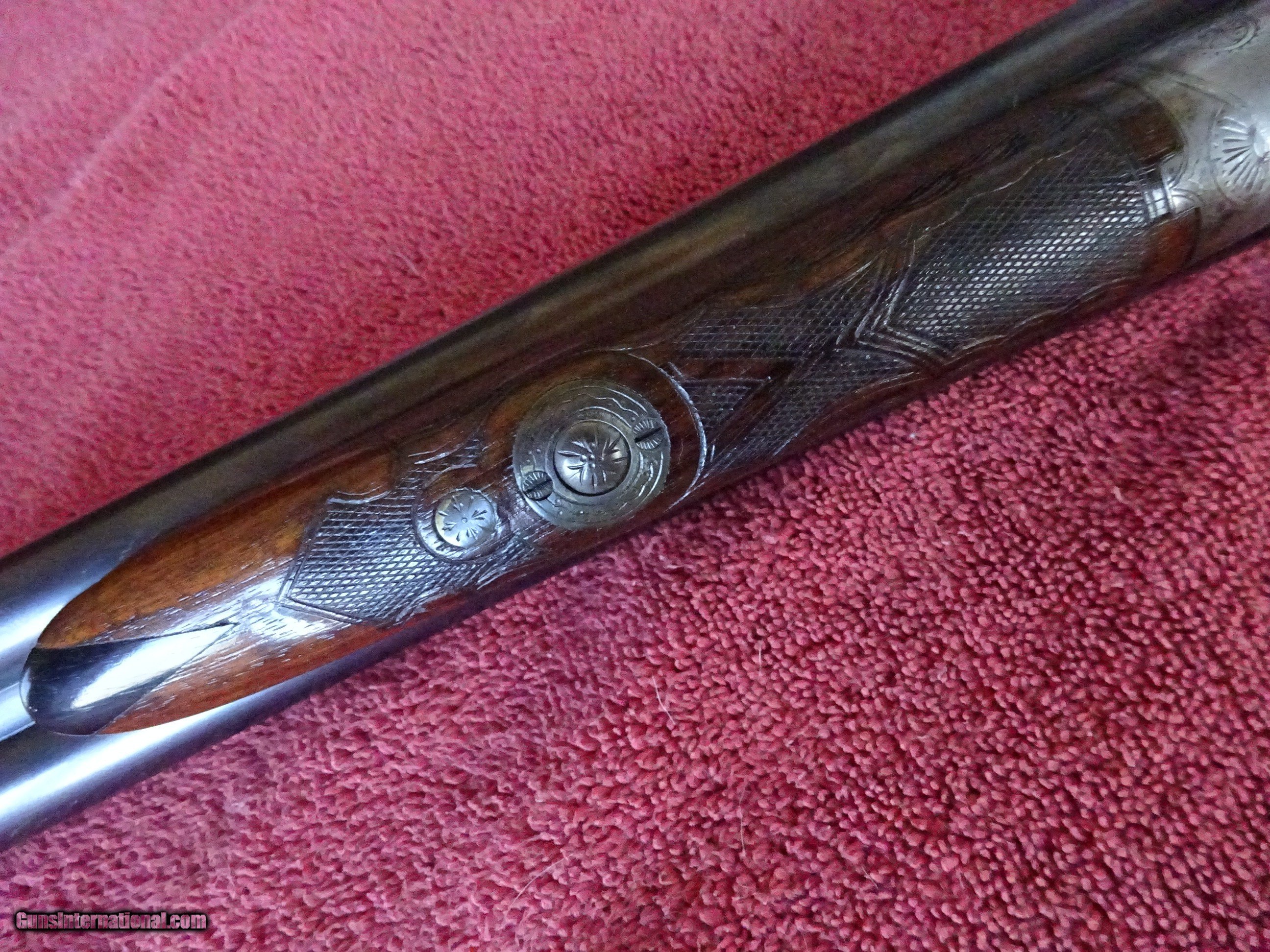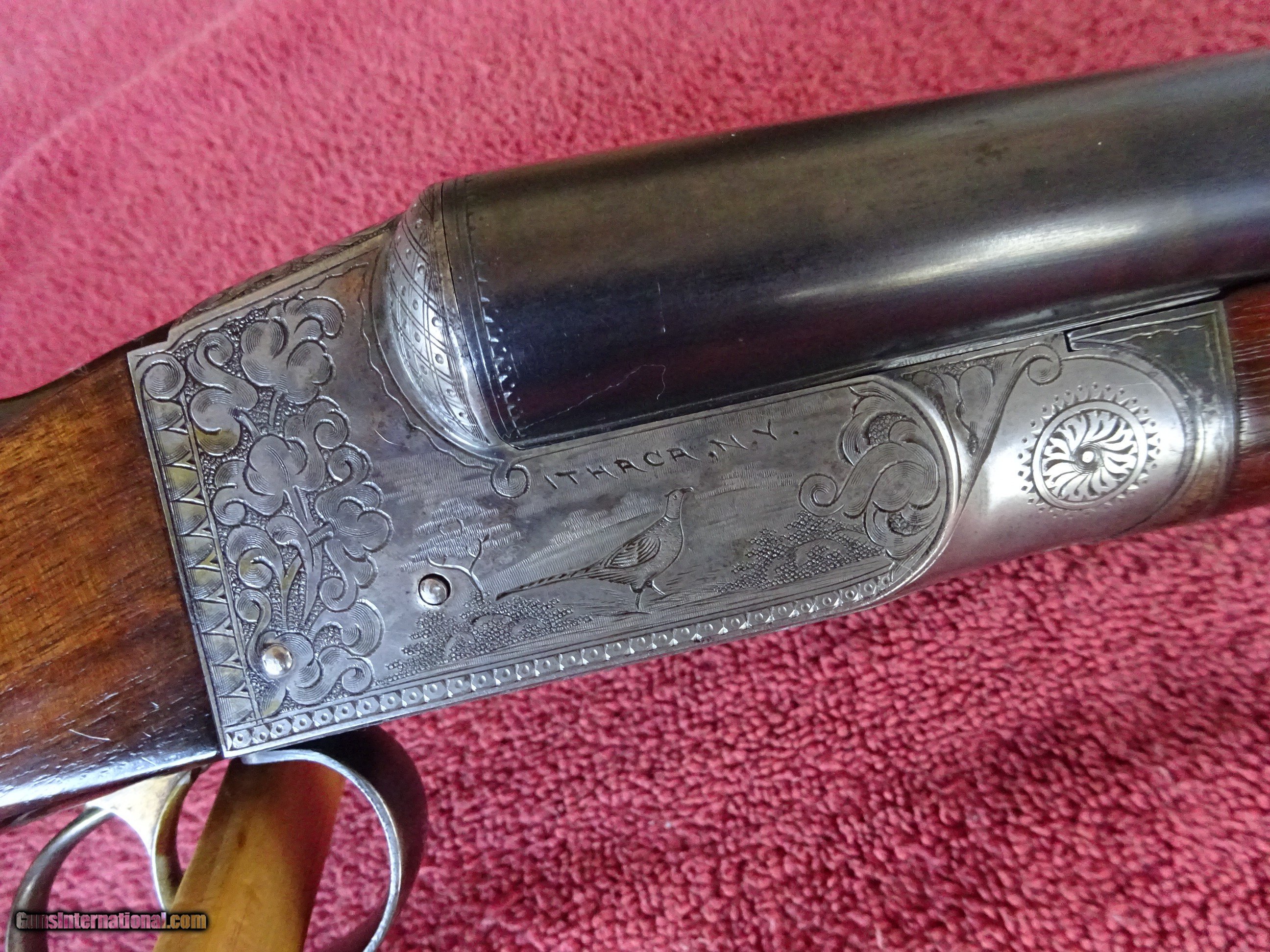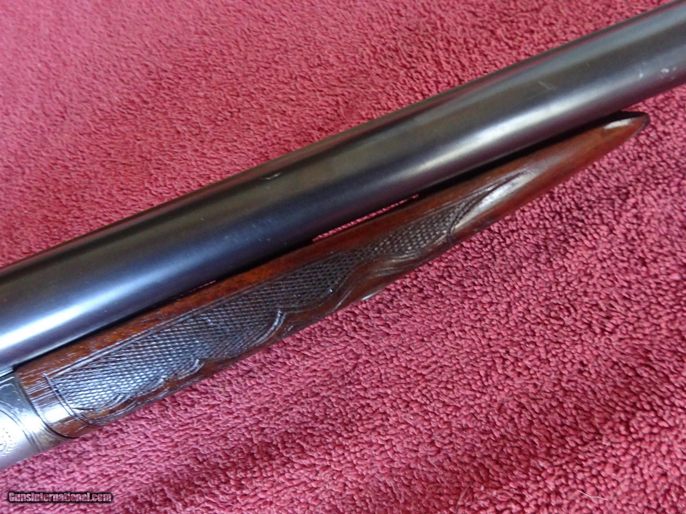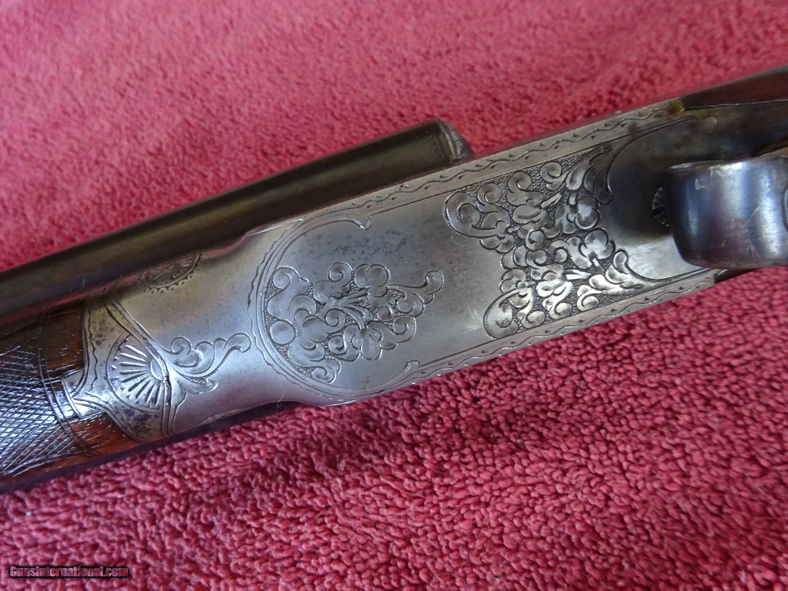 Description: ITHACA FLUES GRADE FOUR 12 GUAGE. 28" BARRELS, MODIFIED AND FULL, 2 3/4" CHAMBERS, SINGLE IVORY SIGHT. EXCELLENT BRIGHT BLUE, MIRROR PERFECT BORES, AUTOMATIC EJECTORS. BOXLOCK FRAME WITH ATTRACTIVE ENGRAVING, A STANDING ROOSTER PHEASANT ON RIGHT SIDE, MALLARD IN FLIGHT ON LEFT SIDE PLUS DEEP CUT ACANTHUS SCROLLWORK, INTRICATED BORDERS, ENGRAVED SCREWS AND GOLD PLATED TRIGGERS. CASE COLOR IN THE PROTECTED AREAS, ALL THE ENGRAVING IS SHARP AND CRISP WITH NO WEAR. TOP LEVER TO THE FAR RIGHT, TIGHT ON FACE. PISTOL GRIP STOCK, SPLINTER FOREARM, VERY FINE CHECKERING WITH FLUER DI LIS PATTERN ON BOTH THE GRIP AND FOREARM. GOLD SHIELD INLAY, EXCELLENT WOOD AND CHECKERING. ORIGINAL GRIP CAP AND ITHACA MARKED SUNBURST PAD, 1 1/2" X 2 5/8" X 14", 7 POUNDS 9 OUNCES. MADE IN 1922. A CLASSIC VINTAGE SPORTING CLAYS GUN. $2450.00 + $70.00 Insured shipping to an FFL address. Layaway is available. See all Pats gun listings on this site! We also have hundreds of ORIGINAL gun company advertising & memorabilia pieces available for sale on our site SPORTINGCOLLECTIBLES. We have no reprints or reproductions. Email for more information. If you need to call, morning or evening is best, and please note the Seller's Inventory number. SOLD Curio/Relic: Yes |