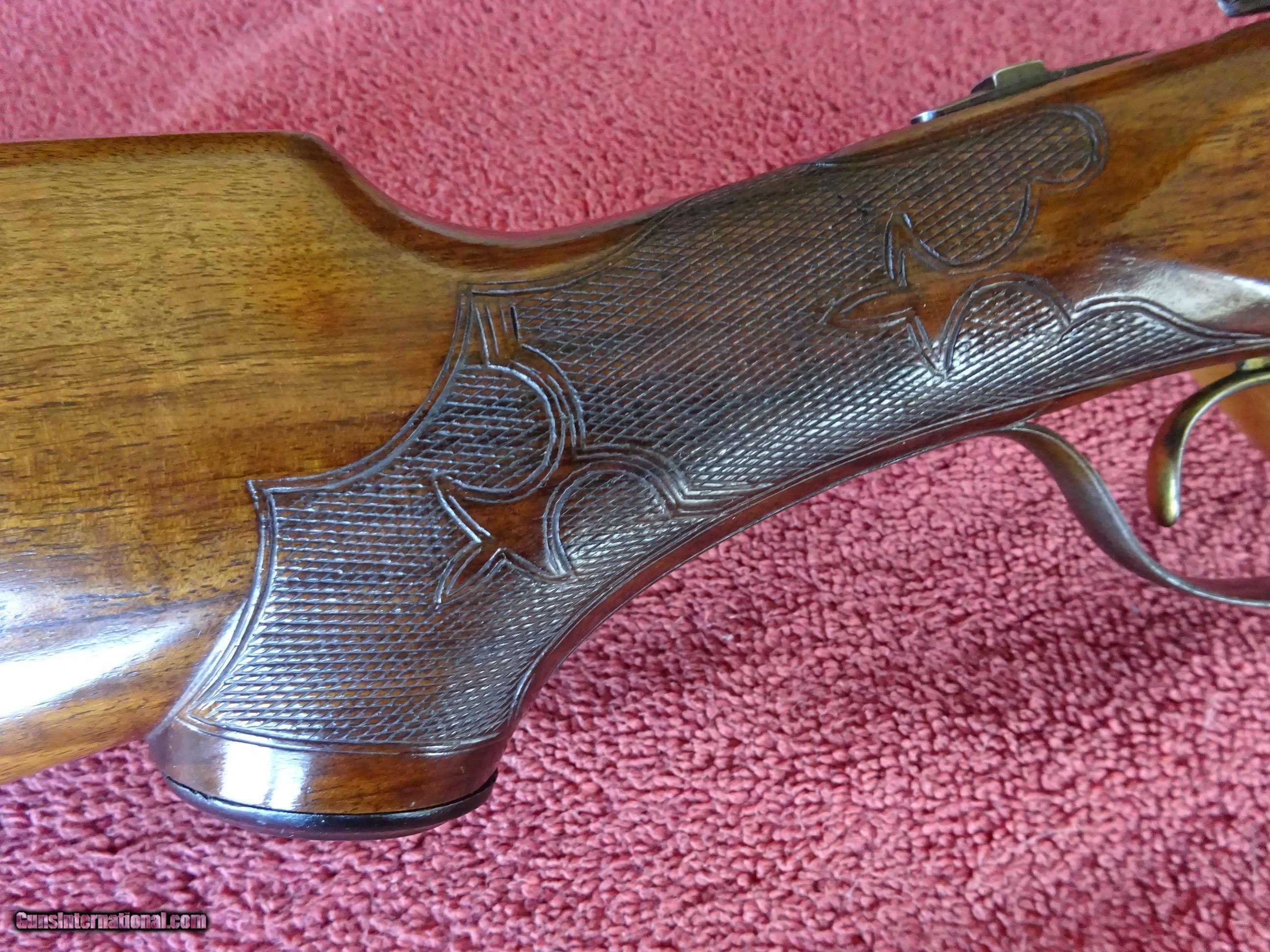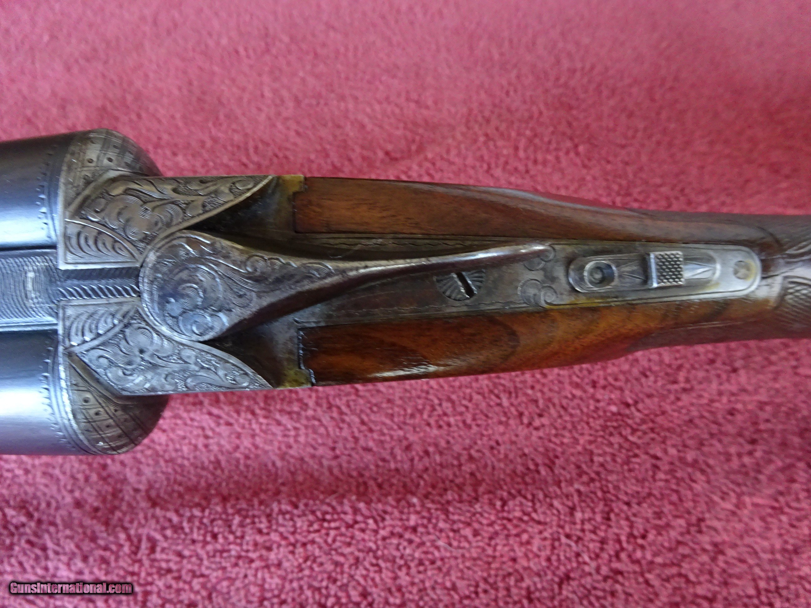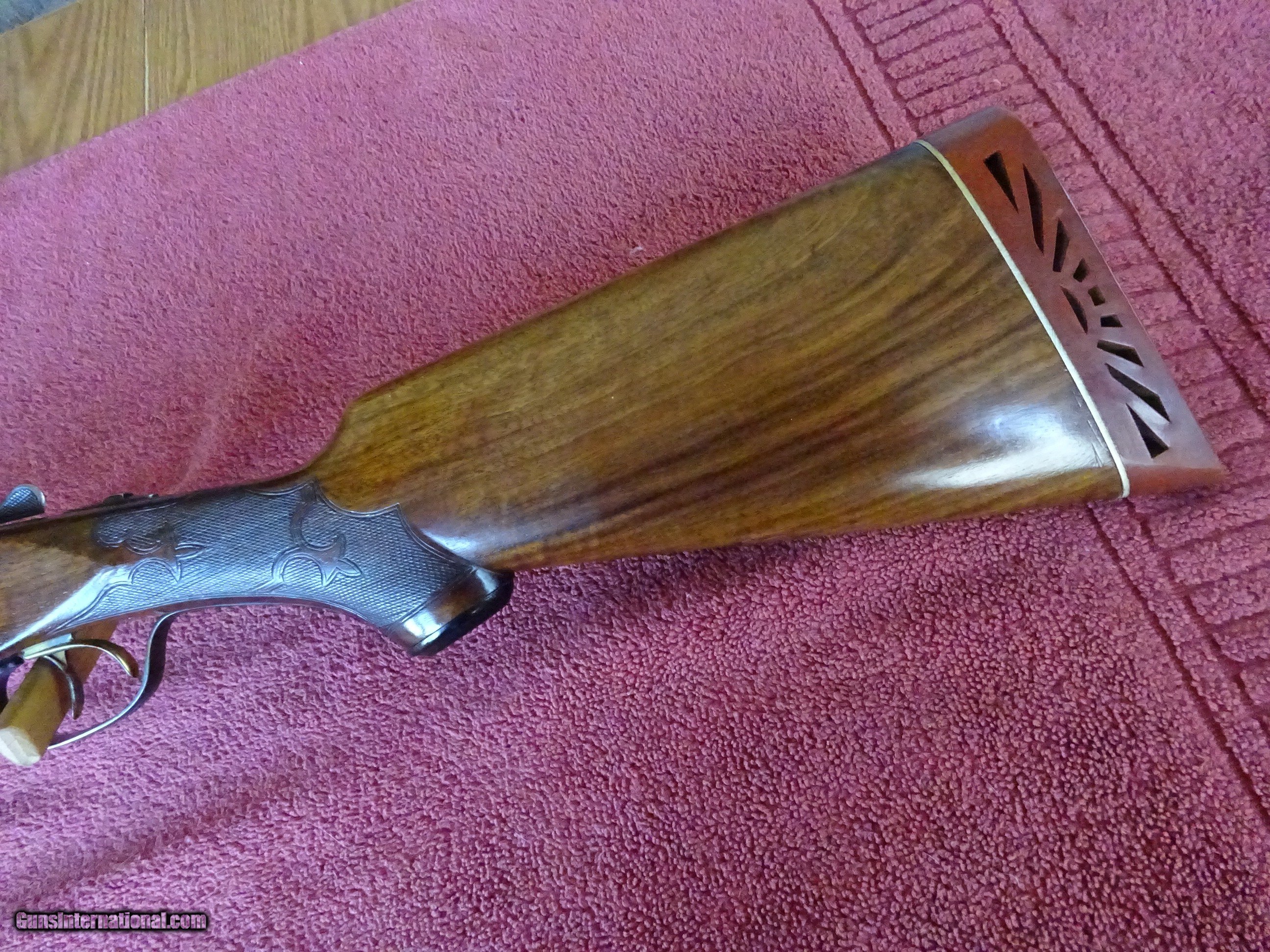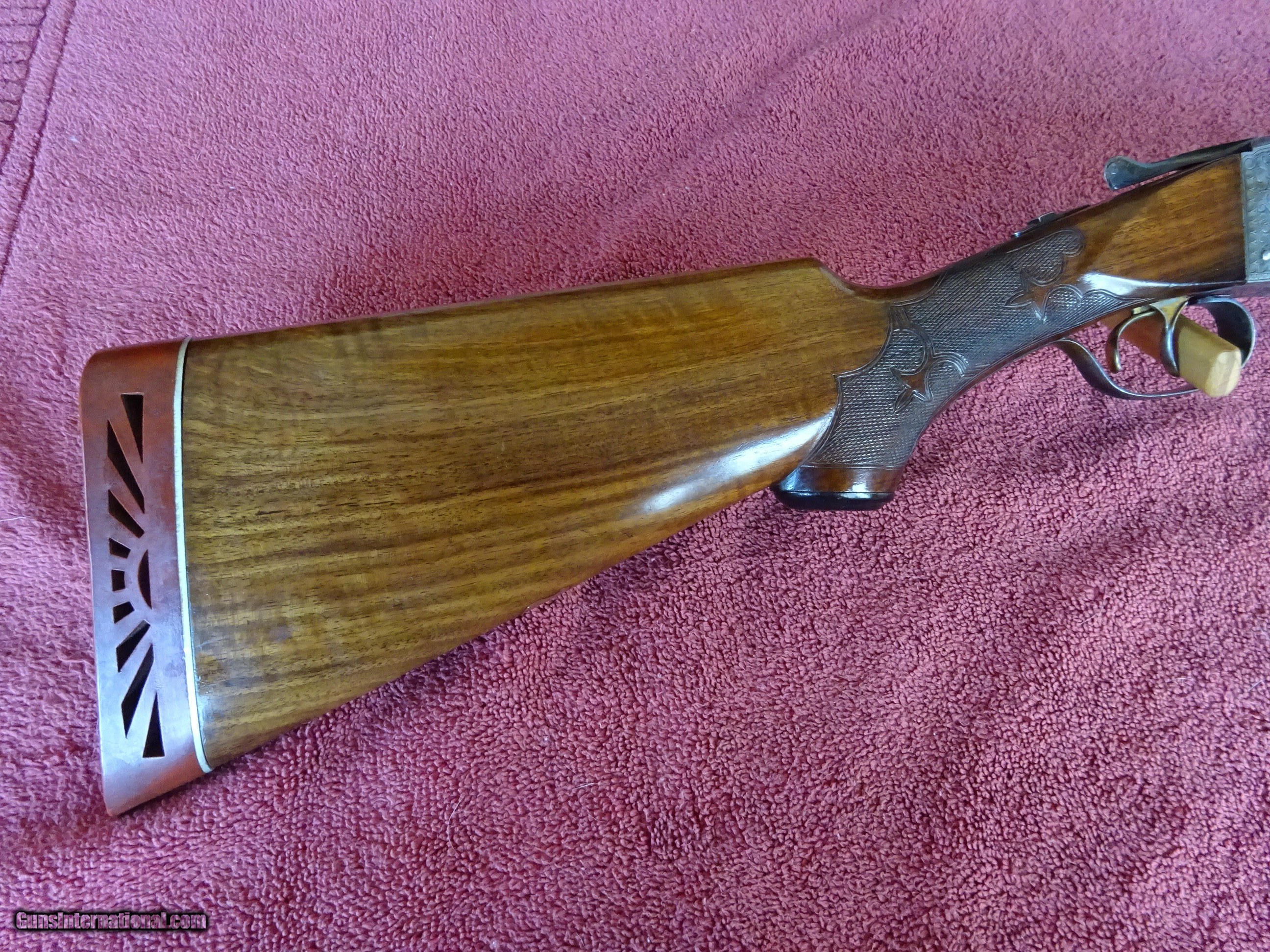 Description: ITHACA FLUES GRADE FOUR 12 GUAGE. 28" BARRELS, MODIFIED AND FULL, 2 3/4" CHAMBERS, SINGLE IVORY SIGHT. EXCELLENT BRIGHT BLUE, MIRROR PERFECT BORES, AUTOMATIC EJECTORS. BOXLOCK FRAME WITH ATTRACTIVE ENGRAVING, A STANDING ROOSTER PHEASANT ON RIGHT SIDE, MALLARD IN FLIGHT ON LEFT SIDE PLUS DEEP CUT ACANTHUS SCROLLWORK, INTRICATED BORDERS, ENGRAVED SCREWS AND GOLD PLATED TRIGGERS. CASE COLOR IN THE PROTECTED AREAS, ALL THE ENGRAVING IS SHARP AND CRISP WITH NO WEAR. TOP LEVER TO THE FAR RIGHT, TIGHT ON FACE. PISTOL GRIP STOCK, SPLINTER FOREARM, VERY FINE CHECKERING WITH FLUER DI LIS PATTERN ON BOTH THE GRIP AND FOREARM. GOLD SHIELD INLAY, EXCELLENT WOOD AND CHECKERING. ORIGINAL GRIP CAP AND ITHACA MARKED SUNBURST PAD, 1 1/2" X 2 5/8" X 14", 7 POUNDS 9 OUNCES. MADE IN 1922. A CLASSIC VINTAGE SPORTING CLAYS GUN. $2450.00 + $70.00 Insured shipping to an FFL address. Layaway is available. See all Pats gun listings on this site! We also have hundreds of ORIGINAL gun company advertising & memorabilia pieces available for sale on our site SPORTINGCOLLECTIBLES. We have no reprints or reproductions. Email for more information. If you need to call, morning or evening is best, and please note the Seller's Inventory number. SOLD Curio/Relic: Yes |