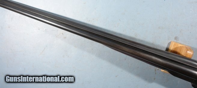 Description: ITHACA FLUES MODEL FIELD GRADE 16 GAUGE SHOTGUN CIRCA 1920. 26” barrels choked Modified and Full with 2 ¾” chambers. Double triggers, extractors and automatic safety. All original in good plus condition. 75% blue and minor case colors on frame with balance turning dark. Stock and forend with well used patinated original finish. Old repair at left oflevr and chip missing at the right of it. Stock still very solid. 14” pull over factory hard rubber butt plate. Tight working order and very good bores. SOLD Curio/Relic: Yes |