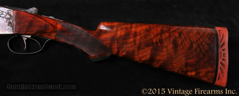 Description: Ithaca Grade 2E 20 Gauge SxS Shotgun 75% CASE COLOR, RARE SWAMPED RIB, NICE! General Specs: Ithaca, Year 1918, 20 Gauge, 6lbs 5oz, Side by Side Serial Number: 293546 Ithaca made over 250,000 Flues model guns, the most prolific of all of their various models of side by side guns created over the years. Collectors of Ithaca guns tend to gravitate toward the NID model that followed the Flues model. My opinion is that the Flues gun is often more desirable in the way of handling characteristics, weight, and balance than the NID, and they have always been reliable, solid little guns. They always had nicer wood and checkering than other makers in the same price range, and over one hundred thousand are still in use today. This gun, sn293546 built in 1918, IS A VERY DIFFERENT GUN THAN THE AVERAGE FLUES GUN YOU WILL SEE FOR SALE. First, this gun has the SUNKEN OR "SWAMPED" RIB, A RARE FEATURE FOUND ON ONLY A HANDFUL OF ITHACA FLUES GUNS as noted in Snyder's book on page 317. This is the 4th one I have owned or seen in 20 years of collecting American double guns. Second, the barrels, trigger guard, forend iron, and receiver all have lots of original factory finishes remaining, with nice 75% case colors. These little guns are most often found with little finish remaining, used hard over the years. The wood has been restored and checkering cleaned up sometime in the past and well done. And third, this gun is blessed with very strong well timed ejectors, not often found on Grade 2 guns. A nice lightweight little 20 gauge that has been well cared for and will make a fine upland and clays gun and increase in value as you enjoy its use. Barrels Barrel Length: 26" Chokes: .010/.024 IC/F factory chokes Bores: excellent Bore Diameter: .615/.614 Wall Thickness: .023/.031 % Blue: 95% Chambers: 2 1/2" Ribs: swamped rib Sights: single Action Action: tight right of center Ejectors or Extractors: ejectors, strong, timed Case Color: 75% Screws: excellent Engraving: clear sharp Trigger Type: double, crisp Trigger Guard Color: 93% Stock Type: capped pistol grip/splinter forend LOP: 14 3/4" LOP To End Of Wood: 13 11/16" DAH: 2 1/8" DAC: 1 7/16" Cast: 0 Checkering Condition: excellent, Forend finer Butt Treatment: Ithaca sunburst and factory plate There are more photos upon request. We offer a 30 day mechanical warranty on this fine shotgun. PLEASE SEE MY OTHER FINE VINTAGE FIREARMS. Just open one of my ads and click on the line that says “see all items from this seller” and a very nice list of fine sporting and collectible arms will appear. I have many more fine sxs shotguns not yet listed. Thanks for looking! We employ a full time gunsmith on premises and can perform alterations to suit your needs within a few weeks of purchase. Payment Methods: Money Order, Certified Check, Personal Check, Wire Transfer Inspection Period / Return Policy: Three Days from the date the item was received. Sales Tax: 6% Michigan Only Shipping & Insurance: Ground $45.00 We ship internationally! Item Condition: Used Requires FFL?: Yes If you have any questions about this item or payment, please email or call us directly, at #616-292-6240.Thanks! Vintage Firearms, Inc SOLD Curio/Relic: Yes |