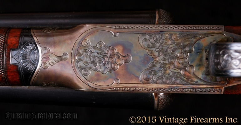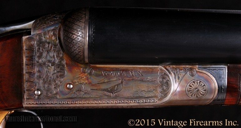 Description: Ithaca Grade 4E 10 Gauge SxS Shotgun FACTORY ORIGINAL MINT CONDITION, RARE! General Specs: Ithaca, Year 1925, 10 Gauge, 9lbs 4oz, Side by Side Serial Number: 390889 This is an incredible find! They made scant few Ithaca Flues Grade 4 10ga. guns, especially with fluid steel barrels and ejectors. Then to find one with literally all of its factory original finishes intact, showing little to no use in its lifetime, that is the Holy Grail for big bore Ithaca collector/shooters. Built in 1925, sn390889 weighs 9 1/4lbs. with its 32" barrels. The gun is choked Modified and Full from the factory, marked that way on the barrel flats, and is unaltered in anyway, inside or out. From the original buttplate, to the 99.5% vivid factory case colors and blue, jeweling still present on the breech face, mirror bores, 2 7/8" chambers, to the tight as new action and strong well timed ejectors, this is likely the very fines example of the Grade 4E Flues 10ga. in existence. Even the wood finish is 99% and factory original. I have never seen such a fine example of original Flues in any gauge. The "BIG TEN", as they call the 2 7/8" 10ga., is an exceptional waterfowl and turkey gun, with a very short shot string delivering far more pellets on target at the moment of impact than a similar load from a 12ga. gun. Load this gun up with 1 3/8 oz. load and it will devastate ducks and geese. From an investment standpoint, RARITY AND CONDITION IS HIGHLY SOUGHT AFTER, AND THIS GUN HAS BOTH. Don't let this one get away. I can safely say you will never have another chance of an example this nice. Barrels Barrel Length: 32" Chokes: .022/.038 M/F Marked 2 and 4 factory Bores: mirror Bore Diameter: .762 both Wall Thickness: .042/.044 % Blue: 100% factory Chambers: 2 7/8" Ribs: tight Sights: double white Action Action: tight, way right of center Ejectors or Extractors: ejectors, strong, timed Case Color: 99.5% vivid factory Screws: excellent Engraving: sharp new Trigger Type: gold double, crisp Trigger Guard Color: 99.5% factory Stock Type: capped pistol grip/spl LOP: 14 1/8" LOP To End Of Wood: 13 13/16" DAH: 3" DAC: 1 7/8" Cast: 1/8" on Checkering Condition: excellent, factory Butt Treatment: factory butt plate There are more photos upon request. We offer a 30 day mechanical warranty on this fine shotgun. PLEASE SEE MY OTHER FINE VINTAGE FIREARMS. Just open one of my ads and click on the line that says “see all items from this seller” and a very nice list of fine sporting and collectible arms will appear. I have many more fine sxs shotguns not yet listed. Thanks for looking! We employ a full time gunsmith on premises and can perform alterations to suit your needs within a few weeks of purchase. Payment Methods: Money Order, Certified Check, Personal Check, Wire Transfer Inspection Period / Return Policy: Three Days from the date the item was received. Sales Tax: 6% Michigan Only Shipping & Insurance: Ground $65.00 We ship internationally! Item Condition: Used Requires FFL?: Yes If you have any questions about this item or payment, please email or call us directly, at #616-292-6240. Thanks! Vintage Firearms, Inc SOLD Curio/Relic: Yes |