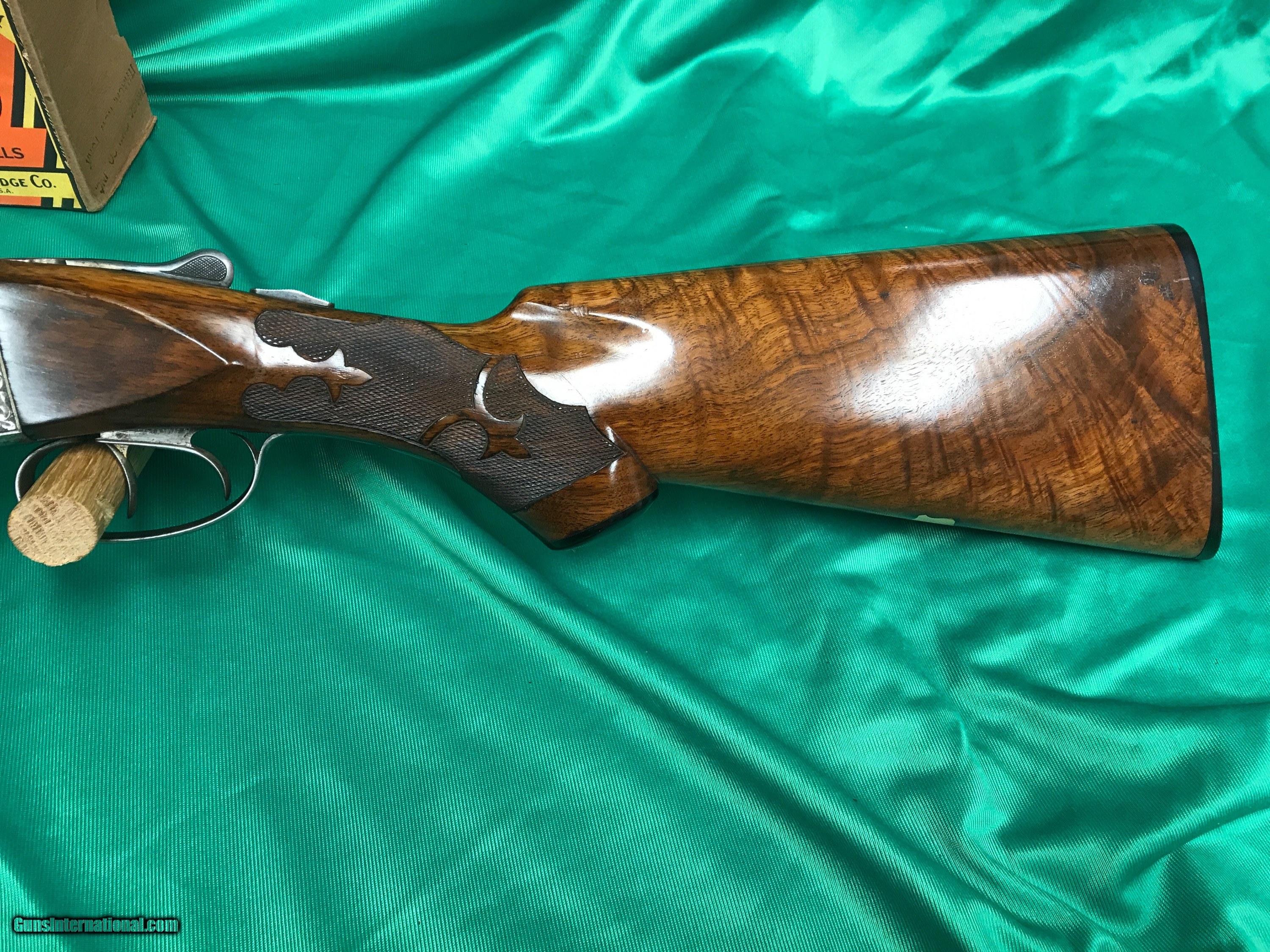 Description: I have an Ithaca NID grade 4E 12 Ga that was built in 1927 , the gun features 30'' barrels that are choked I/CYL-I/MOD .010-.020 , Ejectors , cocking indicators , LOP is 14 1/2 '' to an Ithaca hardplate , wieght is 7.8 pounds , DAC 1 3/4'' DAH 2 1/2'' , Double triggers., This gun would look great in any collection , the wood is free of cracks or splits , barrels are rust free and bores are perfect with 2 3/4'' chambers . Feel free to call with questions 607-227-4088 607-539-6271 or e-mail thanks for looking Brian Hunt SOLD |