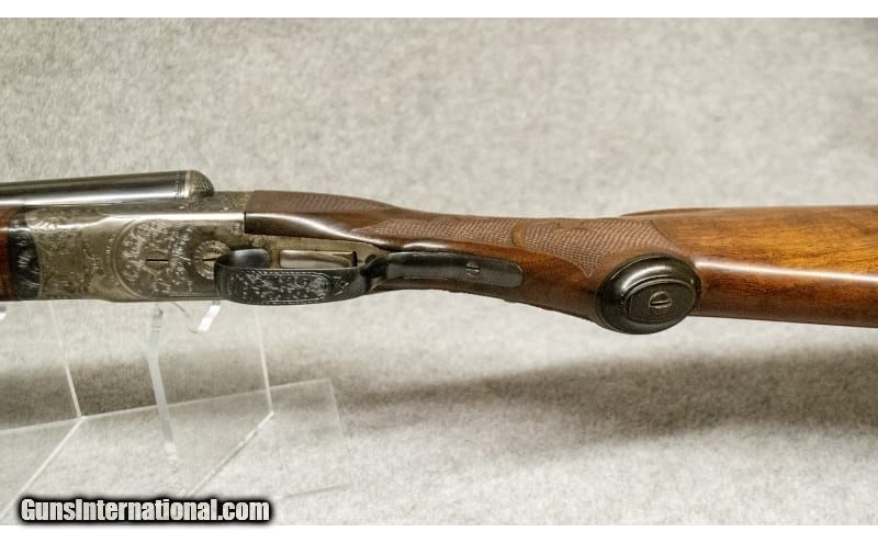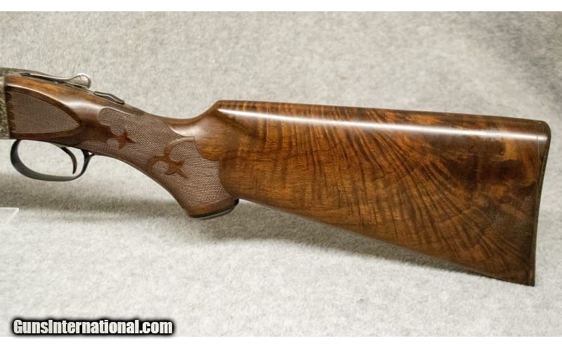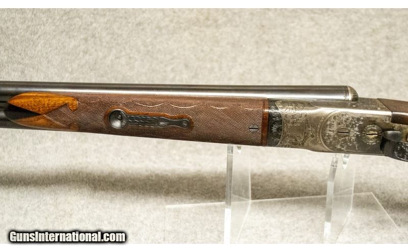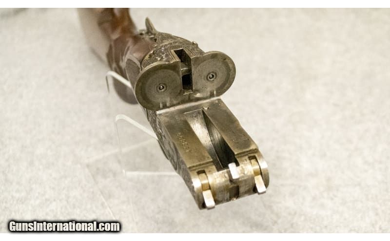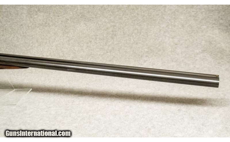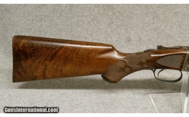 Description: This is a high-grade Ithaca side-by-side shotgun, chambered in 12 gauge, 2 3/4" shells. It comes heavily engraved with scroll work and scenes of a woodcock on the right side of the receiver, and a pheasant on the left. The grip is checkered with a fleur-de-lis pattern. It has a single trigger, which fires the right barrel first. All of the serial numbers on the various sections of the gun match. 12 Gauge SOLD Chambers: 12 Gauge Metal Condition: Excellent Wood Condition: Excellent Bore Condition: Excellent Barrels: 30 Triggers: Single Trigger Stock Dimensions: "LOP: 13 7/8"", Drop at Comb: 1 1/4"", Drop at Heel 1 7/8"" Fore End: "High Grade Walnut, Checkered Butt Pad: Hard Plastic Sights: Single Brass Bead Item Location: Greenville, SC |