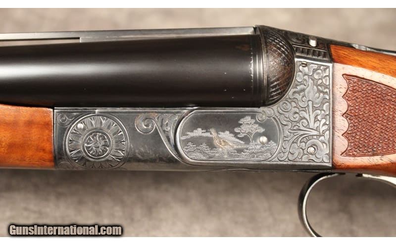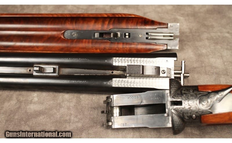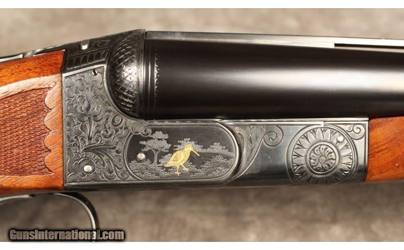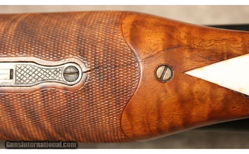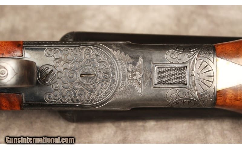 Description: Ithaca NID 5E 12 gauge mfg 1932 with 32" xtra full / imp cyl "Best Fluid steel" barrels. Vent rib with Ivory mid-bead and red fiber optic front. Ejectors. Shiny bores / chambers 2.75. Typical 5E engraving w/ pheasant left side and woodcock right side (pheasant has lost all gold inlay) no engravers signature present. Pistol grip sock with fluer-de-lis checkering and adjustable Morgan pad added ( 13" from trigger to end of wood, 14 5/8 from trigger to end of pad). Beavertail forend has a 2" crack on bottom side but does not appear to run completely through the wood. One of only 155 Grade 5e guns produced. Please refer to the photo's 12 Gauge SOLD Curio/Relic: Yes Chambers: 2.75 Metal Condition: Bbl 98% blue / Action 85% blue Wood Condition: Excellent w/ some scratches / dings / (2 inch crack in forend) Bore Condition: Excellent Barrels: 32 Triggers: single Stock Dimensions: Pistol grip w/ fluer-de -lis checkering Fore End: Beavertail with 2 white inlays Butt Pad: Morgan adjustable Weight: 9lbs Sights: Ivory mid bead / red fiber optic front Chokes: Left extra full .044 / right Imp Cyl .028 Item Location: Mesa, AZ |