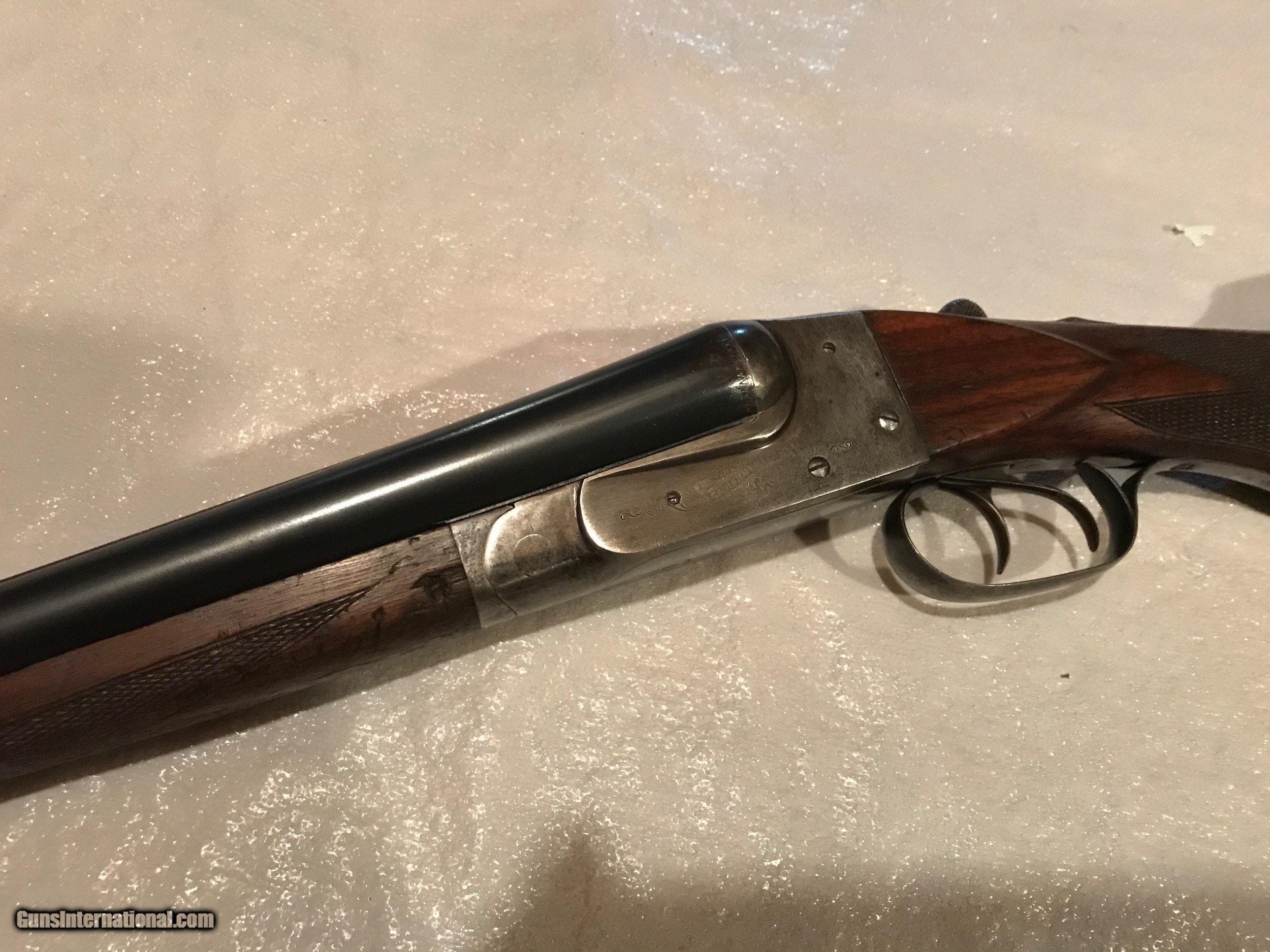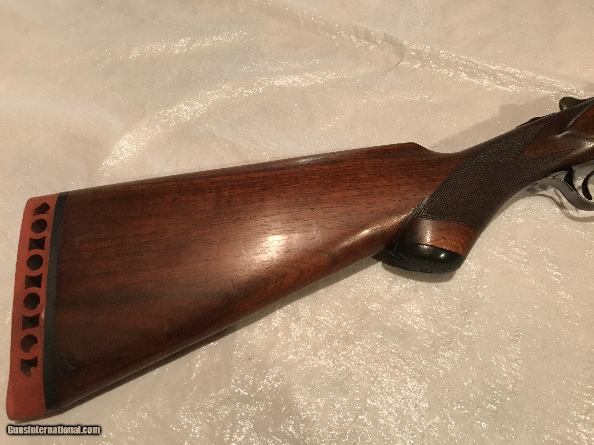 Description: SOLD. Nice shotgun would make a great upland gun. $45.00 shipping SOLD Curio/Relic: Yes Serial Number: 93066 Chambers: 2 5/8” Ejectors: No Condition: Very good Wood Condition: Good Bore Condition: Bright and shiny Barrels: 85% blue 26'' Barrel Type: Steel Triggers: 2 Gauge Info: 16 Stock Comb: 1 3/4” Stock Heel: 3 1/8” LOP: 14 5/8 to end of pad. 14” to end of wood. Weight: 6 lb. 14 1/2 oz. Manufacture Date: 1903 Choke Left: Imp. Mod. .020” Choke Right: Ic. .005” |