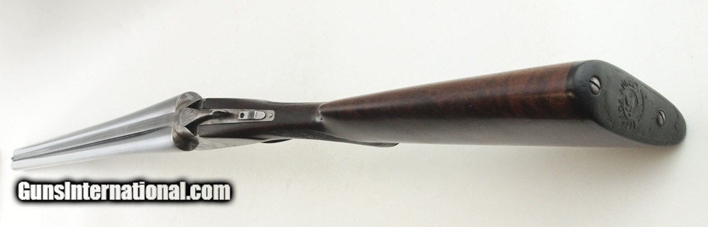 Description: Ithaca Hammerless Flues SXS Grade 1 1/2 MFG 1915 12 GA, matching numbers, 28" fluid steel IMP CYL bbls, bright shiny smooth bores, blued finish, metal bead front sight, boxlock, extractors, double triggers, nice hardwood pistol grip stock - forearm, engraved receiver, LOP - 13 7/8", DAC - 1 7/8", DAH - DAH - 2 7/8", and Ithaca Guns Co. butt plate. Add 3% for Credit Card Shipping $35.00 SOLD |