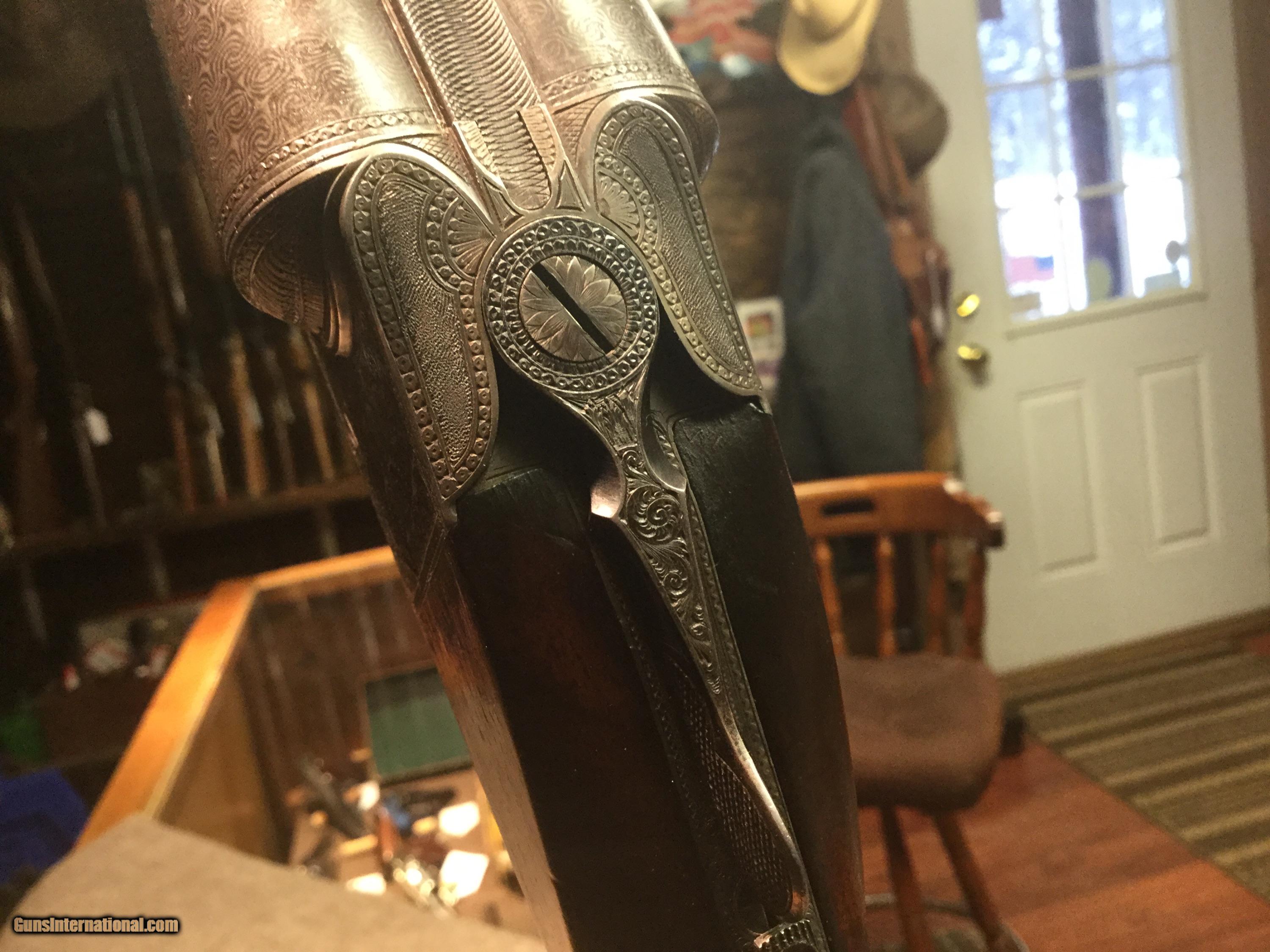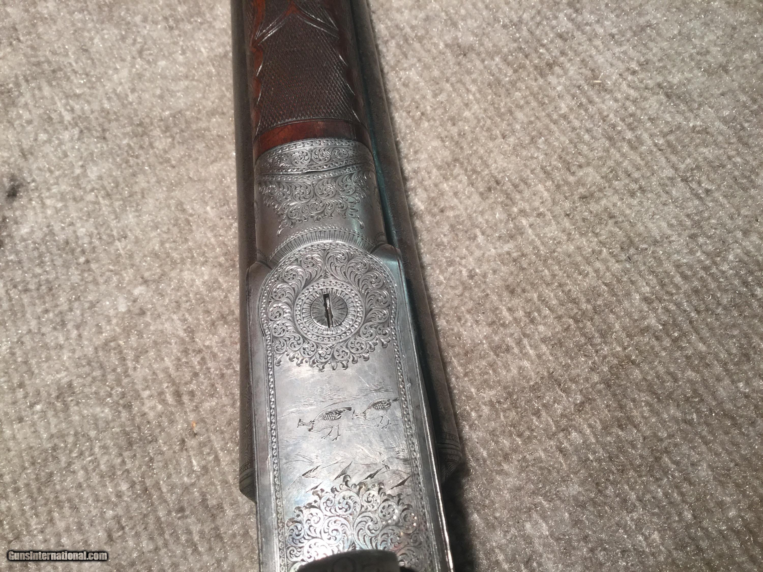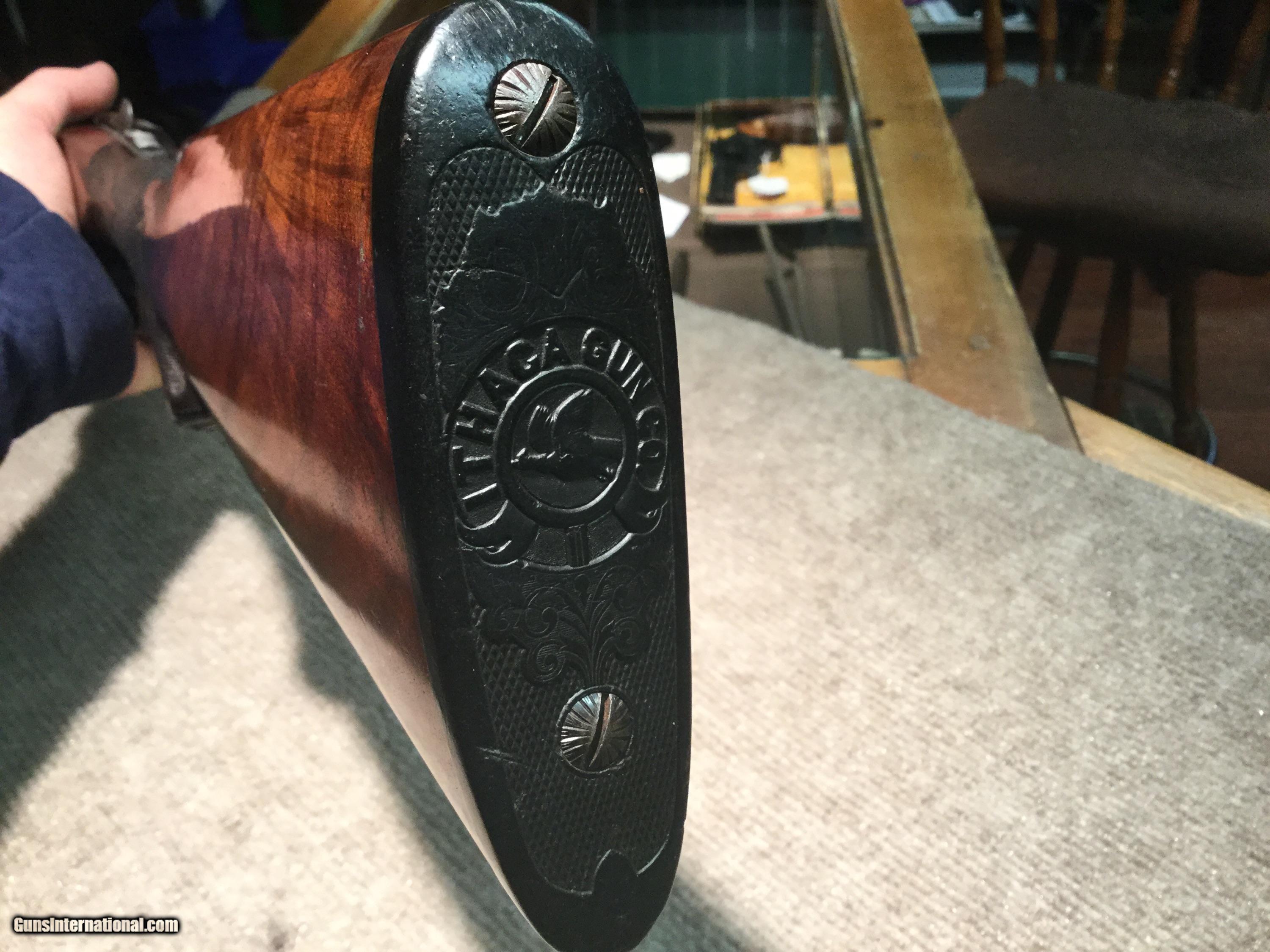 Description: This is a Ithaca High grade side by side shotgun in 12 ga This high grade boxlock has high grade 3 XXX wood carved and the very best engraving , Excellent condition for being made in around 1910 Comes factory with an 13 1/4 LOP special orderd has not been cut .left barrel hammer dosen’t hold cocked position.very solid This 5 E deluxe 30” shotgun is Beautiful.Please look at all pictures ,Questions call richard at 406-407-0698 SOLD Curio/Relic: Yes Manufacturer: Ithaca Model: 5 E Minier Serial Number: 119xxx |