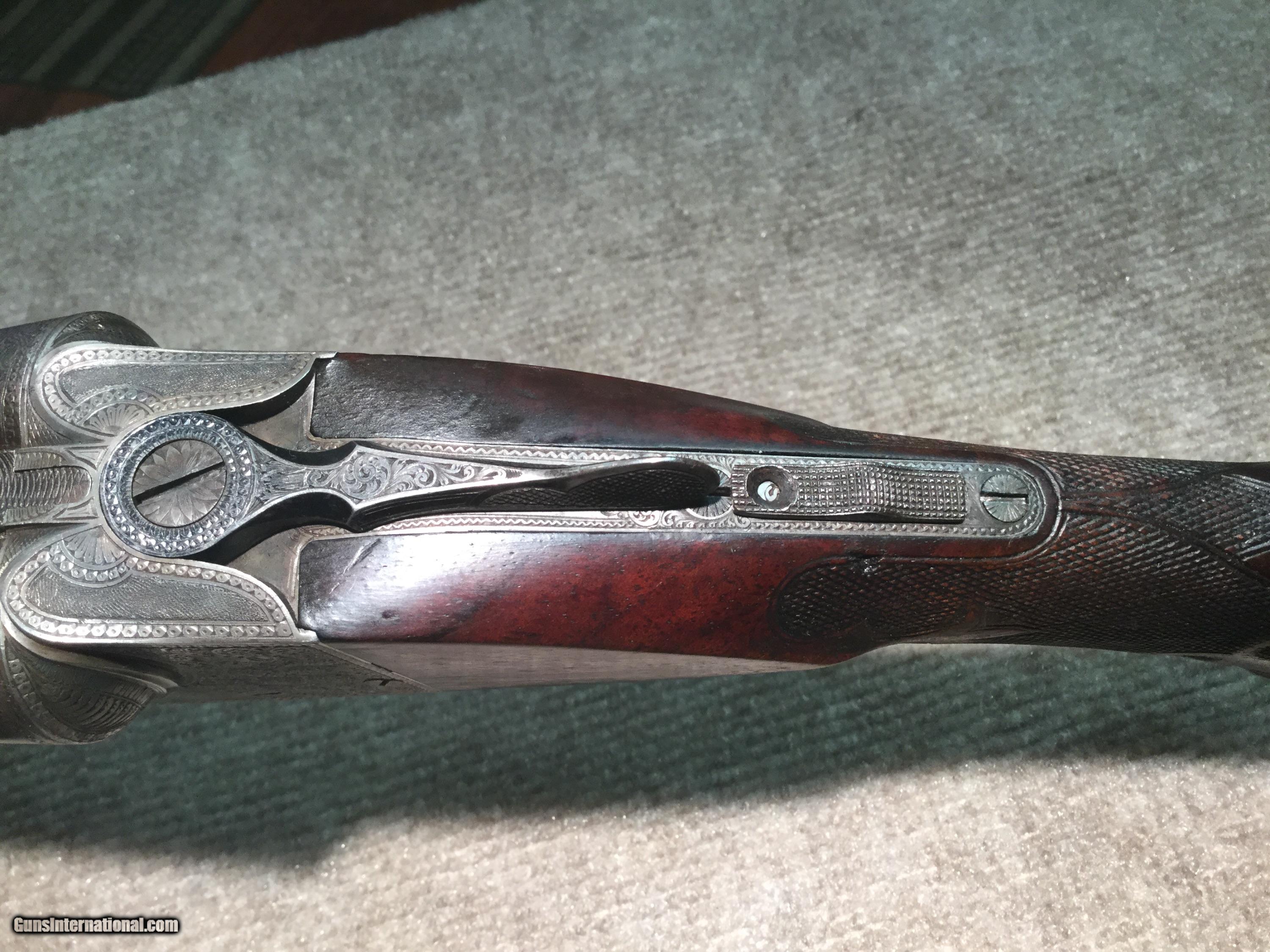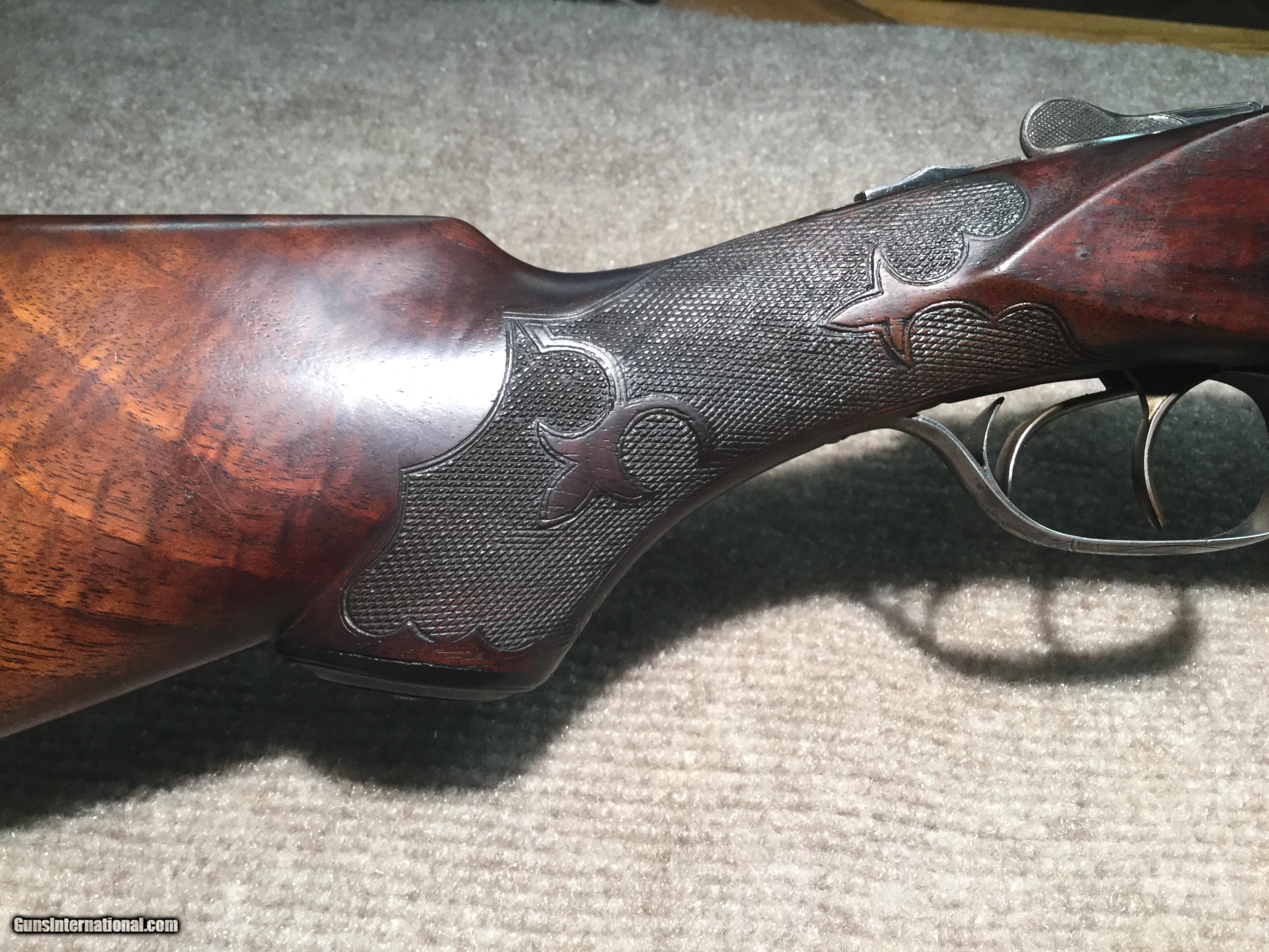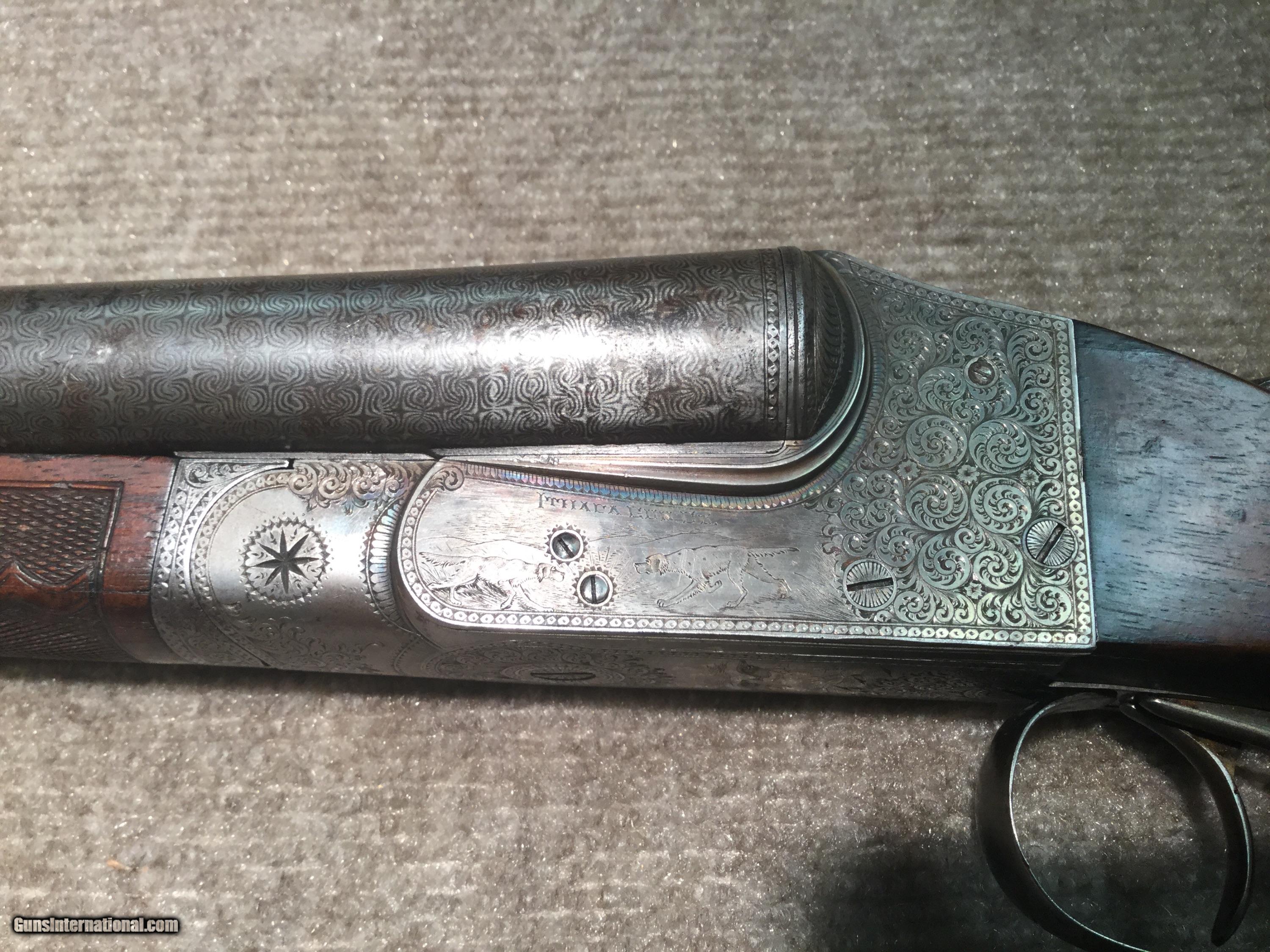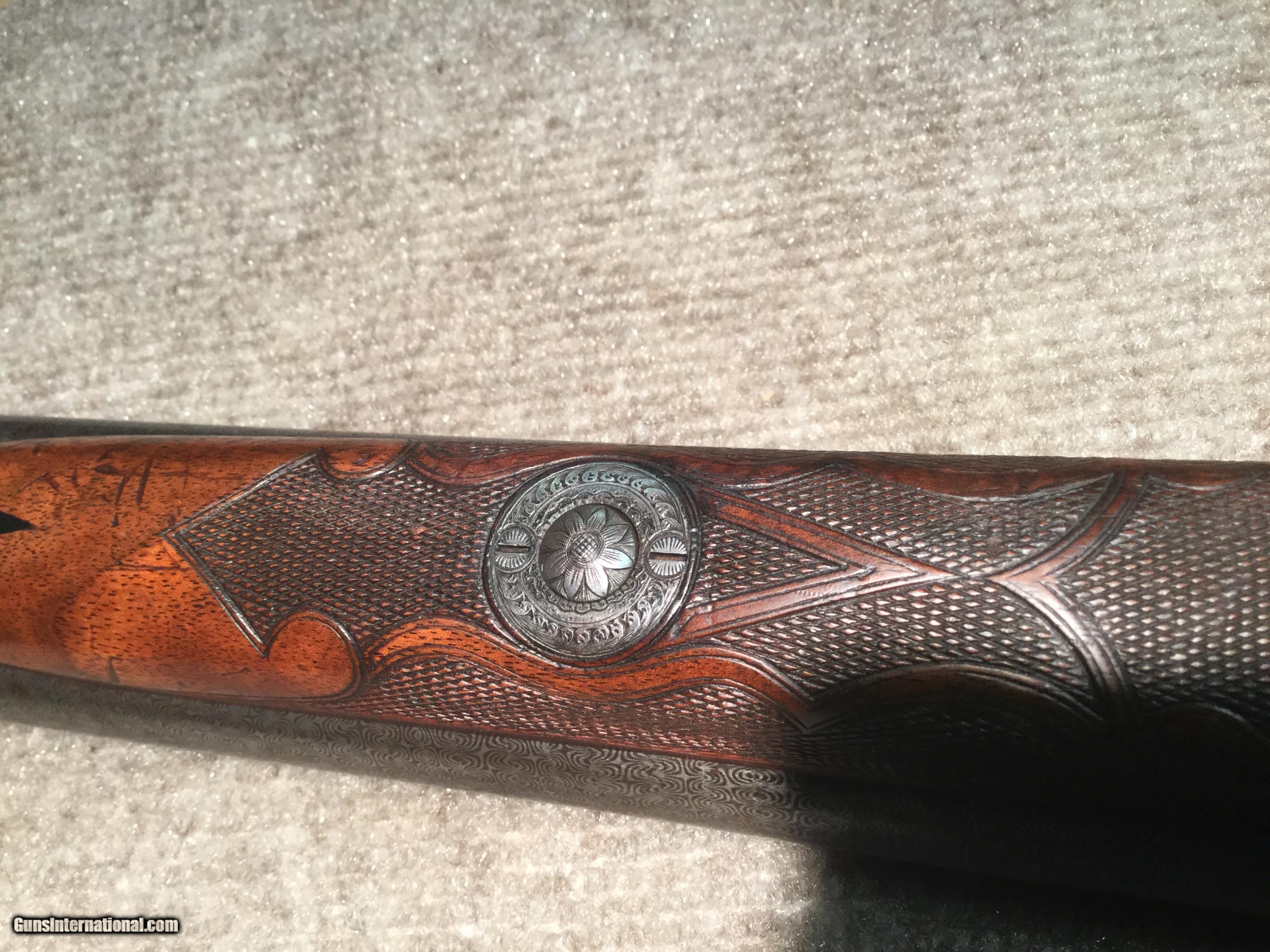 Description: This is a Ithaca High grade side by side shotgun in 12 ga This high grade boxlock has high grade 3 XXX wood carved and the very best engraving , Excellent condition for being made in around 1910 Comes factory with an 13 1/4 LOP special orderd has not been cut .left barrel hammer dosen’t hold cocked position.very solid This 5 E deluxe 30” shotgun is Beautiful.Please look at all pictures ,Questions call richard at 406-407-0698 SOLD Curio/Relic: Yes Manufacturer: Ithaca Model: 5 E Minier Serial Number: 119xxx |