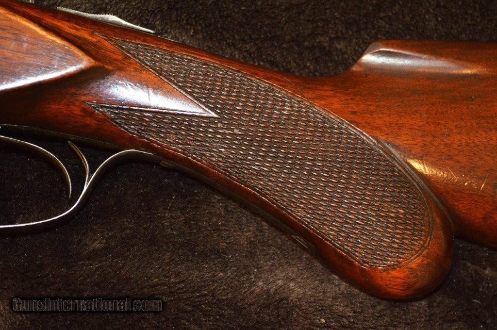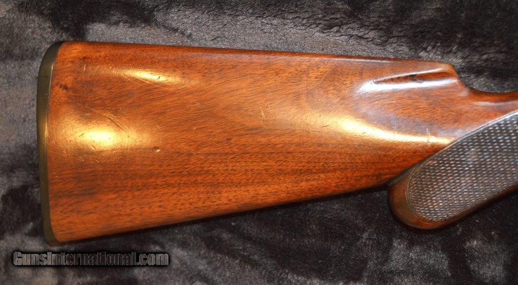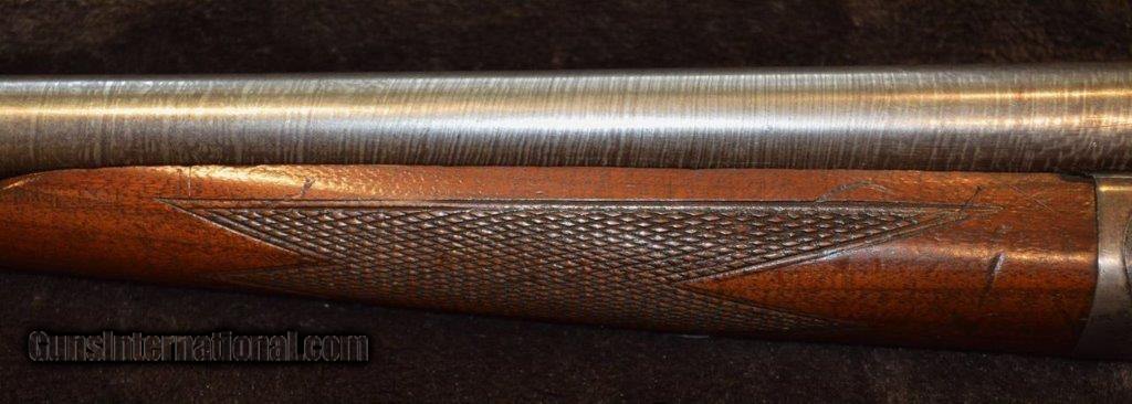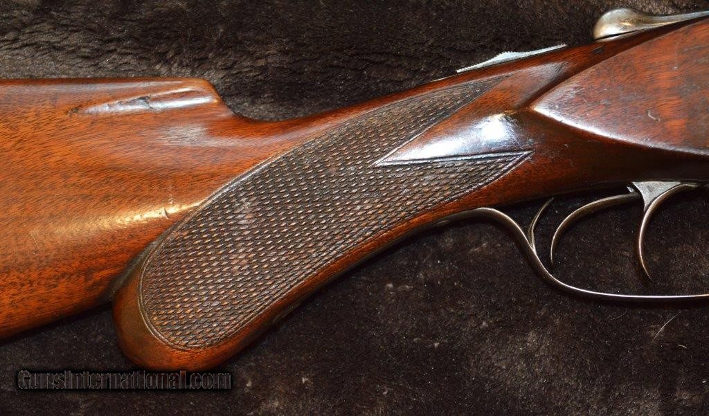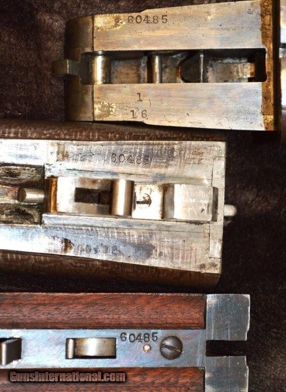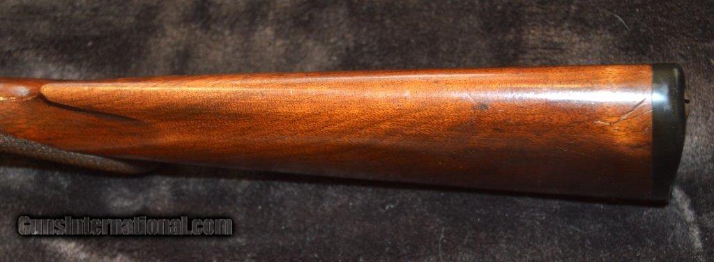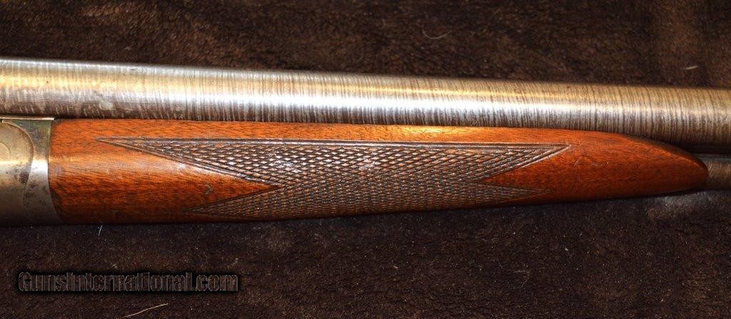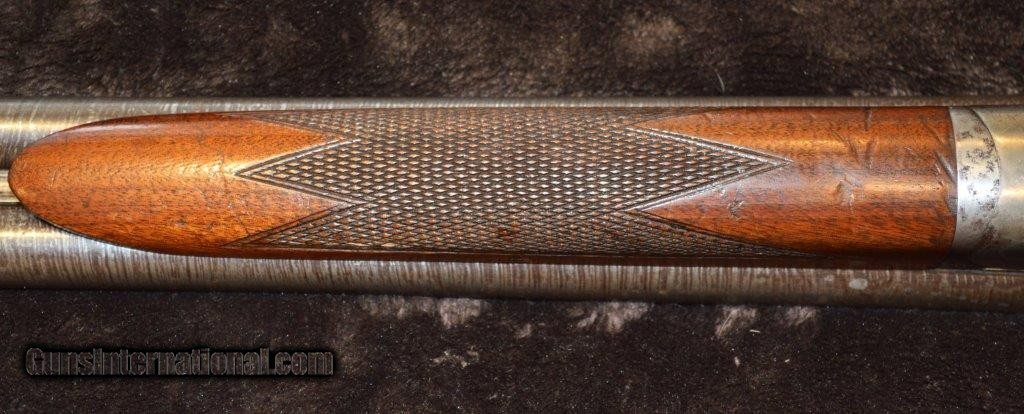 Description: PRICE REDUCED! This is an Ithaca Lewis era 16 gauge grade 1 with 28" damascus steel barrels that is a boxlock action with extractors and double triggers in reasonably good condition. Importantly, the screws are in good shape. As you can see in the pictures there is a good amount of case color on the frame. It is choked Skeet & IC which are great hunting chokes and it has 2-3/4" chambers. It has a checkered pistol grip stock and forearm with attractively figured wood and it is nicely checkered. The length of pull is 13-1/2" to a factory butt plate. Made in 1901. SOLD Curio/Relic: Yes |