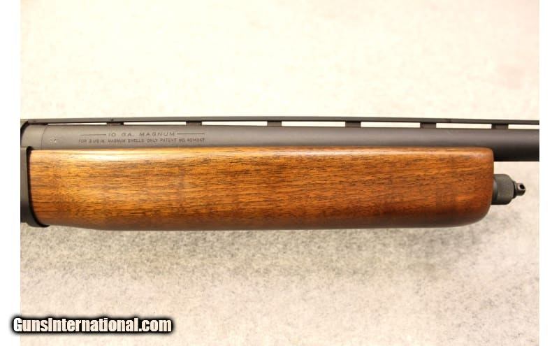 Description: This Ithaca Mag-10 chambered in 10 GA features, excellent finish, white bead front sight, choked and ribbed barrel, rubber recoil pad, and Hardwood furniture. 10 Gauge SOLD Metal Condition: Excellent Wood Condition: Excellent Bore Condition: Bright Barrels: 32 Weight: 11.2 lbs Item Location: Hoffman Estates, IL |