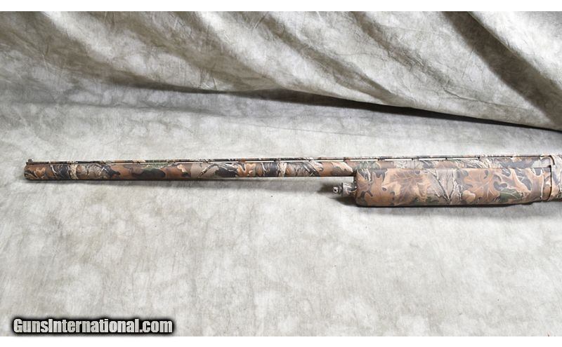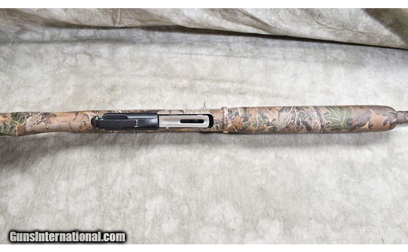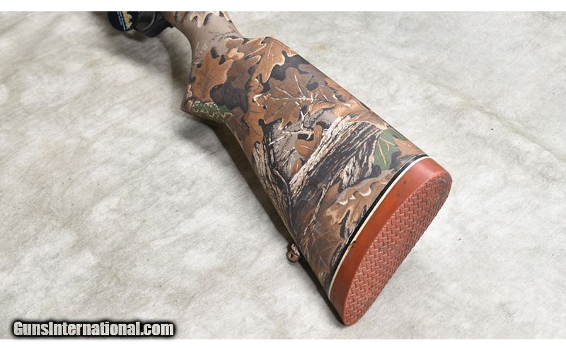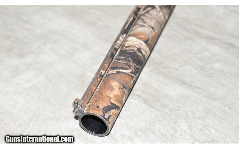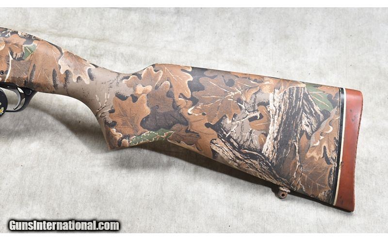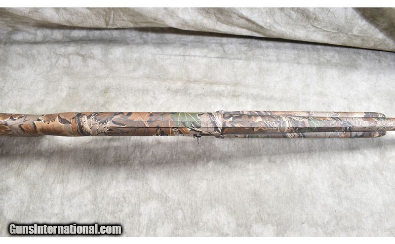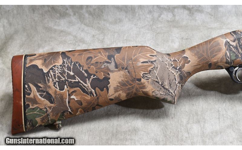 Description: Ithaca's famous 10-gauge semiautomatic "goose" gun. Features include full-camo coverage, soft recoil pad, over-size trigger guard (for gloved had use), and a shiny bore. 10 Gauge SOLD Chambers: 2 - 3-1/2 inch Metal Condition: Very good. Some wear on the camo coating. Wood Condition: Very good. Bore Condition: A little dark but shiny. Barrels: 32-inch Triggers: Factory trigger. Stock Dimensions: 14-1/8 inch LOP. Fore End: Matching camo. Butt Pad: Rubber pad. Weight: 11 lb - 1 oz Sights: Ventilated rib with white bead. Chokes: Fixed Full choke Item Location: Rogers |