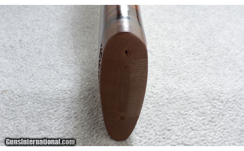 Description: This Ithaca Mag-10 Deluxe has seen time in the field. The finish wear on the action has been touched up with cold blued. The barrel was cut to 26 inches and screw in choke tube added. 10 Gauge SOLD Chambers: 3 1/2 inch Metal Condition: "Fair, with finish wear touched up with cold blue Wood Condition: Refinished in very good with some scratches and dents Bore Condition: Very good with signs of use Barrels: 26 inch barrel Stock Dimensions: 14 1/4 inch LOP Fore End: Checkered walnut Butt Pad: Ithaca recoil pad Weight: 11 lbs. Sights: Vent rib with white front bead Chokes: Interchangeable choke tube Item Location: Lehi, UT |