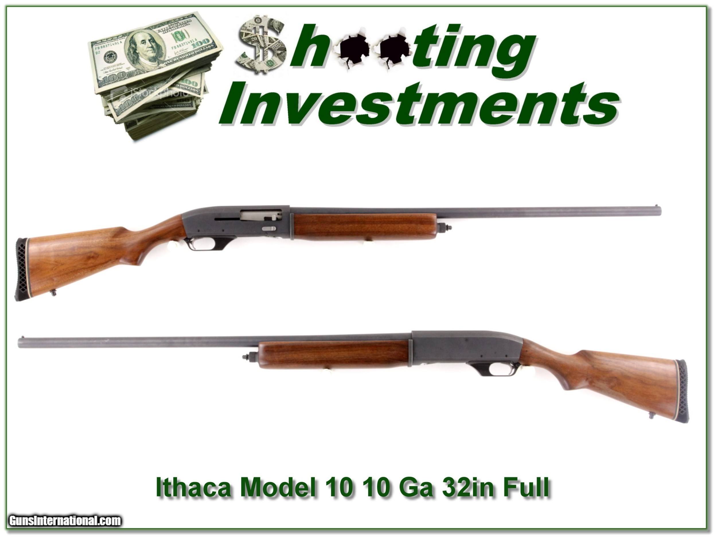 Description: This is an Ithaca Model 10, 10 Gauge with 3.5in chamber. It has a 32in full choked barrel with some use as seen with added recoil pad. It will make a classic big bore duck or turkey gun! It is on consignment and as such lay-a-way can’t be used. It does of course have the standard 3-day inspection. Shipping with insurance is $39. Please email me with any questions or larger pictures. (Consign your quality firearms with Shooting Investments for only 12%! Let me know if you have any you would like to sell!) 19-0678 Payment: Payment is by Money Order, Cashiers Check or Personal Check. I can now also accept Credit Cards (MasterCard, Visa, Discover & American Express) with a 3% convenience fee. PayPal can be used for some items but never for firearms. Shipping: The shipping charge will be listed in each description. It is $39 for most firearms. Some heavy guns or those insured for over $2000 will be higher. Shipments to Alaska and Hawaii are higher because air shipment is required. Most firearms are shipped on Tuesday and Thursday and usually in 5 days of receipt of payment. We package all shipments carefully and insure them. Optics are shipped Priority Mail and most other non-firearm shipments are shipped First Class. Returns: Our return policy is simple. If for any reason you are not pleased with your purchase, you may return your item for a full refund of purchase price. Ammunition cannot be returned. It is important to us that you are happy. Guns cannot be fired or dissembled before returning them and they must be returned in the same condition as received. Notification of a return must occur with-in 3 days of receipt at your dealer. Shipping, convenience and dealer fees are not refundable and are the responsibility of the buyer. Lay-a-way: If needed, we offer a 60 day lay-a-way option on most firearms. It is 1/3 now, 1/3 in 30 days and 1/3 in 60 days. Lay-a-way firearm sales are final and if not completed the first payment cannot be returned. Consigning your firearms with Shooting Investments: We will help you get top dollar for your firearms. While most local guns shops charge 20% or more, our fee is only 12% with a minimum of $75. At your local gun shop it might take months to sell. Selling on-line provides instant access to thousands of interested buyers. You won’t find any other on-line dealer willing to sell your firearms for only 12% or listing every gun on 3 separate s. Selling through an House typically costs the seller 15% and the buyer an addition 15% (so 30%) and you have to wait several months to sell and longer to receive funds. If properly priced, we will sell your firearms in a few weeks. Send us an email or give us a call and we’ll explain how easy it is for you to get top dollar. Trading: Trading for use is really just buying your gun to re-sell. If you have a gun you want to trade, please email a picture and we will let you know what we can give or it. You will always get more if we sell it for you on consignment. Help for California Buyers: We are happy to ship to California. It is the buyer’s responsibility to make sure any item you buy is legal in your state. We are also happy to help with your purchase of a firearm from someone other than us. If you see a gun you would like to buy but the seller can’t or won’t ship to California they can ship to use and we’ll then ship it to your California dealer. The cost for this service is only $30 + shipping. Let us know if we can help! SOLD |
