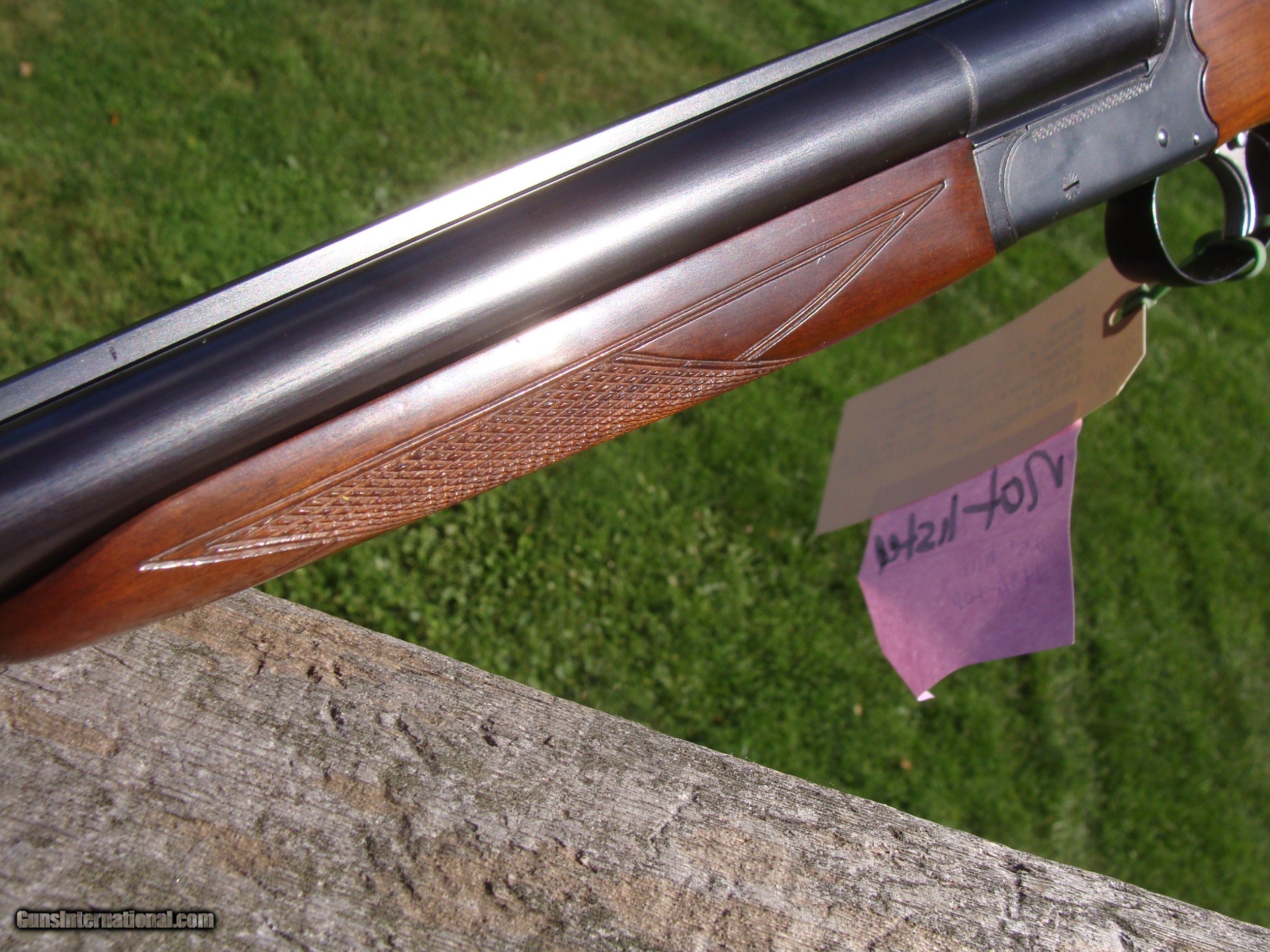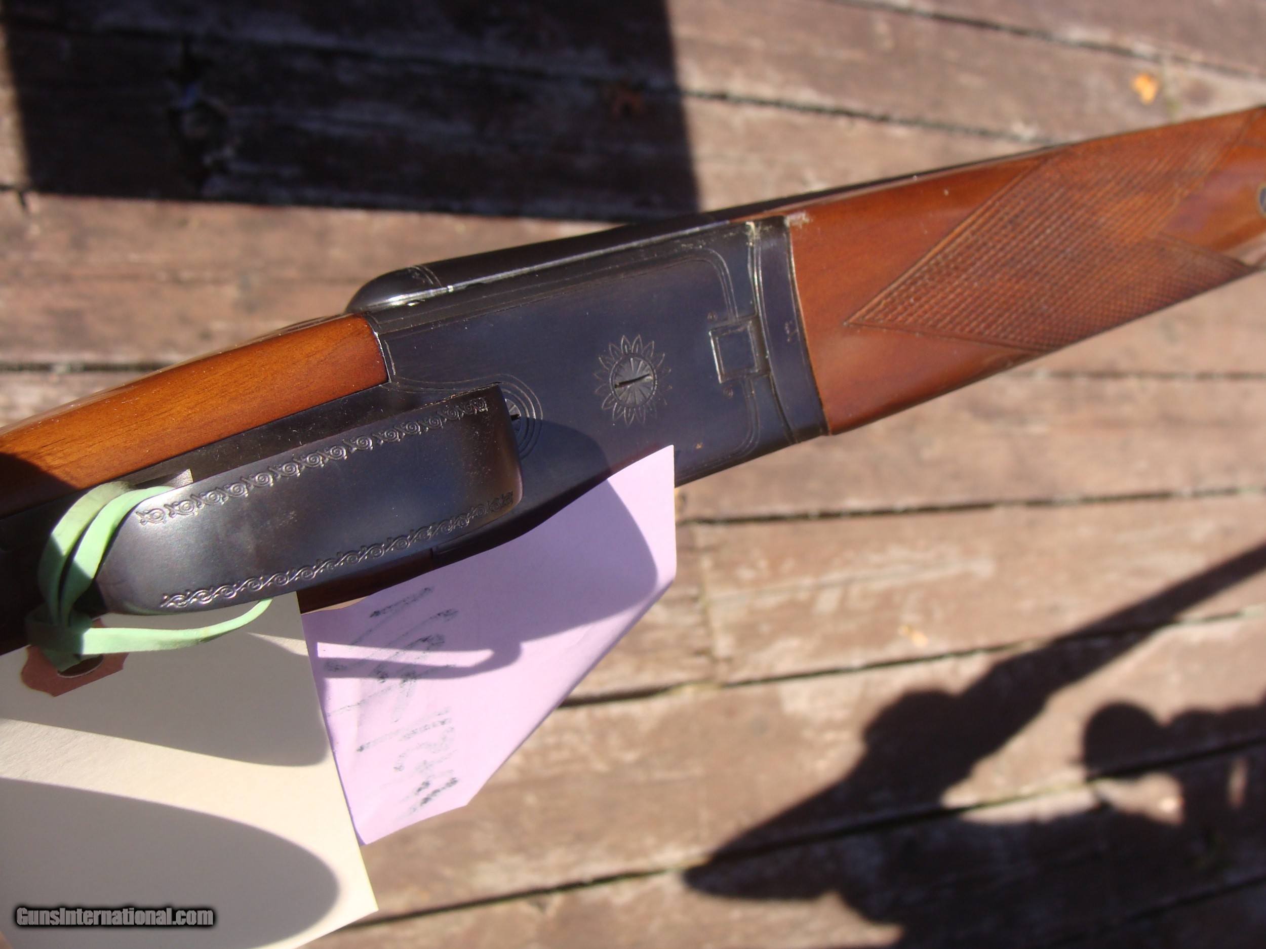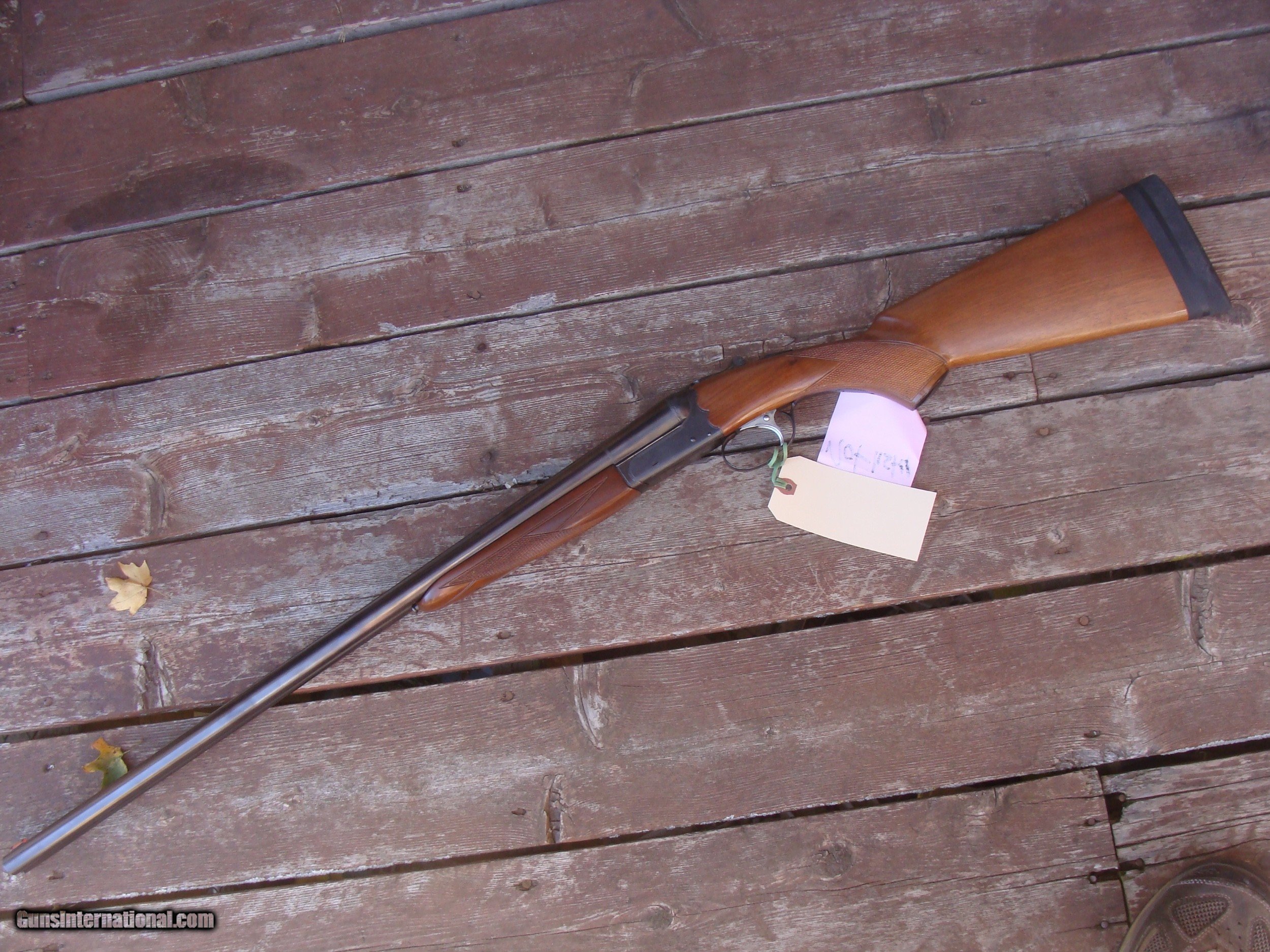 Description: 25" Factory Barrels choked IC/Mod in this delightful handling little side by side. Weights a little under 6 1/4lbs on our scale. No meaningful marks on wood or metal Single Selective Trigger. Checkering sharp with no loss of finish on stock set. LOP 14 3/8 approx to end of pad and 13 to end of wood. Will shoot 2 3/4 anf 3" This would make a terrific partridge or woodcock gun or pheansant over pointing dogs. Also great for a younger or smaller shooter (referring to its light weight and overall lenght) Shipping $ 39.00 PLEASE READ EVERYTHING BELOW IN BOLD: IF IT DOES NOT SAY NEXT TO THE PRICE..."SALE PENDING OR UNDER DEPOSIT"...IT IS AVAILABLE. WE DO NOT REPLY TO INQUIRIES THAT SAY "INTERESTED IN THIS GUN" OR "IS IT AVAILABLE" IF YOU WOULD LIKE TO BUY THIS OR ANY OF OUR GUNS WE SUGGEST YOU PHONE US; WE ARE OFTEN AVAIALABLE LONG HOURS. IF YOU ARE INTERSTED IN A GUN THAT IS UNDER DEPOSIT AND WOULD LIKE TO BE NOTIFIED IF A SIMILAR GUN COMES IN DROP US A LINE AND WE WILL MAKE EFFORTS TO CONTACT YOU WHEN ONE DOES COME IN. WE HAVE OVER 2000 SALES ON ALL SITES WITH AN A+ RATING ON ALL WE ALSO KEEP AN INVENTORY OF OLDER PERIOD CORRECT SCOPES; CALL WITH NEEDS WE MOSTLY PICK VERY CLEAN AND LIGHLTY USED GUNS. WE ARE HAPPY TO TAKE CONSIGNMENT GUNS AND COLLECTIONS OR WILL BUY YOURS OUTRIGHT. WE SOMETIMES ARE EMPLOYED FOR ESTATE PURPOSES AND VALUATIONS. CT RESIDENTS MUST CONTACT US TO UNDERSTAND OUR IN STATE TRANSFER POLICIES. PAYMENT USPS MONEY ORDER ONLY AT THIS TIME. ( WE CAN TAKE A DEPOSIT WITH A CARD BUT THE GUN MUST BE PAID WITH A USPS MONEY ORDER) IT IS THE BUYERS RESPONSIBILITY TO GET US A COPY OF YOUR RECEIVING FFL'S LIC AND A COPY OF YOUR PHOTO ID BEFORE THE GUN SHIPS YOU MUST CALL YOUR FFL.WE DO NOT CALL FOR YOU. LAYAWAY PURCHASES NOT COMPLETED OR ANY RETURNED ITEM UNLESS NOT AS DESCRIBED OR DAMAGED ARE SUBJECT TO A 10% RELISTING/RESTOCKING FEE AND MUST BE RETURNED WITH NO NEW MARKS OR SCRATCHES, SENT BACK INSURED, PRIORITY SIGNATURE REQUIRED. ALL INFORMATION CONTAINED HEREIN IS BELIEVED TO BE ACCURATE BUT IS NOT GUARANTEED. WITH ANY OLDER OR USED GUN IT SHOULD BE EXAMINED BY A GUNSMITH OR COMPETENT EXPERT PRIOR TO USE) SOLD |