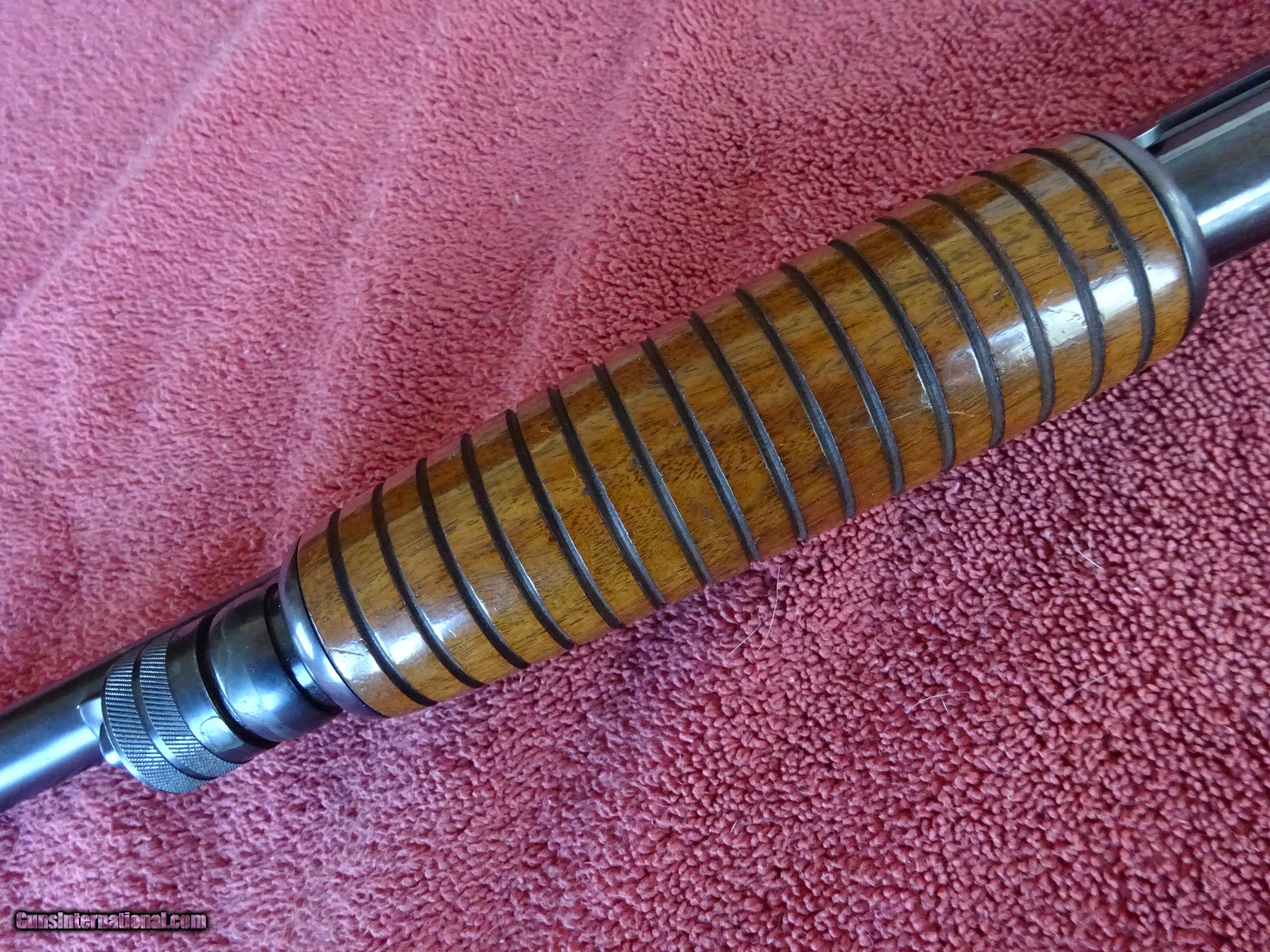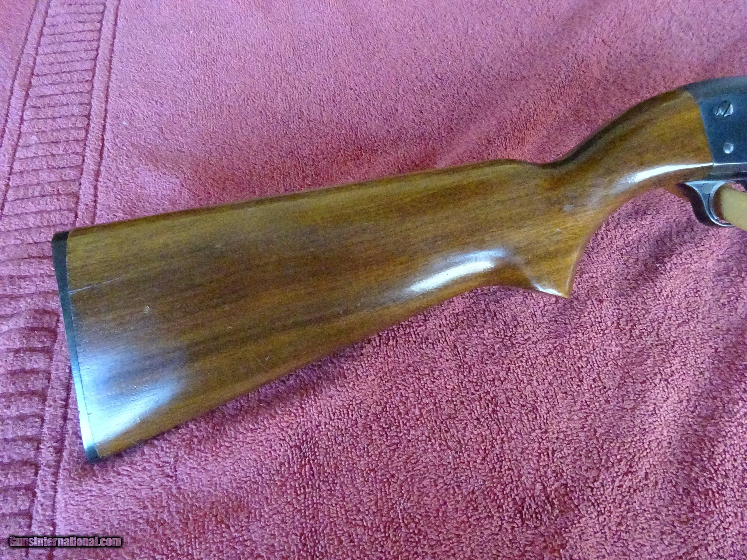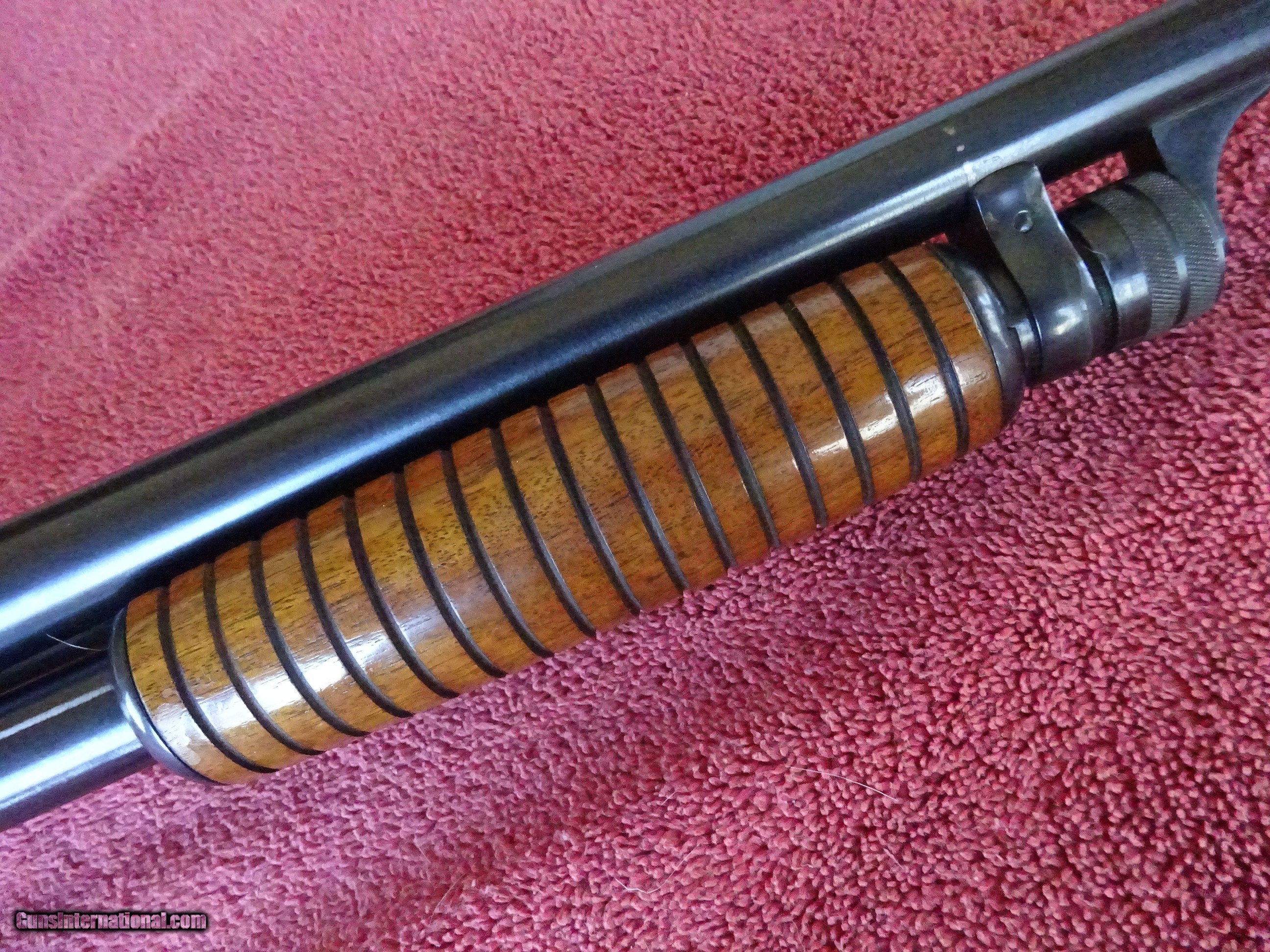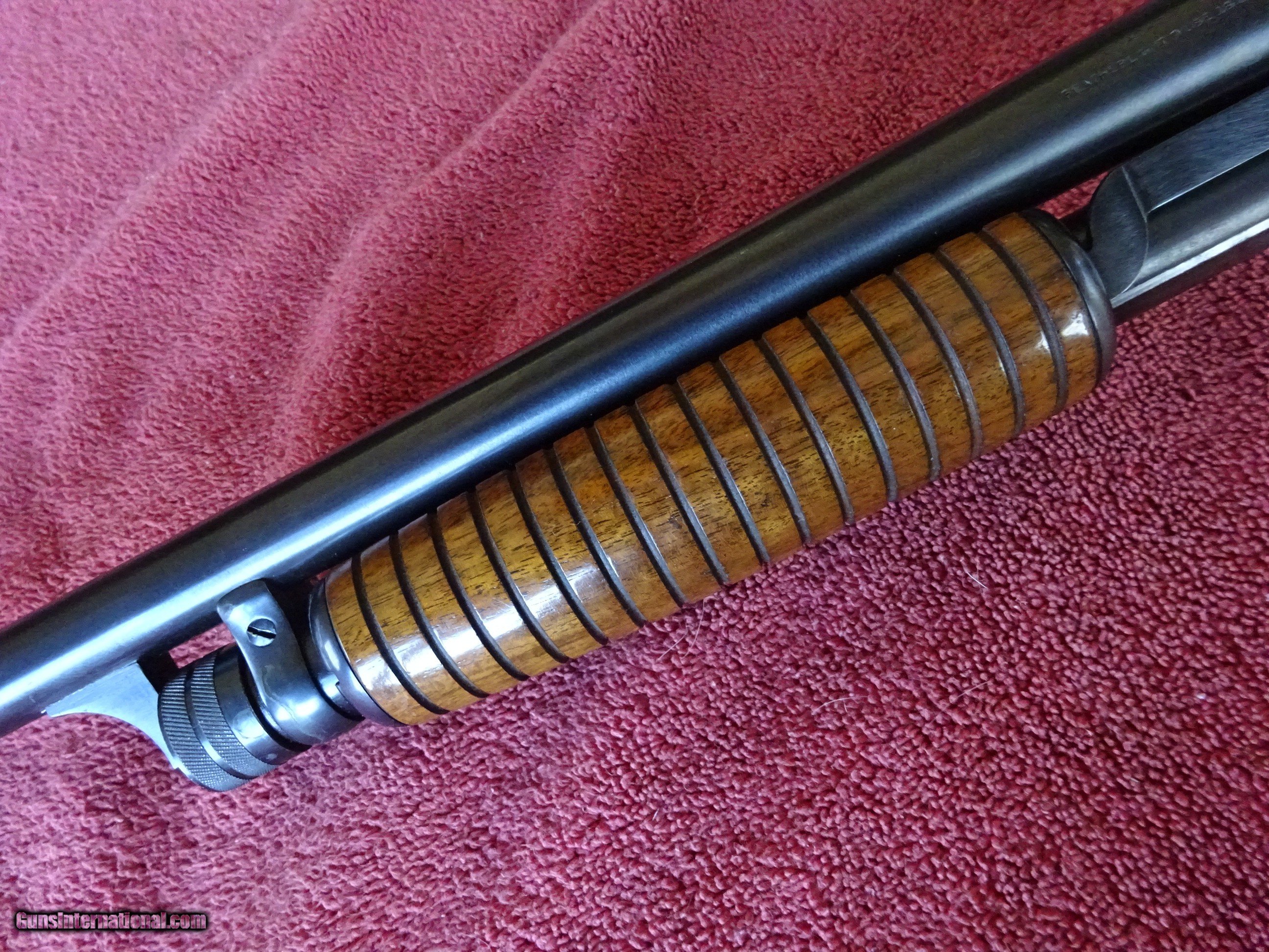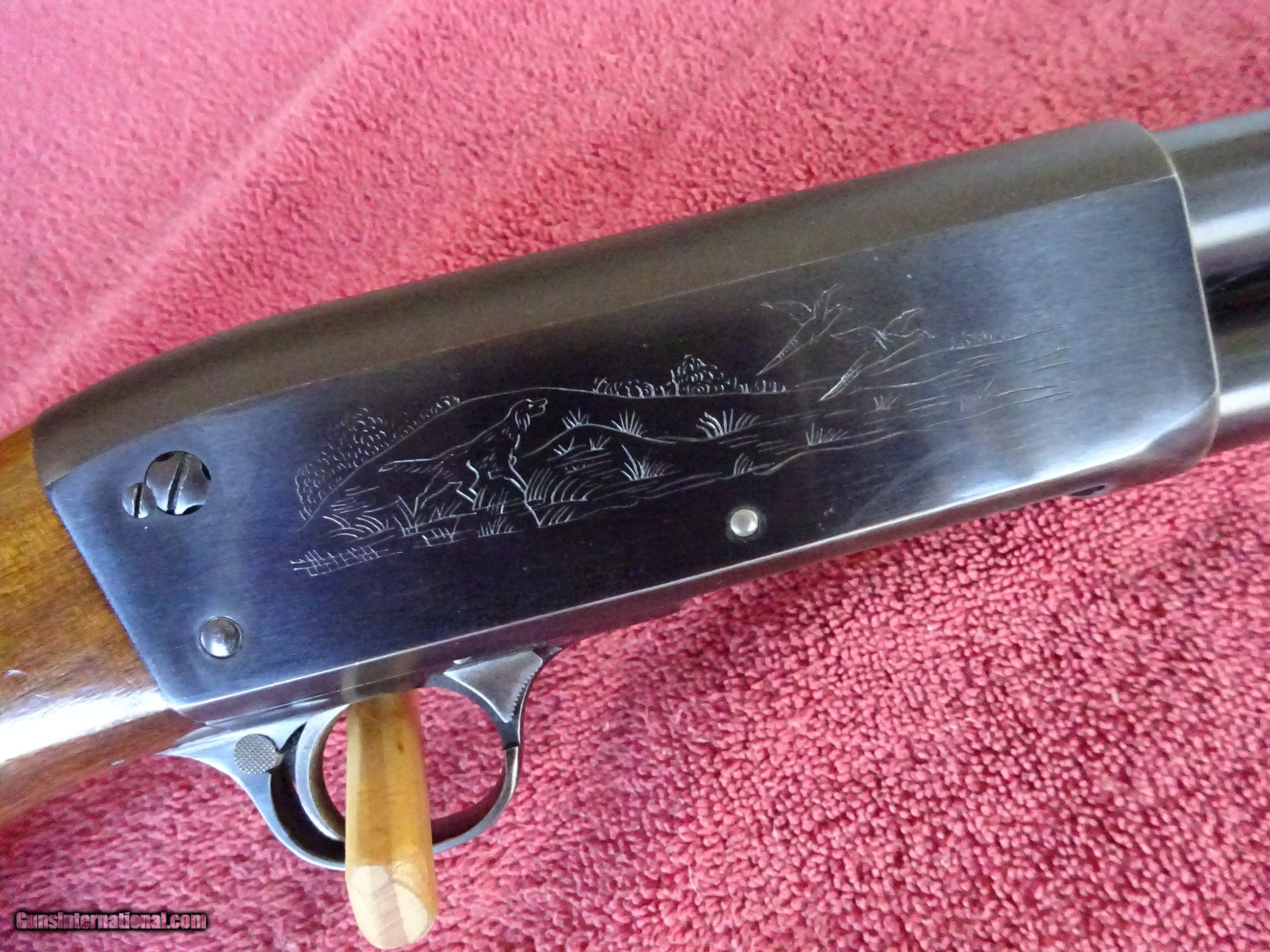 Description: ITHACA MODEL 37 FEATHERWEIGHT 16 GAUGE PUMP. 28" BARREL, FULL CHOKE, 2 3/4" CHAMBER. VERY GOOD BLUE, MIRROR PERFECT BORE, ORANGE FRONT SIGHT. STANDARD ENGRAVING PATTERN WITH A POINTING DOG AND A PAIR OF PHEASANTS IN FLIGHT ON THE RIGHT SIDE, WATERFOWL ON THE LEFT SIDE. AMERICAN WALNUT PISTOL GRIP STOCK, SMALL RIBBED FOREARM, ITHACA MARKED BAKELITE BUTTPLATE. VERY GOOD WOOD WITH NORMAL MARKS IN THE VARNISH, NO CRACKS OR PROBLEMS, 14 1/8" LENGTH OF PULL, 6 POUNDS 2 OUNCES. 100% ORIGINAL CONDITION. MADE IN 1958. $875.00 + $70.00 Insured shipping to an FFL address. Layaway is available. See all Pats gun listings on this site! We also have hundreds of ORIGINAL gun company advertising & memorabilia pieces available for sale on our site SPORTINGCOLLECTIBLES. We have no reprints or reproductions. Email for more information. If you need to call, morning or evening is best, and please note the Seller's Inventory number. SOLD Curio/Relic: Yes |