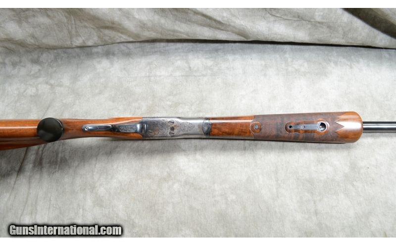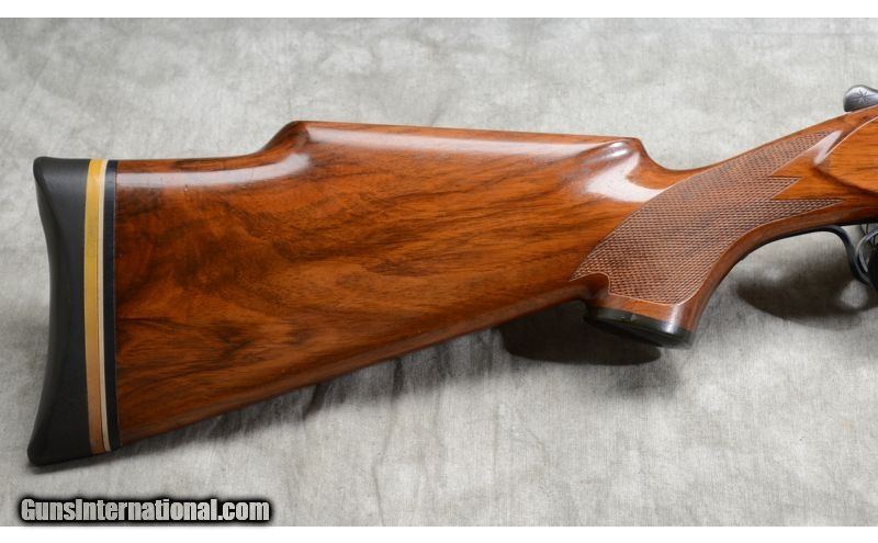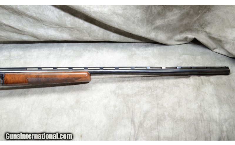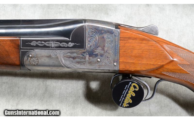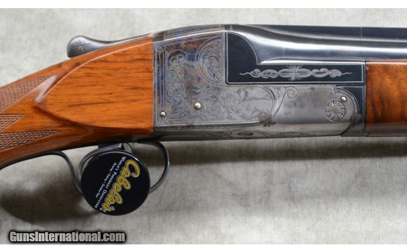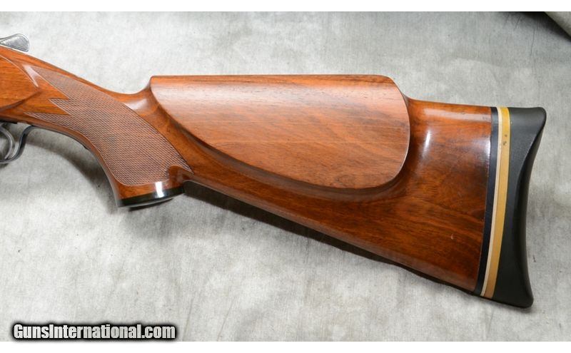 Description: This single barrel target gun features high grade walnut Monte Carlo stock with some understated figure, full beavertail forearm, and high comb and cheek piece. 12 Gauge SOLD Chambers: Single shot. Metal Condition: Very good. Barrel has good blue and receiver has good case color. There is some fading at the carry point. Wood Condition: Very good. Bore Condition: Bright and shiny. Barrels: 32 inch barrel. Triggers: Single trigger. Fore End: Beavertail Butt Pad: Curved rubber pad. Weight: 8 lb. - 10 oz. Sights: White beads with ventilated rib. Chokes: Fixed full choke. Item Location: Rogers |