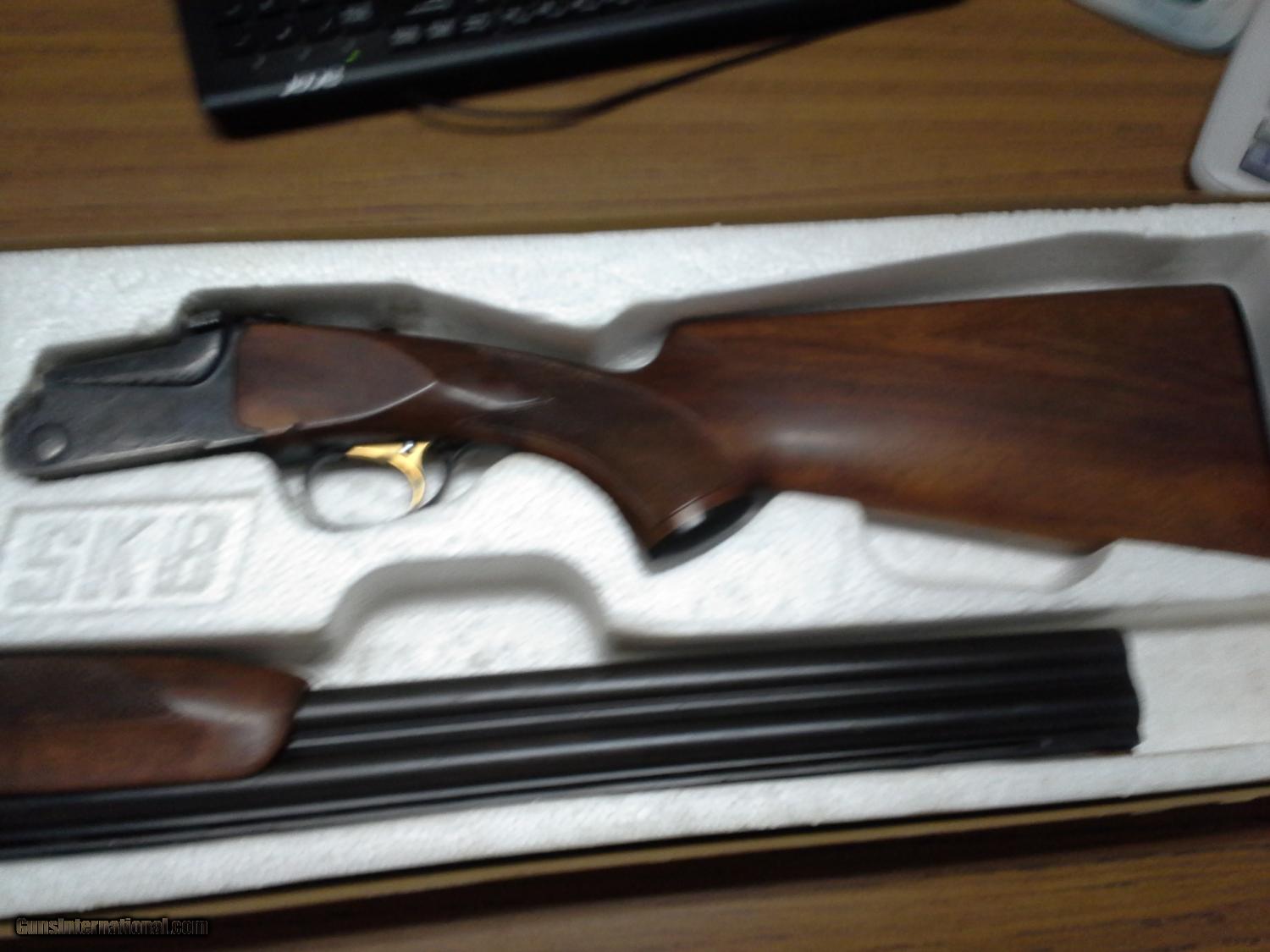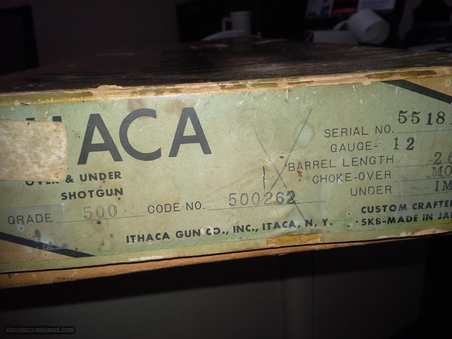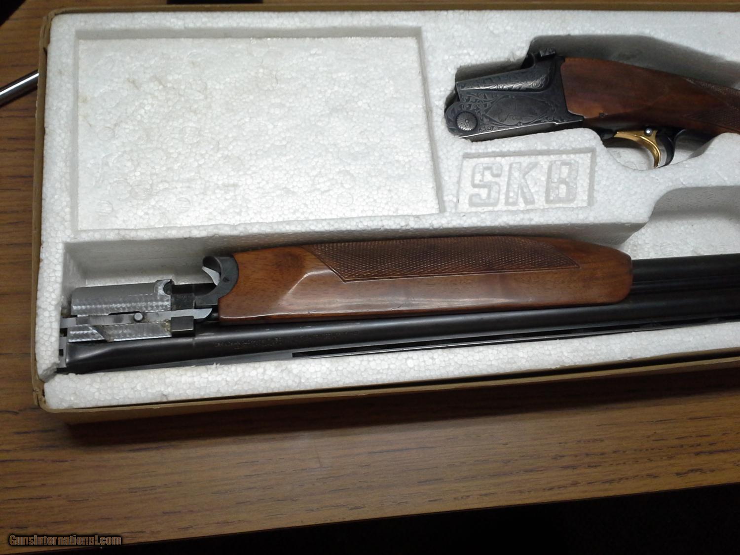 Description: Still in the box Ithaca Model 500 SKB over under 26 inch barrel Mod and Improved choke , used very little , single gold trigger with push button barrel selector, made in 70s SOLD Serial Number: 5518140 |