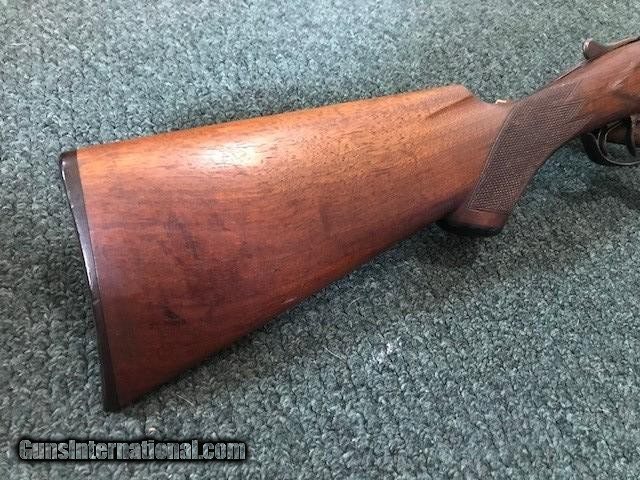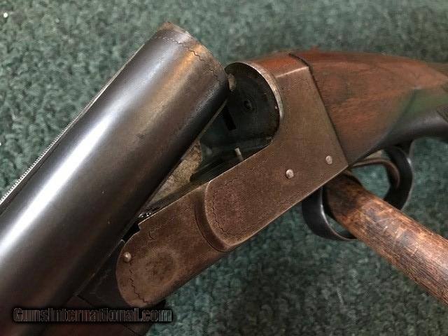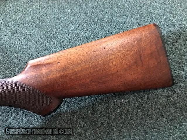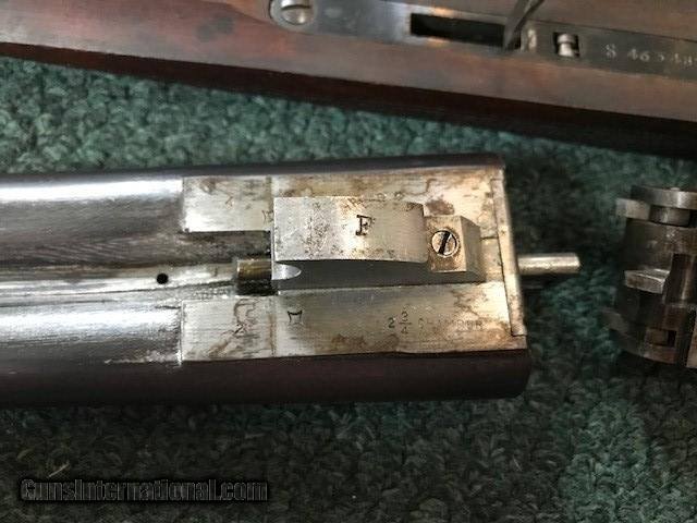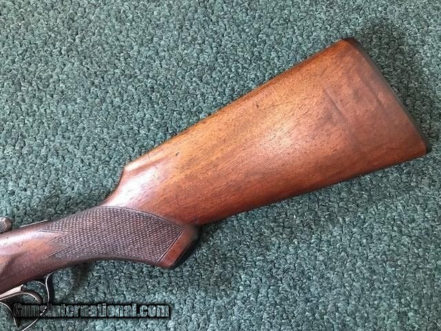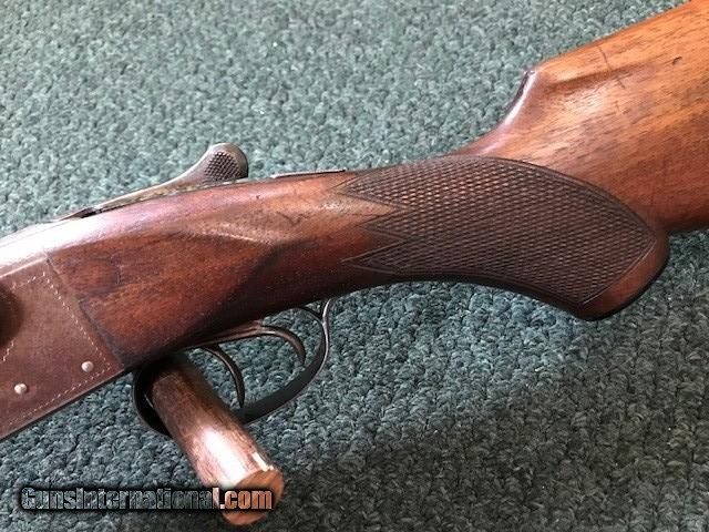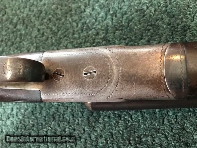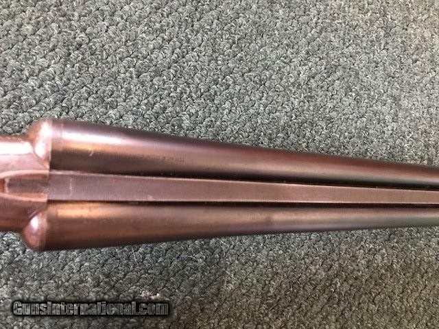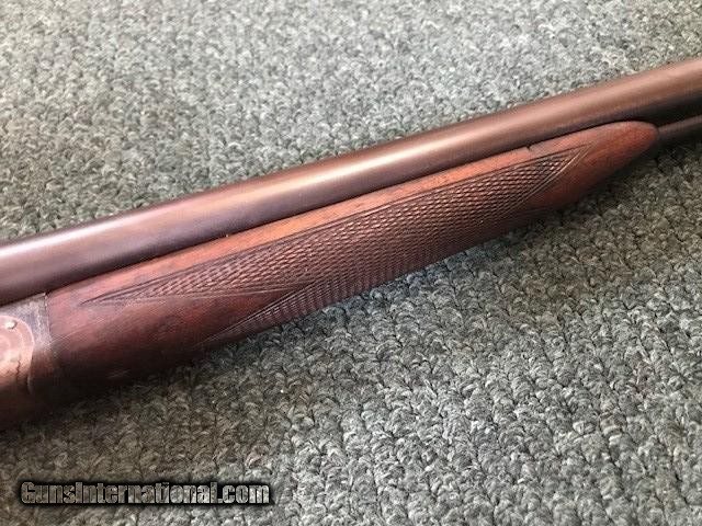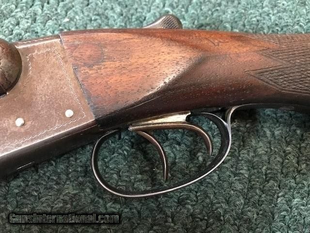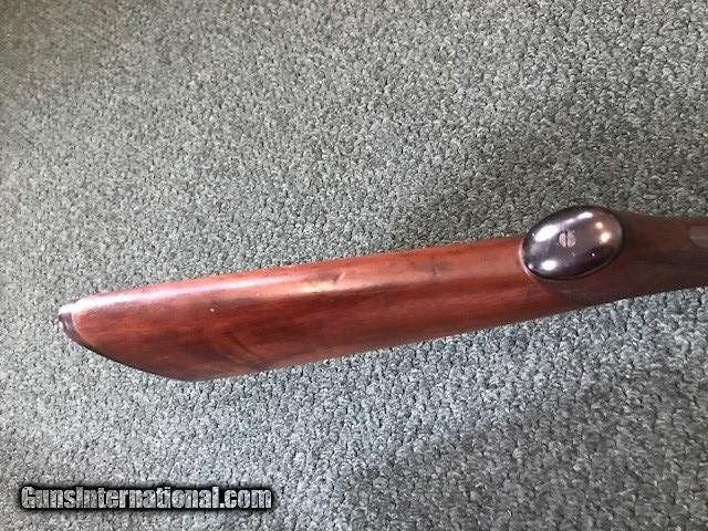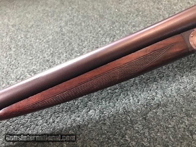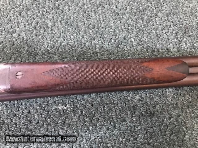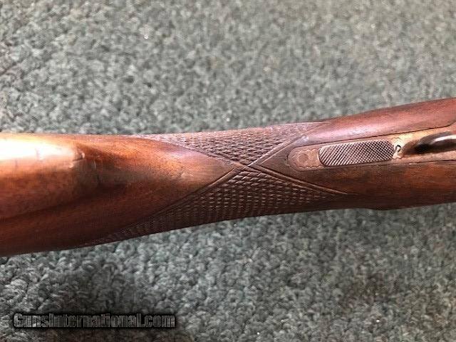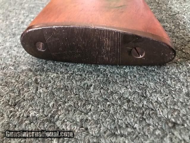 Description: Ithaca New Field Grade, 16 ga, engraved borders on frame and trigger guard, pistol grip cap and butt plate, checkering in good condition, black inlay in "V" shape on tip of forend, 26" barrel, no dents or pitting in barrel, 2 3/4" chamber, 14" length of pull, 2 3/4" drop at heel, all original, cylinder/cylinder. Serial No. is 46342. For further information call John at 941-748-7318. SOLD |