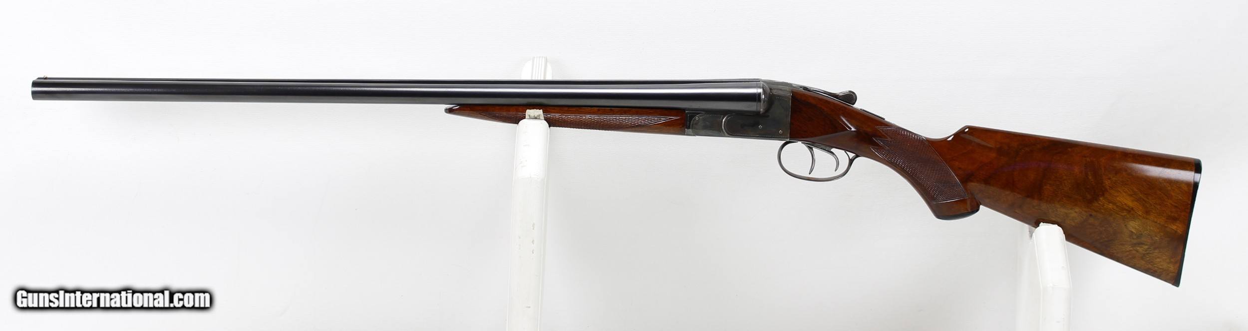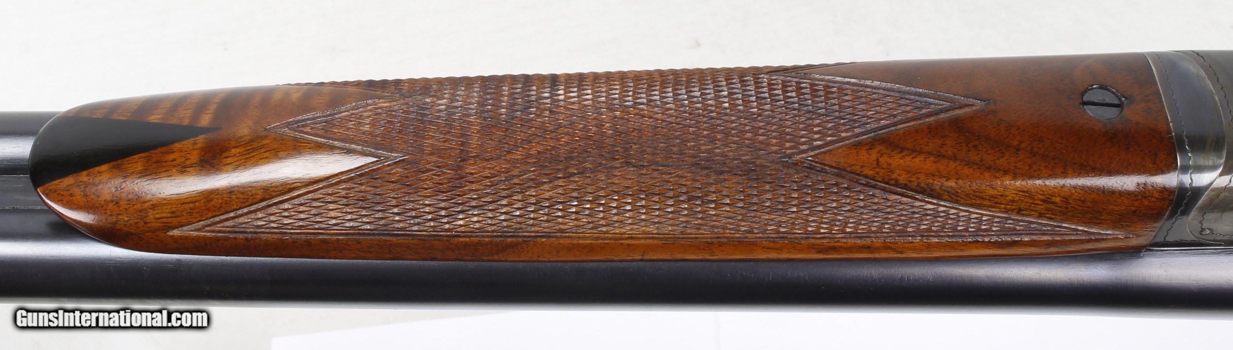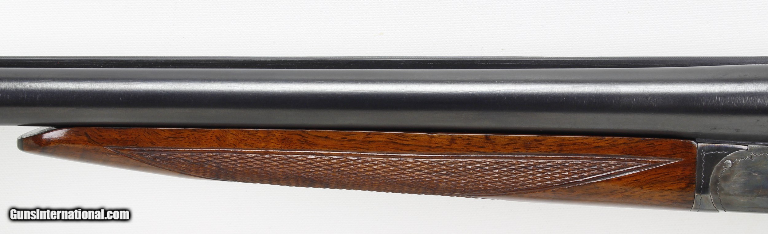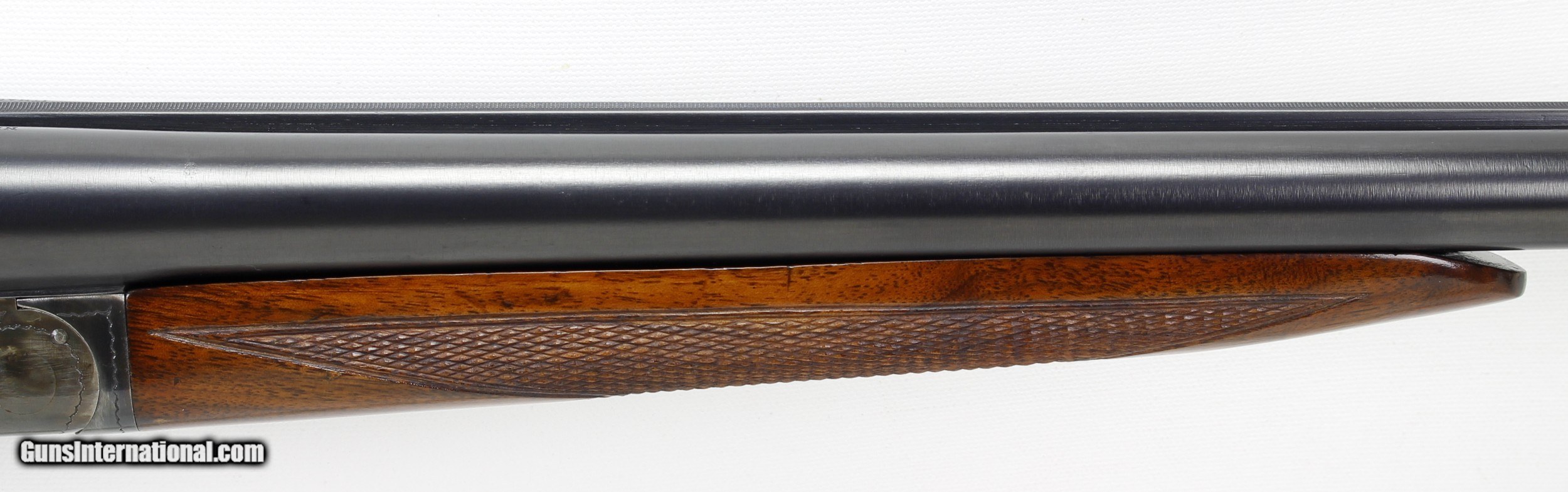 Description: Ithaca New Field Grade SxS 16Ga. Shotgun. SN #468082. Mfg. in 1941. DOUBLE TRIGGERS. LOP 13 7/8" & 13 1/8".Chamber 2 3/4". DAH 3"- DAC 1 5/8". Chokes are L/S Extra Full (.037) & R/S Imp. Mod. (.020). 26" Solid Rib Barrels with EXCELLENT Bores for their age. Bright and Shiny. Both the Blued / Case Colored Metal and Checkered Pistol Grip Stock and Forend have been FULLY RESTORED by SHOOTER'S EXCHANGE and LOOK GREAT. Extractors. Case Colored Receiver. Plastic Buttplate. Weight: 6.4 lbs. Trigger Pull: Front 4 1/4 lbs.- Back 6 1/2 lbs. SHIPS FREE. More photos available upon request. SOLD Curio/Relic: Yes Shotgun Gauge: 16 Gauge Manufacturer: Ithaca Model: New Field Grade SxS Serial Number: 468082 Barrel Length: 26 Chambers: 2 3/4 Condition: Excellent Metal Condition: Refinished Wood Condition: Refinished Bore Condition: Excellent For Age Triggers: Double Butt Pad: Plastic LOP: 13 7/8 & 13 1/8 Rib: Solid Finish: Blue / Case Colored Weight: 6.4 lbs. Manufacture Date: 1941 |