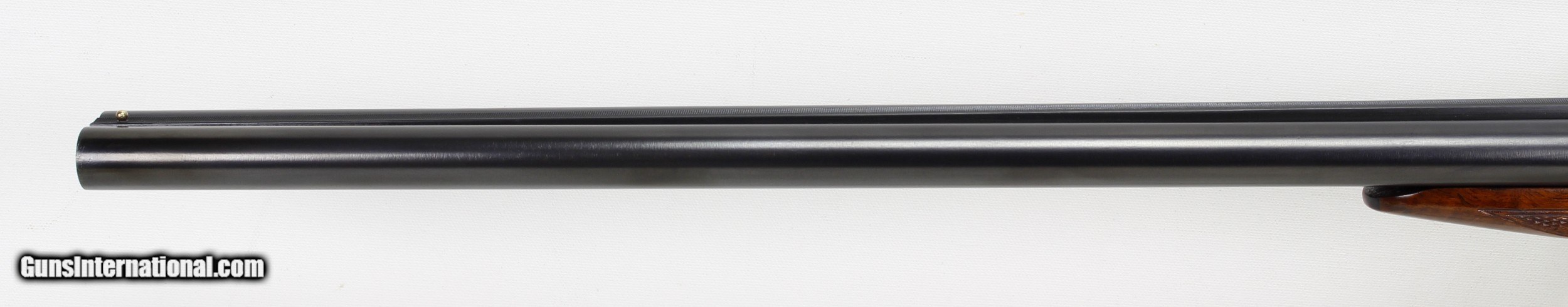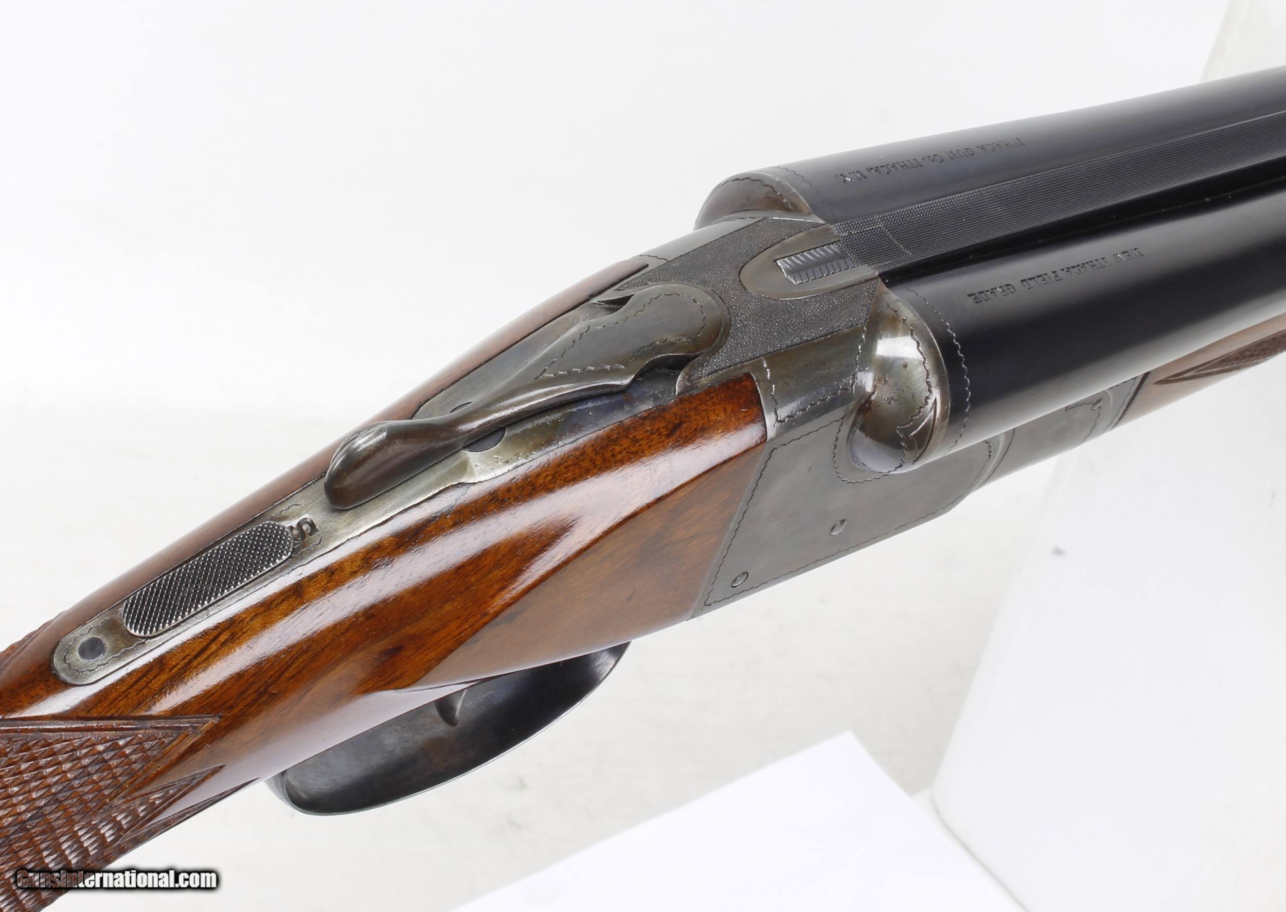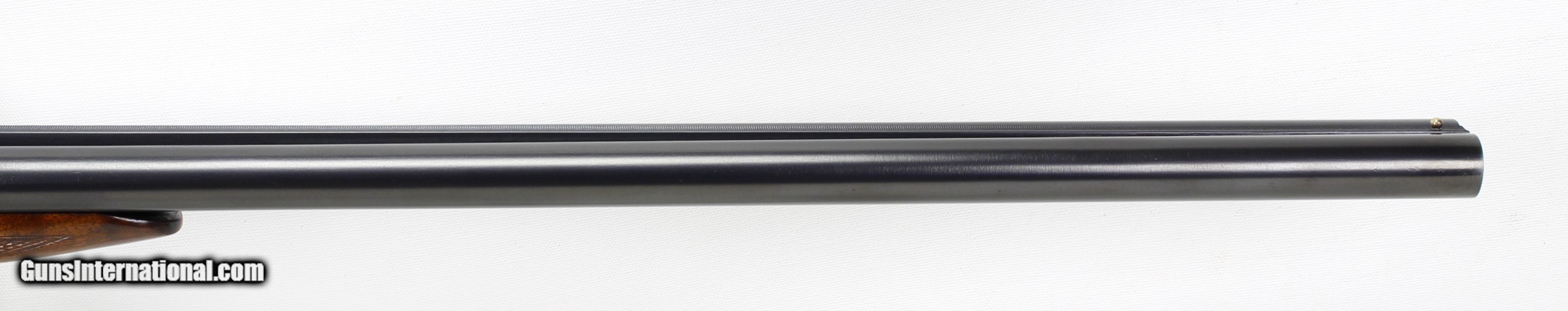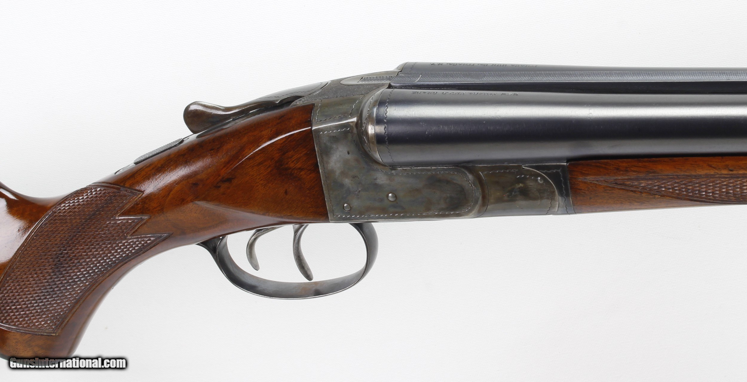 Description: Ithaca New Field Grade SxS 16Ga. Shotgun. SN #468082. Mfg. in 1941. DOUBLE TRIGGERS. LOP 13 7/8" & 13 1/8".Chamber 2 3/4". DAH 3"- DAC 1 5/8". Chokes are L/S Extra Full (.037) & R/S Imp. Mod. (.020). 26" Solid Rib Barrels with EXCELLENT Bores for their age. Bright and Shiny. Both the Blued / Case Colored Metal and Checkered Pistol Grip Stock and Forend have been FULLY RESTORED by SHOOTER'S EXCHANGE and LOOK GREAT. Extractors. Case Colored Receiver. Plastic Buttplate. Weight: 6.4 lbs. Trigger Pull: Front 4 1/4 lbs.- Back 6 1/2 lbs. SHIPS FREE. More photos available upon request. SOLD Curio/Relic: Yes Shotgun Gauge: 16 Gauge Manufacturer: Ithaca Model: New Field Grade SxS Serial Number: 468082 Barrel Length: 26 Chambers: 2 3/4 Condition: Excellent Metal Condition: Refinished Wood Condition: Refinished Bore Condition: Excellent For Age Triggers: Double Butt Pad: Plastic LOP: 13 7/8 & 13 1/8 Rib: Solid Finish: Blue / Case Colored Weight: 6.4 lbs. Manufacture Date: 1941 |