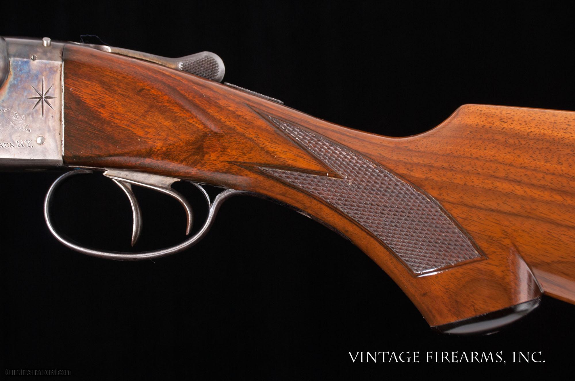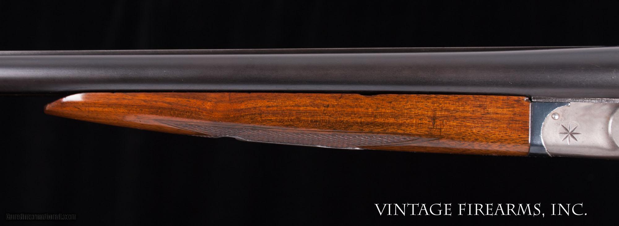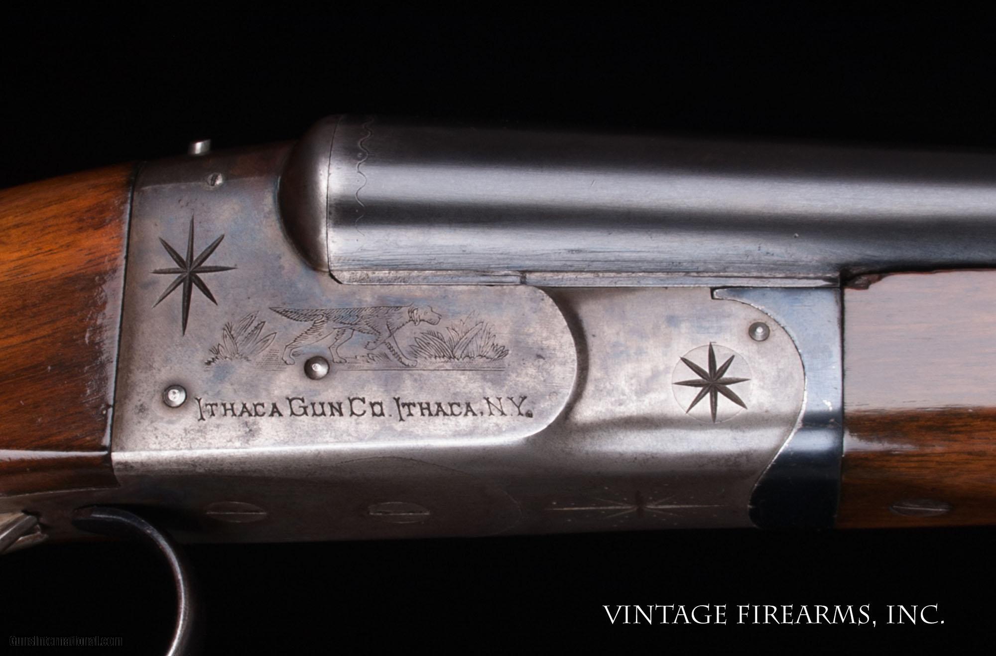 Description: Ithaca NID 20 Gauge Side-by-Side "Star Grade" Field- AS NEW, EJECTORS General Specs: Ithaca, Year 1935, 20 Gauge, 6lbs 10oz, SxS Serial Number: 459391 Most Field Grade guns were made in prolific numbers. There are Ithaca NID 20 gauge guns offered for less money than this one. However, most Field Grade guns got hard use and are found with little finish remaining, and undesirable alterations like cut stocks, bad pads, cracks and repairs, pitted bores, buggered screws, pits and heavy scratches, etc. There are restored guns, done in mediocre fashion, on the market for less as well. However, it is very difficult to find a NID 20ga. ejector gun in fine original condition like this one. This Ithaca NID Field Grade “Star Model”, sn459391 made in 1935, has all the desired condition and features one looks for in a vintage American small bore double gun. With 28” barrels presently choked F/F (we can alter chokes to your desire within 10 days of purchase), mirror bores, full length stock to a butt plate, strong well-timed ejectors, 95% factory blue, 65% factory case colors, no cracks or repairs, tight as new on hinge and breech face, lever right of center, original wood nicely restored…the gun is ready for another 80 years of good service. The “Star Model” was produced for about 5 years and had 6 stars engraved into the receiver and trigger guard in addition to the setters stamped on the sides of the action. The Ithaca Gun Co. produced the “New Ithaca Double” or “NID” from 1926 to 1949. It succeeded the Flues model and was by far the strongest action produced by Ithaca, or any other American double gun save for the Winchester Model 21. The design of the action left a lot more metal remaining, hence a brutishly strong action made for heavier “Super X” loads that developed in the early 1930’s. This little NID will be an awesome upland game/clays gun for its next owner. An affordable vintage American double in the very popular 20ga., WITH EJECTORS, it will always be a desirable field gun, gaining value as you enjoy its use. The most sought after of all the Ithacas, the NID model is going up in value faster than any of the other American double guns. Thanks for looking. Barrels Barrel Length: 28" Chokes: .027/.027 F/F Bores: perfect mirrror Bore Diameter: .616/.615 Wall Thickness: .035/.033 % Blue: 95% factory Chambers: 2 3/4" factory Ribs: tight, ring Sights: single Action Action: tight, right of center Ejectors or Extractors: ejectors, strong, timed Case Color: 65% factory Screws: excellent Engraving: star model crisp Trigger Type: double, crisp Trigger Guard Color: 60% turning patina Stock Type: capped pistol grip/splinter forend LOP: 14" to plate LOP To End Of Wood: 13 3/4" DAH: 2 1/2" DAC: 1 3/8" Cast: 0 heel; 1/8"toe off Checkering Condition: excellent Butt Treatment: factory plate There are more photos upon request. We offer a 30 day mechanical warranty on this fine shotgun. Call us for full details. PLEASE SEE MY OTHER FINE VINTAGE FIREARMS. Just open one of my ads and click on the line that says “see all items from this seller” and a very nice list of fine sporting and collectible arms will appear. I have many more fine sxs shotguns not yet listed. Thanks for looking! We employ a full time gunsmith on premises and can perform alterations to suit your needs within a few weeks of purchase. Payment Methods: Money Order, Certified Check, Personal Check, Wire Transfer Inspection Period / Return Policy: Three Days from the date the item was received. Sales Tax: 6% Michigan Only Shipping & Insurance: Ground $45.00 We ship internationally! Item Condition: Used Requires FFL?: Yes If you have any questions about this item or payment, please email or call us directly, at #616-292-6240. Thanks! Jay Shachter, Vintage Firearms, Inc We employ a full time gunsmith on premises and can perform alterations to suit your needs within a few weeks of purchase. Common requests are: -stock bending to suit your particular requirements -addition of any specified butt pad to increase length of pull -alteration of chokes to suit your shooting preferences -lengthening of chambers and forcing cones -darkening stock color with penetrating stains -restoring any part of the gun including rust blue, charcoal blue, bone and charcoal case color, wood restoration and checkering recuts. If you like one our guns but it needs "tweaked", let us know and we can quote you a time and price. Some enthusiasts like the guns "as found" and others want them "just so". We often list guns as found and let the particular buyer choose how they want their gun to fit or look. SOLD Curio/Relic: Yes |